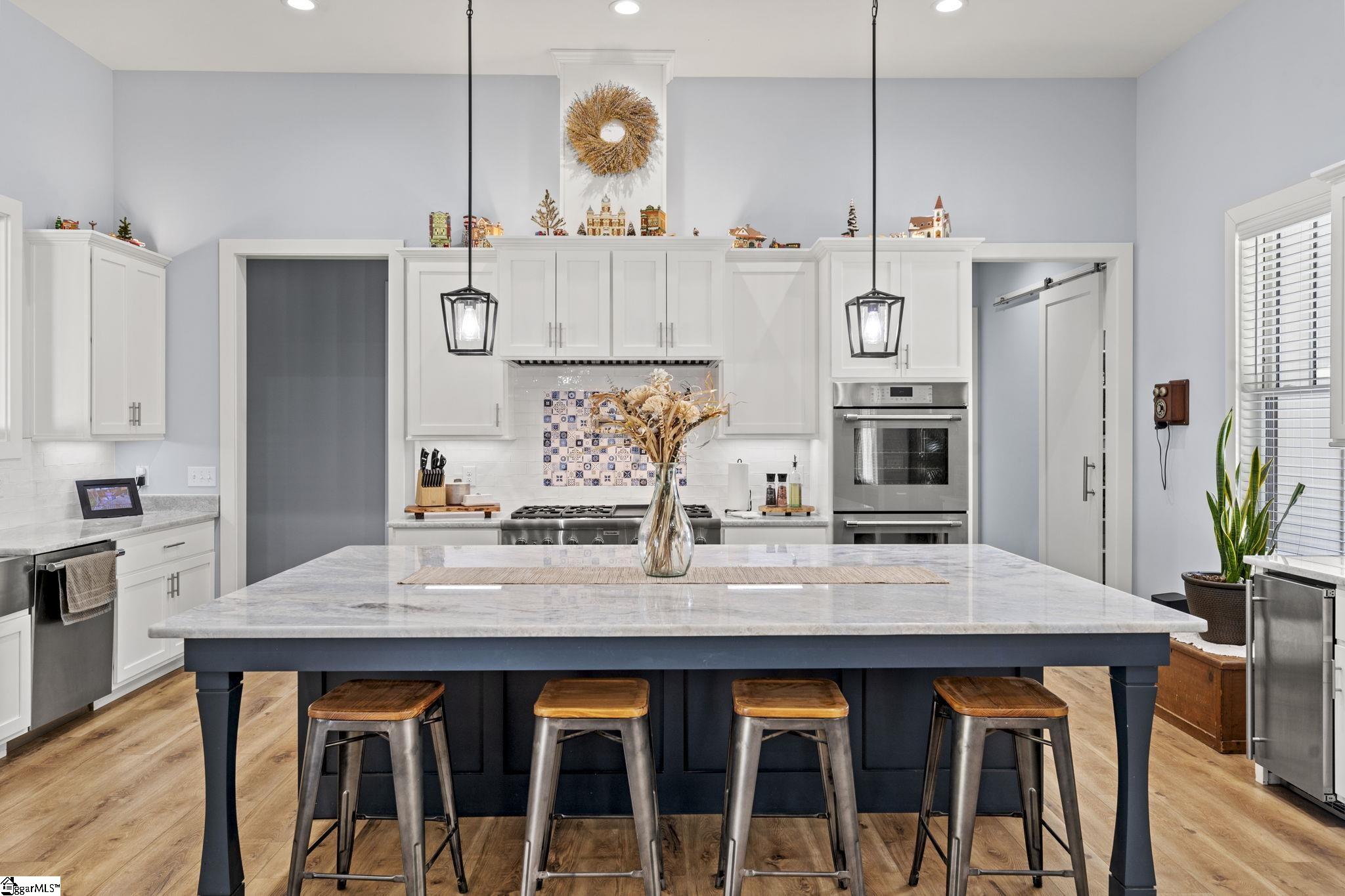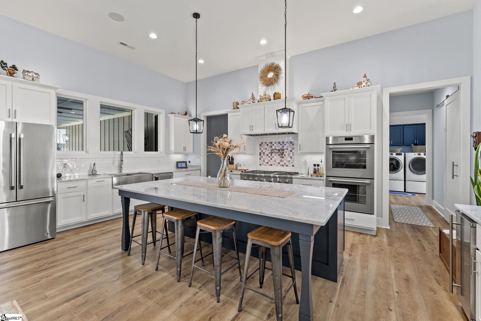 ***PRICED TO SELL WELL BELOW APPRAISAL FOR A SHORT TIME ONLY*** Where refined indoor-outdoor living meets unmatched utility. 4-bed luxury estate in Seneca with a private gated entry, 5.22 scenic acres, and elevated Lake Hartwell views with a contiguous 6 acres available also. Built in 2022, this 4,307 sq ft custom home blends timeless design with high performance systems, including whole property water filtration, 400 amp service, and a 26kw whole-home generator for confidence and continuity. Step inside to 8 ft doors, abundant natural light, and an open concept great room with gas log fireplace and 8 ft accordion glass doors opening to a covered outdoor living space connecting open concept with open air: outdoor kitchen, outdoor shower, outdoor TV, gas grill, and a wood-burning fireplace with gas starter. The home is plumbed and wired for a pool. The chef’s kitchen features Thermador 6-burner gas cooktop, double oven, in-cabinet microwave, marble countertops, pull-out cabinetry, Ruvati sink with accessories, an in-cabinet ice maker, plus a walk-in pantry with generous storage and a dedicated Christmas light switch. The primary suite is a true retreat with garden tub, large walk-in shower with rain head plus handheld, dual vanities including a custom makeup station, and marble countertops throughout the baths. All bedrooms offer walk-in closets and return air. Enjoy a spacious laundry with custom cabinets, mud sink, and washer and dryer that convey, plus two-zone HVAC, tankless water heater, and an encapsulated insulated crawl space with dehumidifiers. Smart gate app control and entertainment-ready features include a 4-zone speaker system, security cameras, and TVs that convey (confirm details with agent). Garages and workshop space impress: an attached garage with 16 ft ceilings and high-top doors that is car-lift ready, plus a detached shop with wash bays, climate-controlled garage, RV bay with 50 amp electric, water and septic of its own, loft storage, and built-in cabinetry that conveys. 500 gallon propane tank, Up Country Fiber internet, and Blue Ridge Electric. No HOA, 3 minutes to Martin Creek Boat Ramp and minutes to Clemson Marina, Contact agent for Airbnb viewing availability.