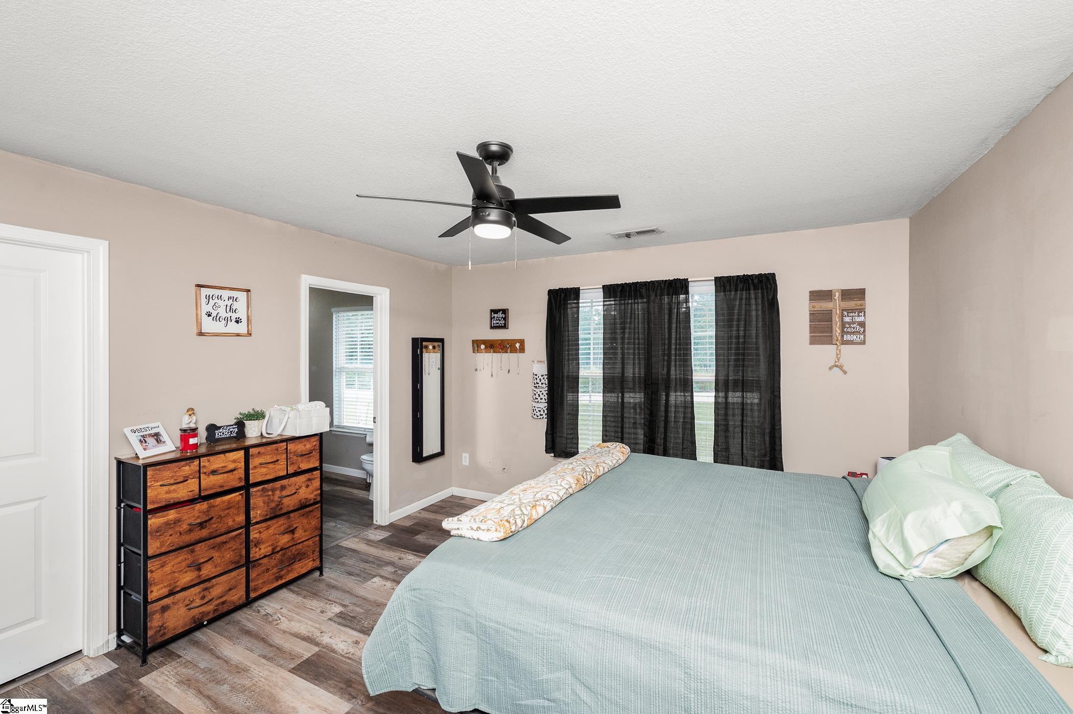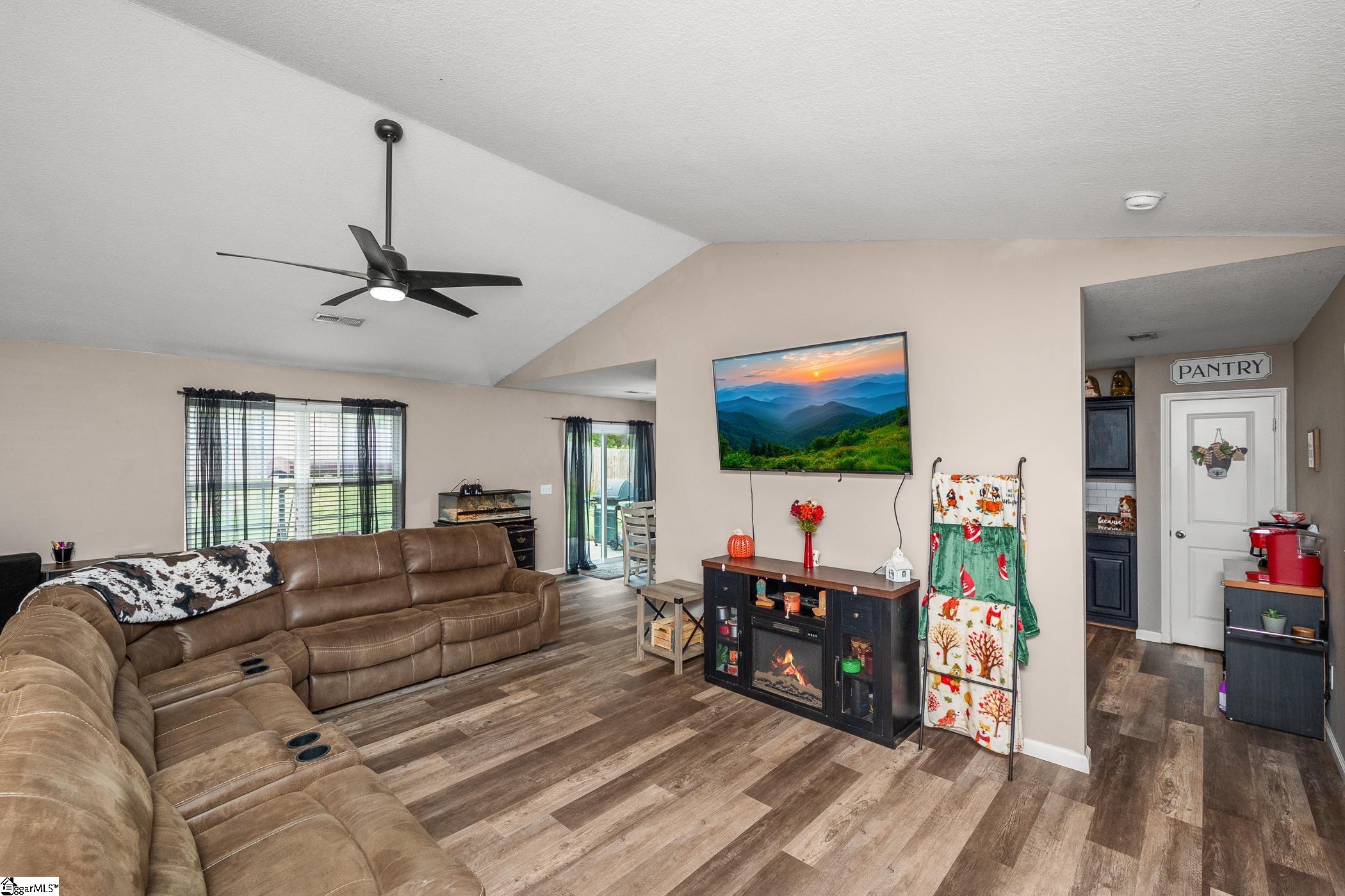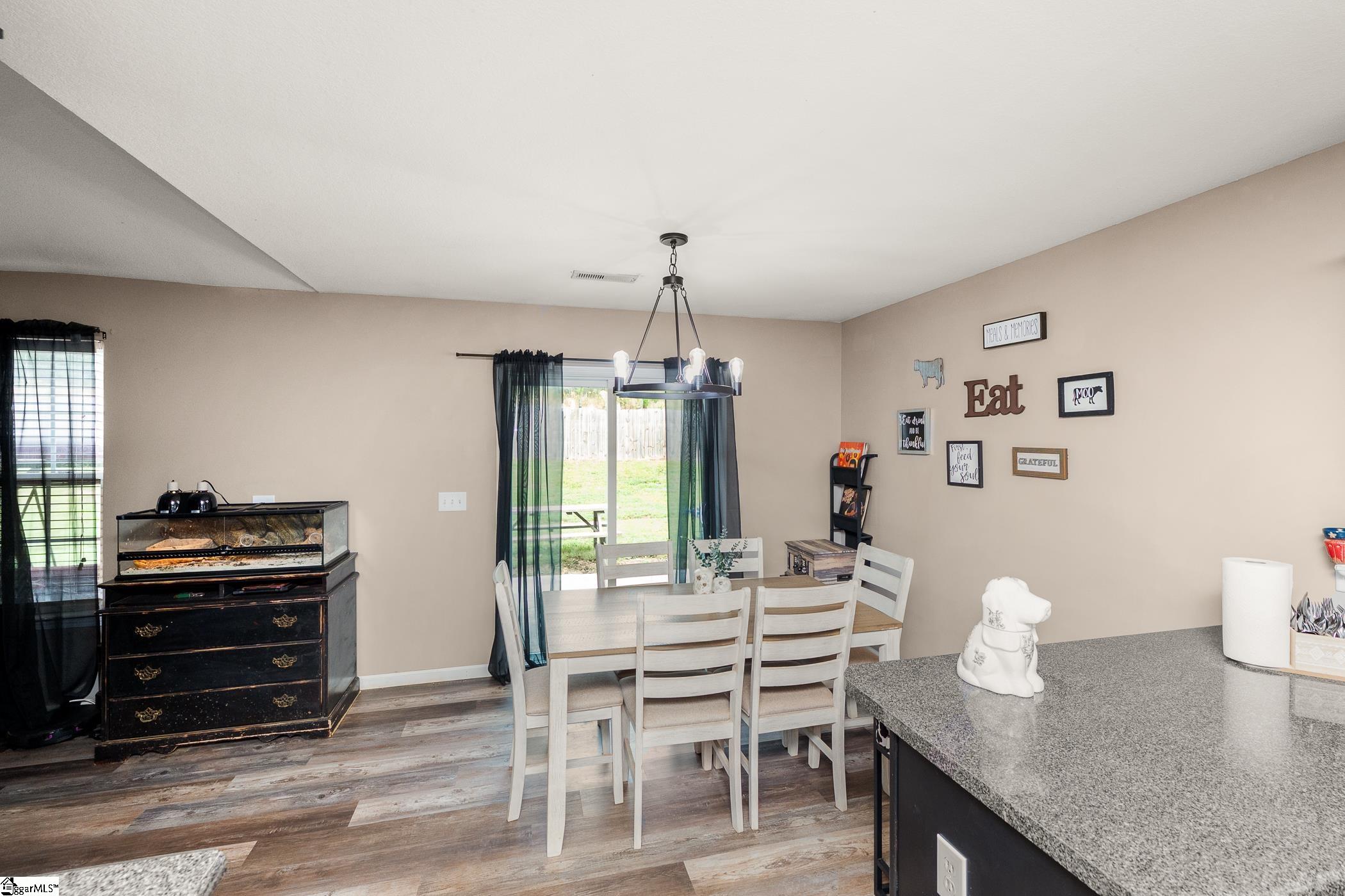 Welcome home! Tucked away in a peaceful setting, this inviting residence is designed for easy living. Whether you’re heading to Travelers Rest for a Saturday morning coffee or commuting to Greenville, you’re never far from the action. Inside, the open floor plan creates a warm, welcoming space ideal for both everyday living and entertaining.The eat-in kitchen includes all appliances and offers plenty of room to gather. New flooring installed in 2023 provides a fresh, cohesive look throughout. A desirable split-bedroom layout offers privacy, with a spacious primary suite featuring an en suite bath. The generously sized secondary bedrooms share a full bathroom. Outside, the expansive fenced backyard provides a blank canvas for gardening, recreation, or even a future workshop.