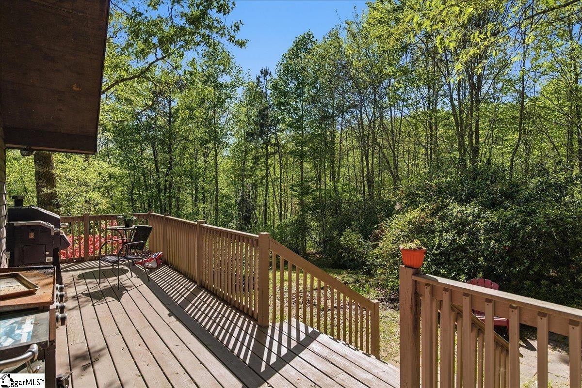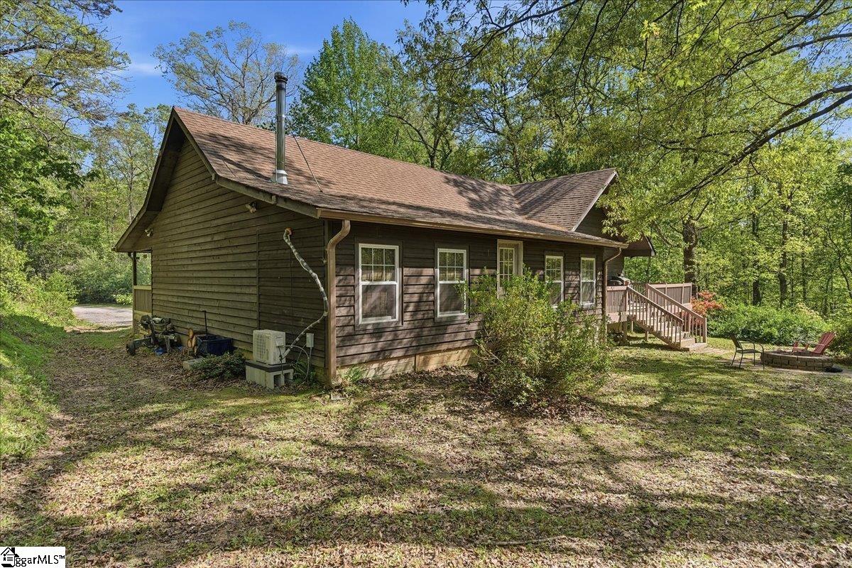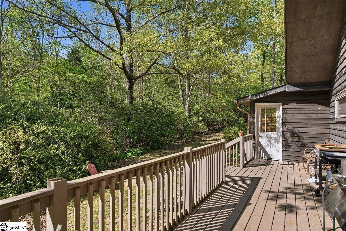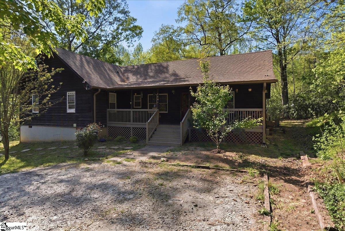 Tucked among the trees on a serene 1.07-acre homesite, this rustic 3-bedroom, 2-bath retreat offers an exceptional blend of privacy, natural beauty, and freedom—with no HOA to limit your lifestyle. Ideally located just off scenic Highway 11 and minutes from Table Rock State Park, this property places you at the doorstep of some of the Upstate’s most treasured outdoor adventures. A welcoming front porch, perfectly suited for rocking chairs and quiet mornings, leads into a stunning vaulted great room filled with natural light and anchored by a charming wood-burning stove—creating an inviting space for both entertaining and everyday living. Just beyond, a cozy den with custom built-ins provides the perfect setting for displaying books and treasured pieces while offering a warm, intimate retreat. The kitchen is well-appointed with a full appliance package and easy flow for gathering and hosting. The home features three generously sized bedrooms and two full baths, including one with a deep soaker tub designed for relaxation. Outdoor living is equally captivating, with a large wraparound deck overlooking natural landscaping rich with native trees and shrubs—an ideal backdrop for entertaining, play, or simply enjoying the peaceful surroundings. The property is a true homesteader’s delight, boasting an abundance of fruit-producing trees including peaches, pears, plums, figs, and apples, along with a wild elderberry bush. Thoughtful upgrades and features add both comfort and peace of mind, including a generator hookup that services the home and well—ensuring continuous power and water—along with a supply of pre-cut wood ready for the stove. Major systems have been updated within the last five years, including the roof, HVAC, and gutters. Fiber optic internet is also available, offering the perfect balance of seclusion and connectivity. Whether you’re seeking a peaceful full-time residence or a refined mountain getaway, this inviting cabin delivers the best of both worlds—tranquil living surrounded by nature, paired with the modern comforts you need.