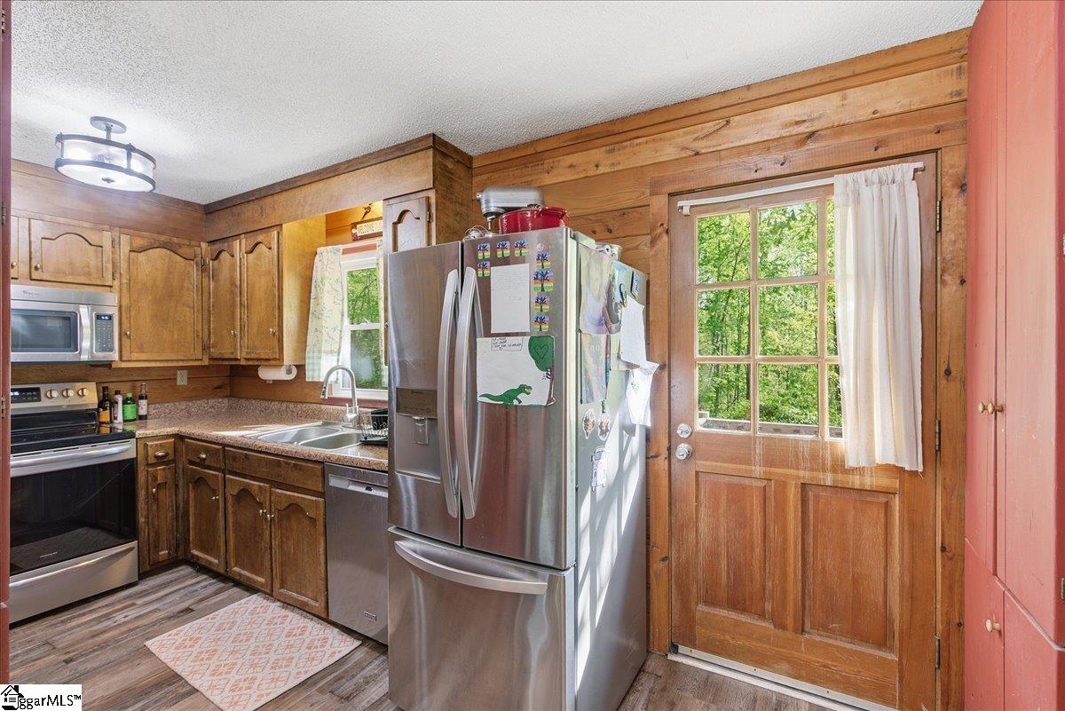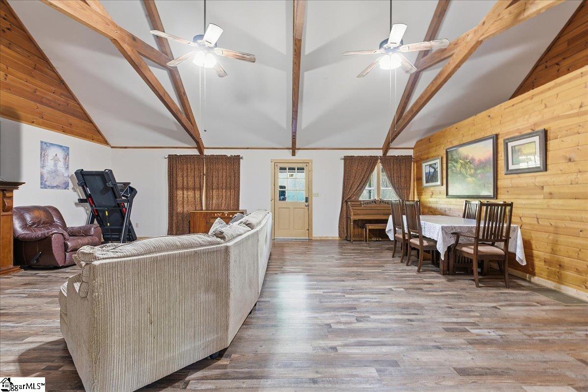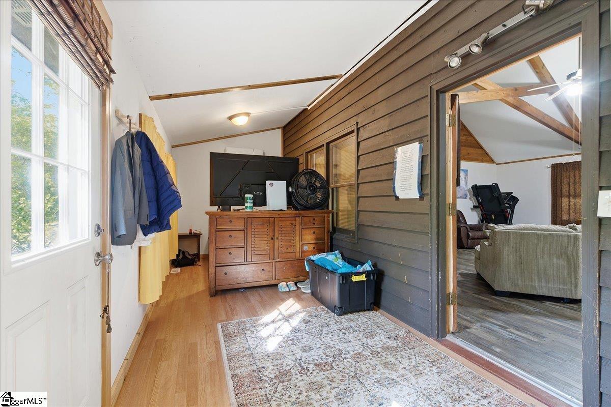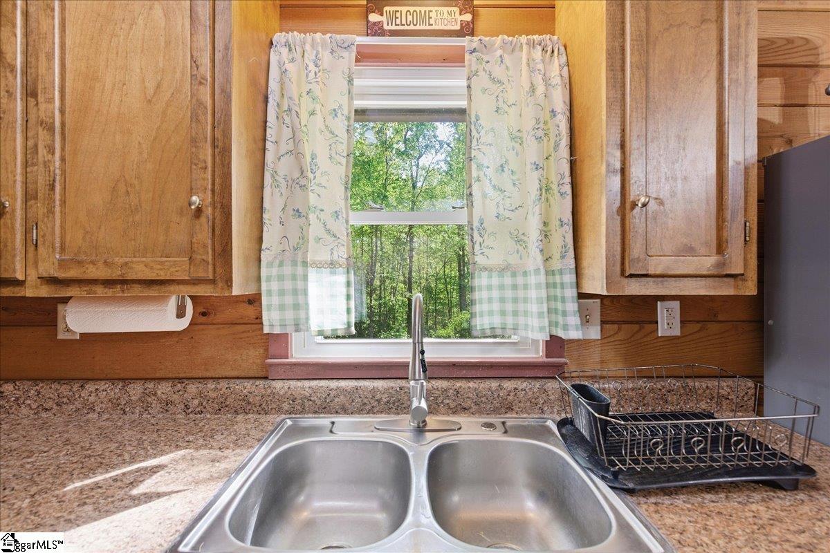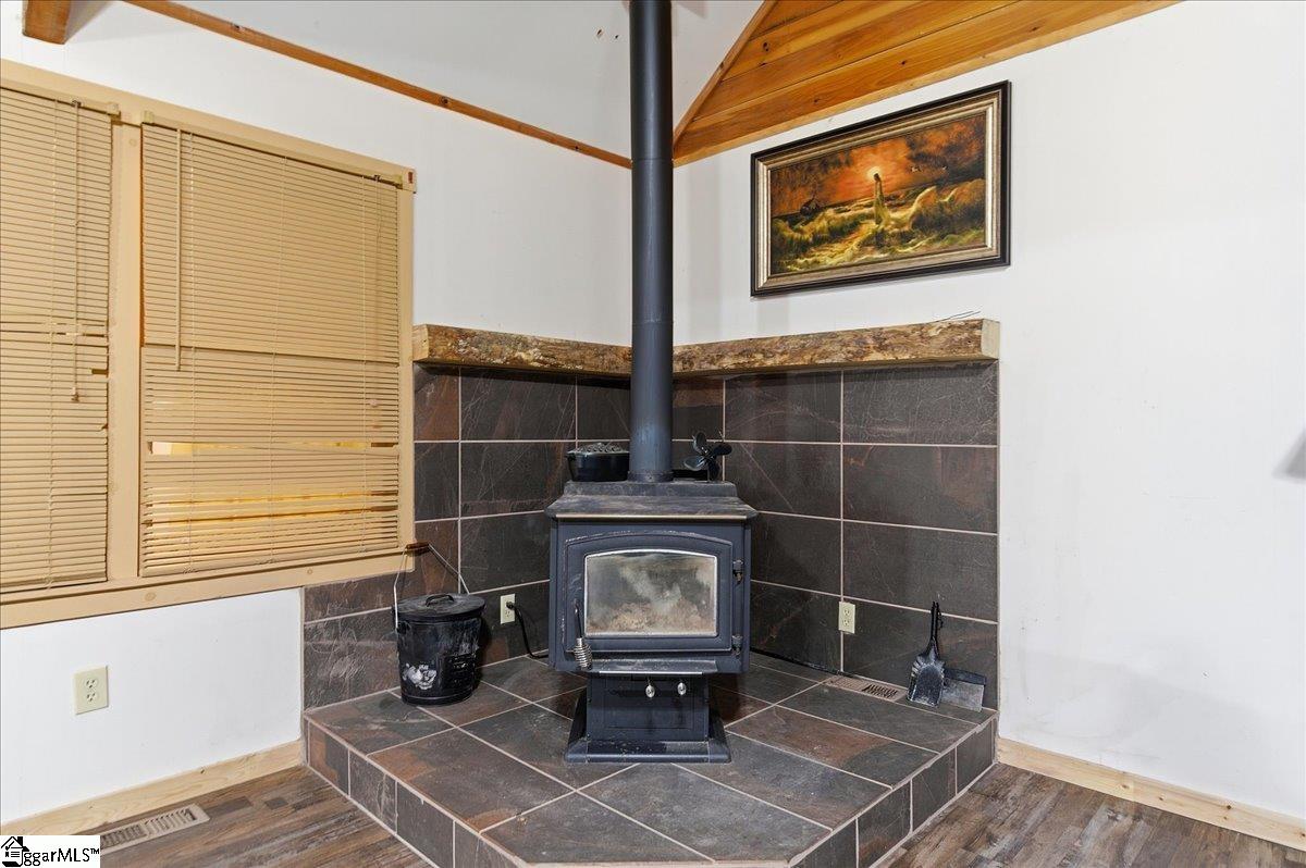 Tucked among the trees on a serene 1.07-acre homesite, this rustic 3-bedroom, 2-bath retreat offers an exceptional blend of privacy, natural beauty, and freedom—with no HOA to limit your lifestyle. Ideally located just off scenic Highway 11 and minutes from Table Rock State Park, this property places you at the doorstep of some of the Upstate’s most treasured outdoor adventures. A welcoming front porch, perfectly suited for rocking chairs and quiet mornings, leads into a stunning vaulted great room filled with natural light and anchored by a charming wood-burning stove—creating an inviting space for both entertaining and everyday living. Just beyond, a cozy den with custom built-ins provides the perfect setting for displaying books and treasured pieces while offering a warm, intimate retreat. The kitchen is well-appointed with a full appliance package and easy flow for gathering and hosting. The home features three generously sized bedrooms and two full baths, including one with a deep soaker tub designed for relaxation. Outdoor living is equally captivating, with a large wraparound deck overlooking natural landscaping rich with native trees and shrubs—an ideal backdrop for entertaining, play, or simply enjoying the peaceful surroundings. The property is a true homesteader’s delight, boasting an abundance of fruit-producing trees including peaches, pears, plums, figs, and apples, along with a wild elderberry bush. Thoughtful upgrades and features add both comfort and peace of mind, including a generator hookup that services the home and well—ensuring continuous power and water—along with a supply of pre-cut wood ready for the stove. Major systems have been updated within the last five years, including the roof, HVAC, and gutters. Fiber optic internet is also available, offering the perfect balance of seclusion and connectivity. Whether you’re seeking a peaceful full-time residence or a refined mountain getaway, this inviting cabin delivers the best of both worlds—tranquil living surrounded by nature, paired with the modern comforts you need.