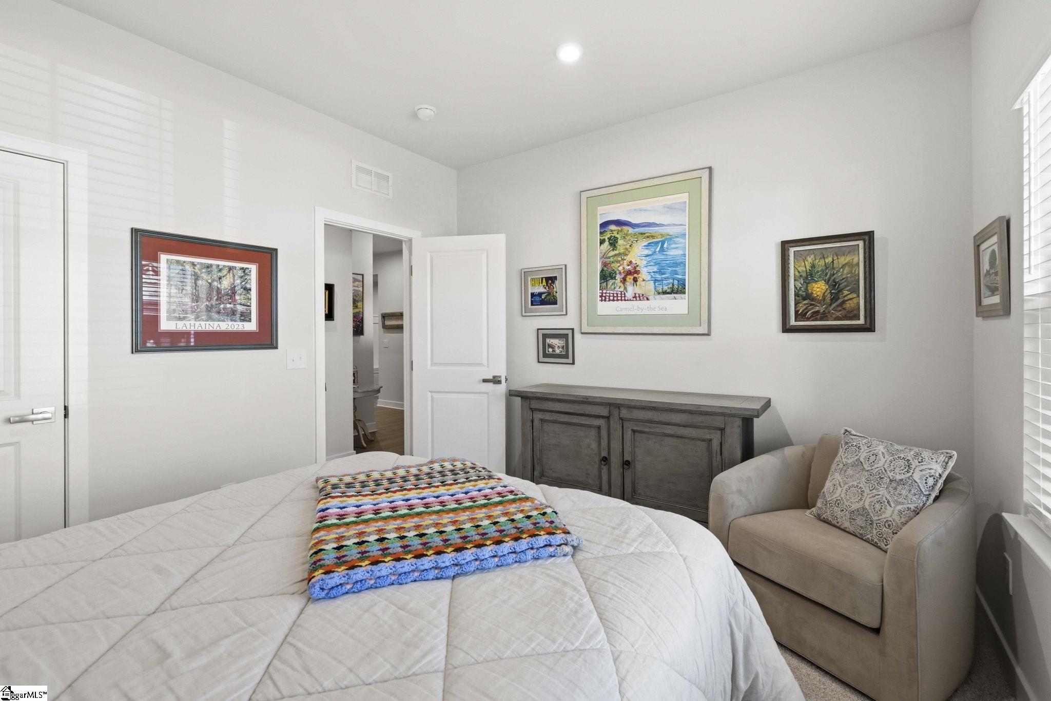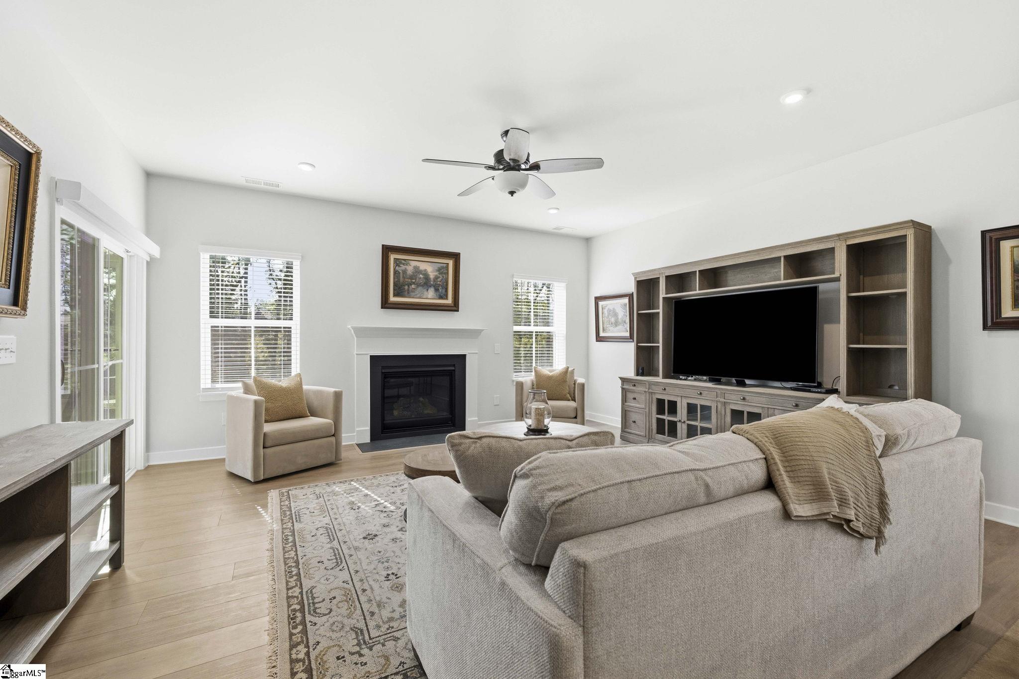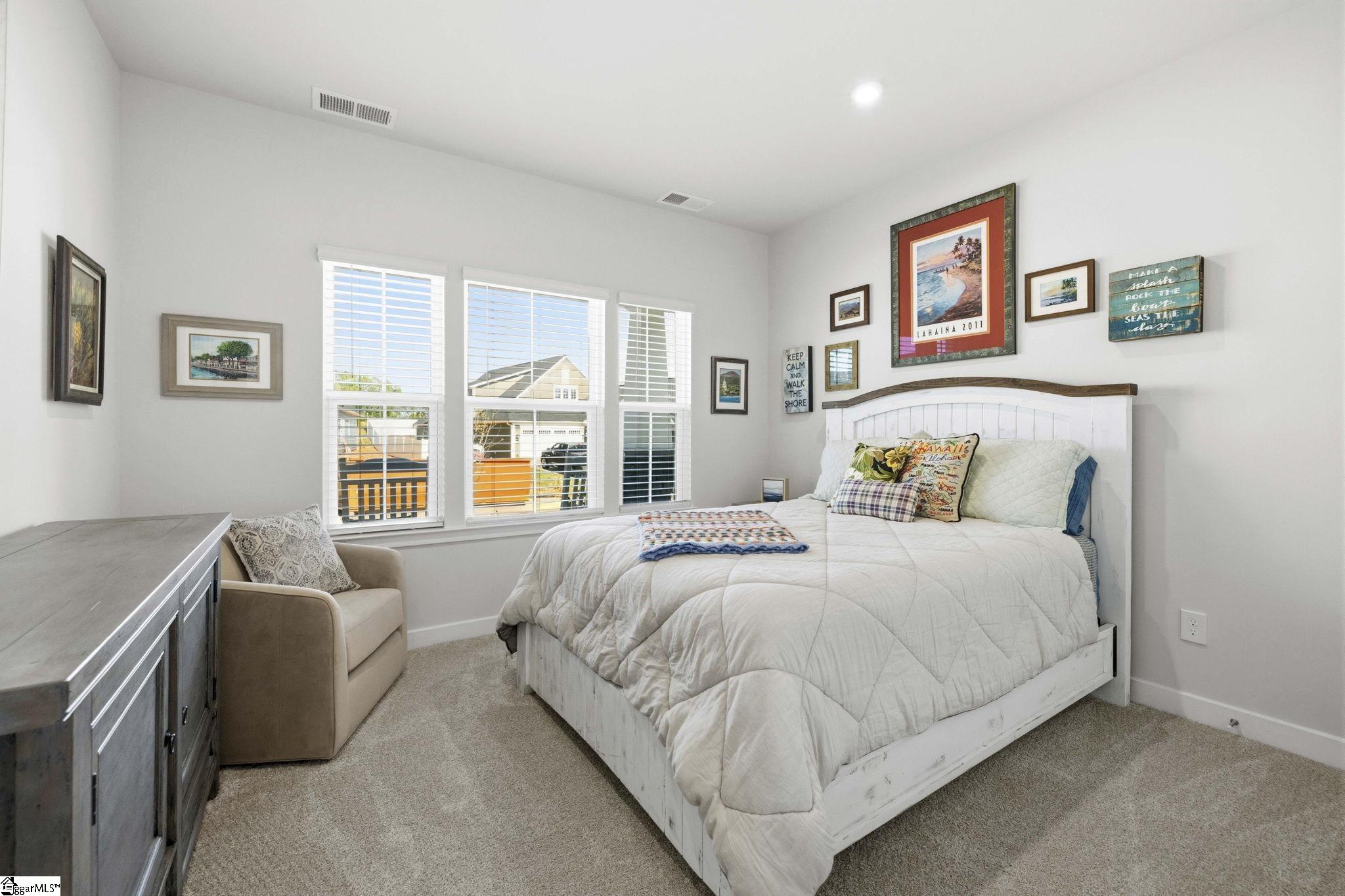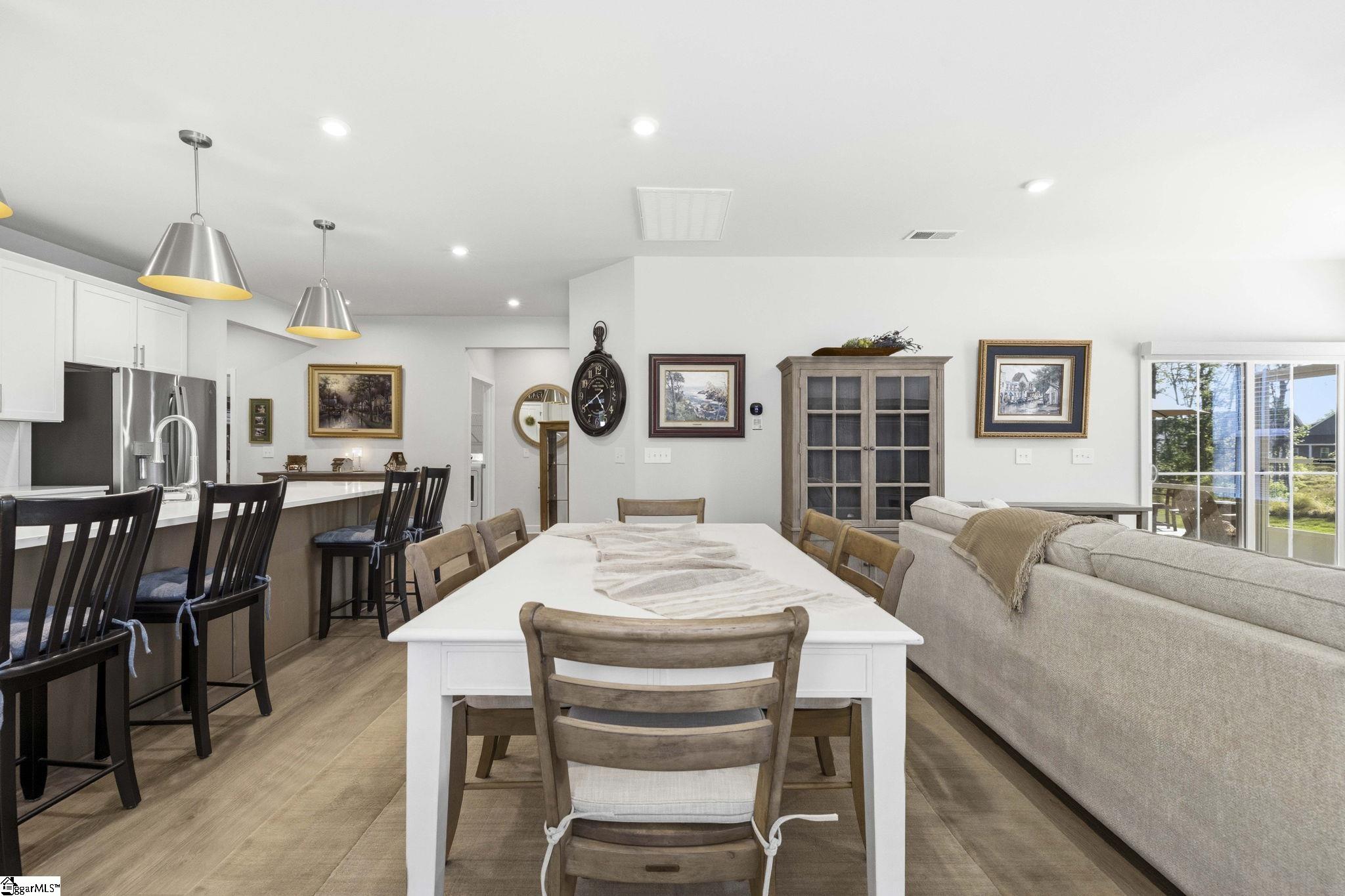Why wait for new construction when this stunning, nearly new home is ready and waiting for you? Located in the sought-after Canterbrook Homes community, this immaulate residence truly looks like it was lifted from the pages of a magazine. The lush green lawn and established landscaping creates a warm welcome, while inside, you’ll find a beautifully curated interior featuring durable LVP flooring, plush carpeting, serene designer colors, and thoughtful attention to detail throughout. A spacious office behind French doors offers flexibility for a private office, playroom, or guest retreat. The open concept main level is designed for both effortless entertaining and everyday living, anchored by a showstopping kitchen with a massive center island, quartz countertops, custom herringbone backsplash, full stainless appliance package including a gas range, walk-in pantry, and soft-close two-tone cabinetry. The adjoining dining area easily accommodates gatherings of eight or more, while the sunny living room overlooks the backyard for a light-filled, inviting feel. Function meets style with a main-level walk-in laundry room and a thoughtfully designed drop zone featuring built-in seating and storage—perfect for keeping daily life organized. The main floor primary suite offers a true retreat with a trey ceiling, spacious walk-in closet, and spa-like bath complete with dual sinks, quartz countertops, and a large tile shower with built-in seating. A rare main-level guest bedroom with access to a full bath adds even more versatility. Upstairs, a generous loft and additional bedroom with a third full bath create the ideal setup for a private guest suite, in-law space, teen retreat, or fitness area—endless possibilities to suit your lifestyle. Outdoor living shines with a screened porch and grilling patio, perfect for summer evenings, weekend barbecues, and year-round enjoyment. And, as an added bonus, a transferable builder’s warranty provides peace of mind. Residents of Canterbrook enjoy a strong amenity package including lawn maintenance, sidewalks, streetlights, playground, resort-style pool with splash pad, walking trails, pond, and pickleball courts. Ideally located just minutes from the Swamp Rabbit Trail trailhead, major roadways, BridgeWay Station, and the charm of downtown Fountain Inn—this home offers the perfect blend of luxury, convenience, and lifestyle.