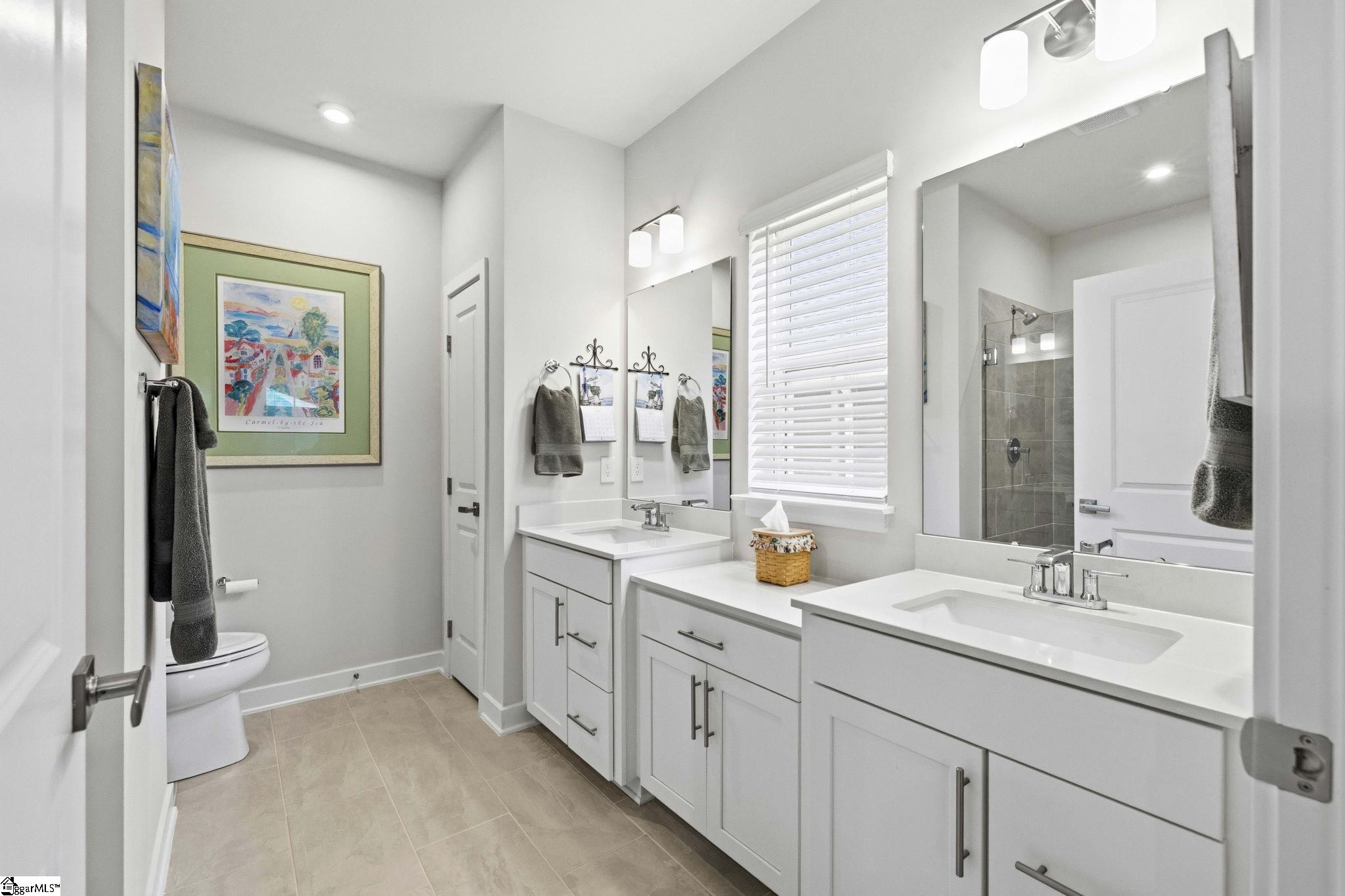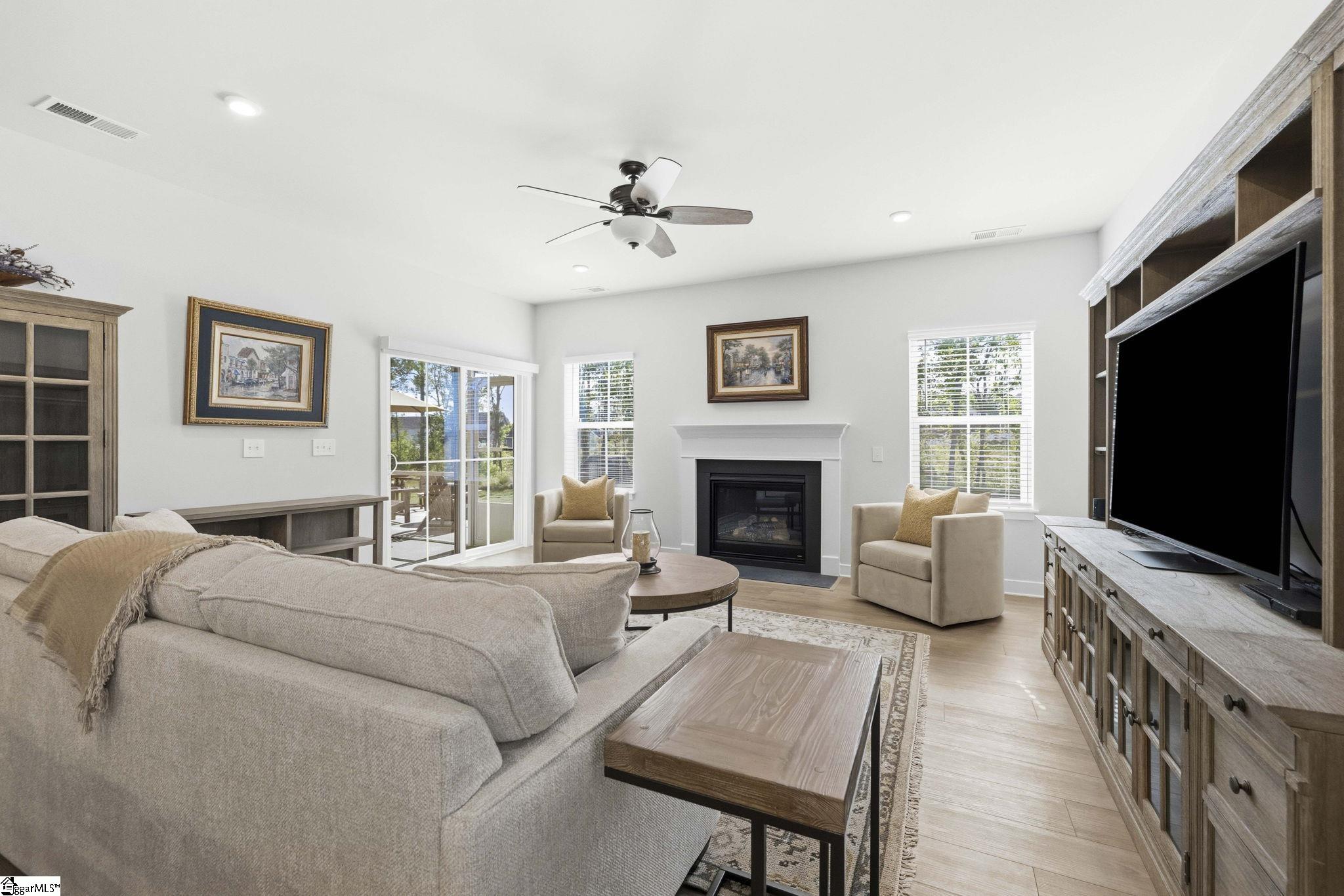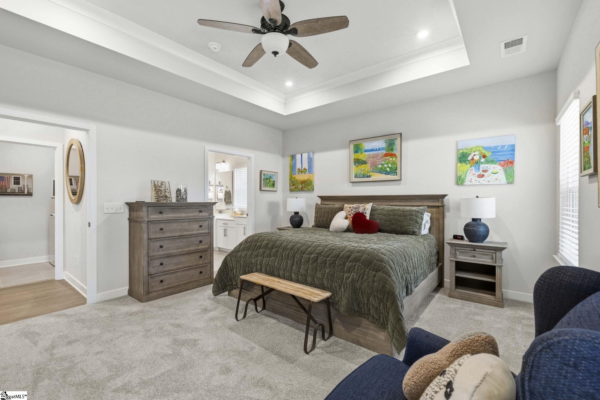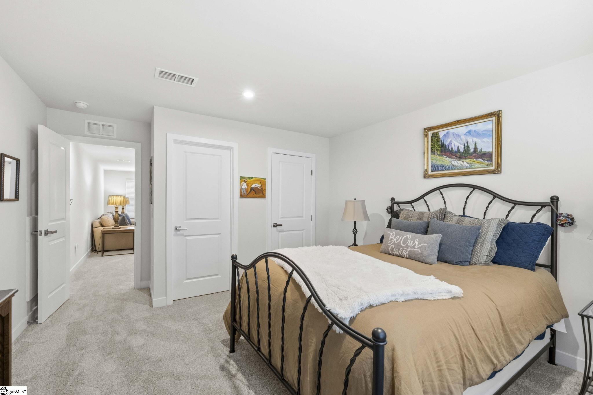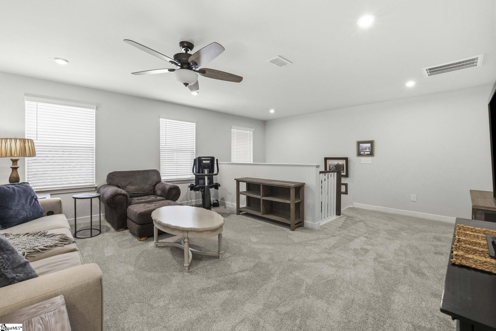 Why wait for new construction when this stunning, nearly new home is ready and waiting for you? Located in the sought-after Canterbrook Homes community, this immaulate residence truly looks like it was lifted from the pages of a magazine. The lush green lawn and established landscaping creates a warm welcome, while inside, you’ll find a beautifully curated interior featuring durable LVP flooring, plush carpeting, serene designer colors, and thoughtful attention to detail throughout. A spacious office behind French doors offers flexibility for a private office, playroom, or guest retreat. The open concept main level is designed for both effortless entertaining and everyday living, anchored by a showstopping kitchen with a massive center island, quartz countertops, custom herringbone backsplash, full stainless appliance package including a gas range, walk-in pantry, and soft-close two-tone cabinetry. The adjoining dining area easily accommodates gatherings of eight or more, while the sunny living room overlooks the backyard for a light-filled, inviting feel. Function meets style with a main-level walk-in laundry room and a thoughtfully designed drop zone featuring built-in seating and storage—perfect for keeping daily life organized. The main floor primary suite offers a true retreat with a trey ceiling, spacious walk-in closet, and spa-like bath complete with dual sinks, quartz countertops, and a large tile shower with built-in seating. A rare main-level guest bedroom with access to a full bath adds even more versatility. Upstairs, a generous loft and additional bedroom with a third full bath create the ideal setup for a private guest suite, in-law space, teen retreat, or fitness area—endless possibilities to suit your lifestyle. Outdoor living shines with a screened porch and grilling patio, perfect for summer evenings, weekend barbecues, and year-round enjoyment. And, as an added bonus, a transferable builder’s warranty provides peace of mind. Residents of Canterbrook enjoy a strong amenity package including lawn maintenance, sidewalks, streetlights, playground, resort-style pool with splash pad, walking trails, pond, and pickleball courts. Ideally located just minutes from the Swamp Rabbit Trail trailhead, major roadways, BridgeWay Station, and the charm of downtown Fountain Inn—this home offers the perfect blend of luxury, convenience, and lifestyle.