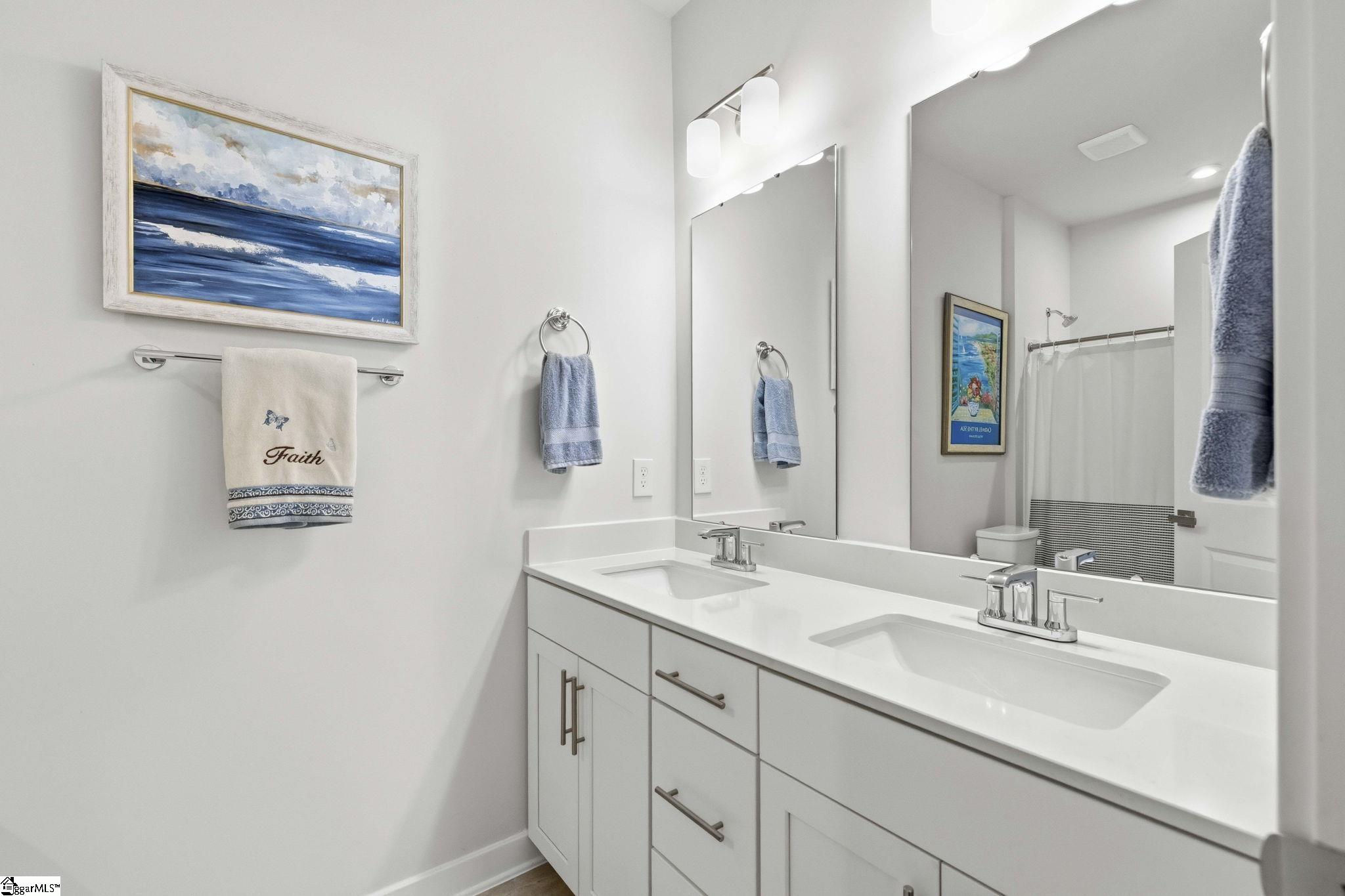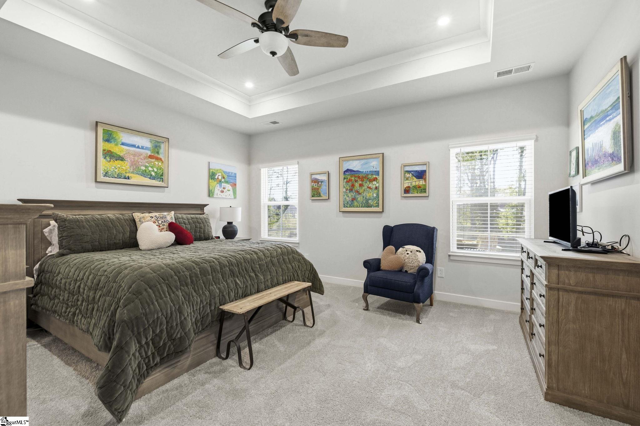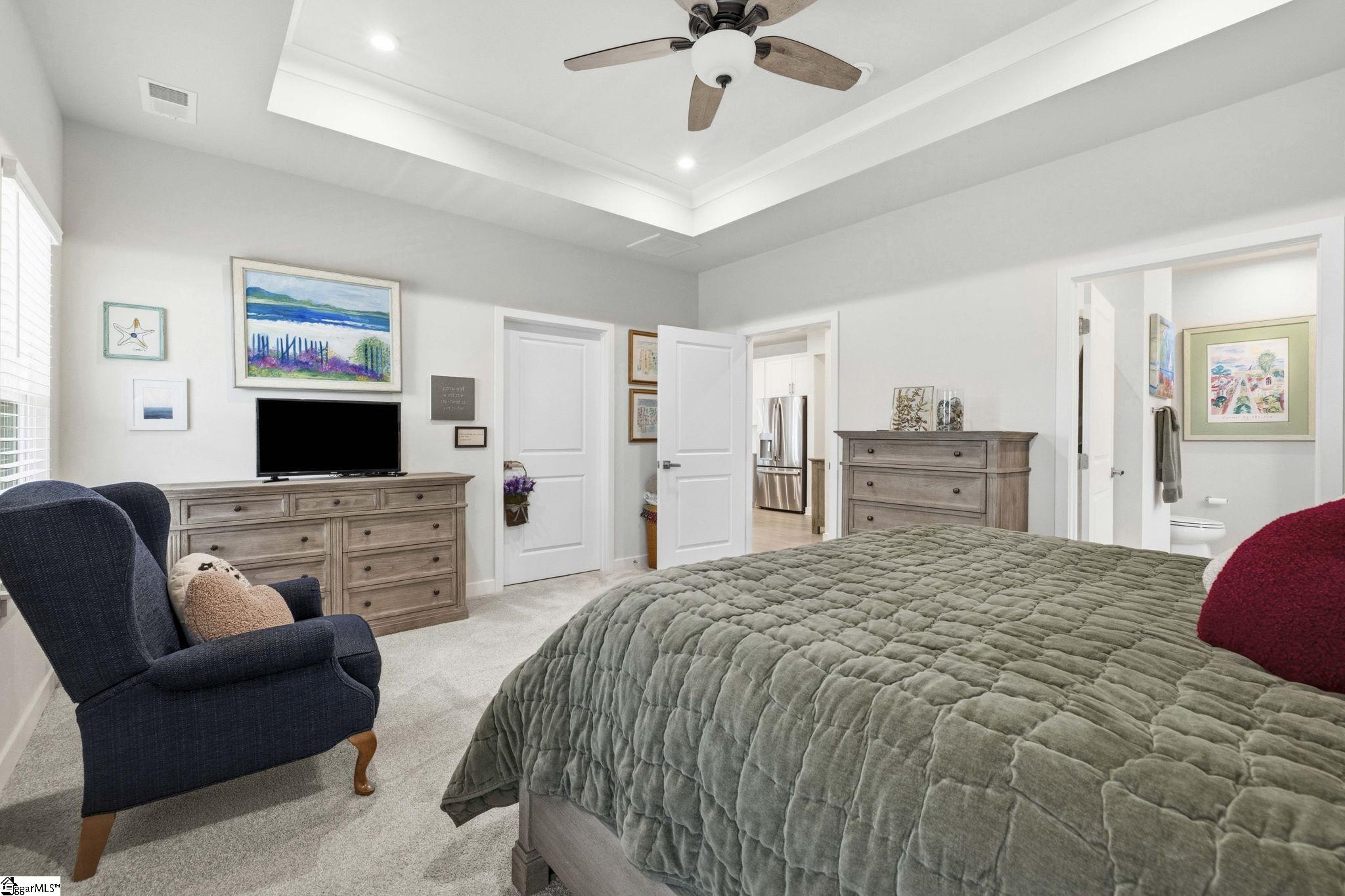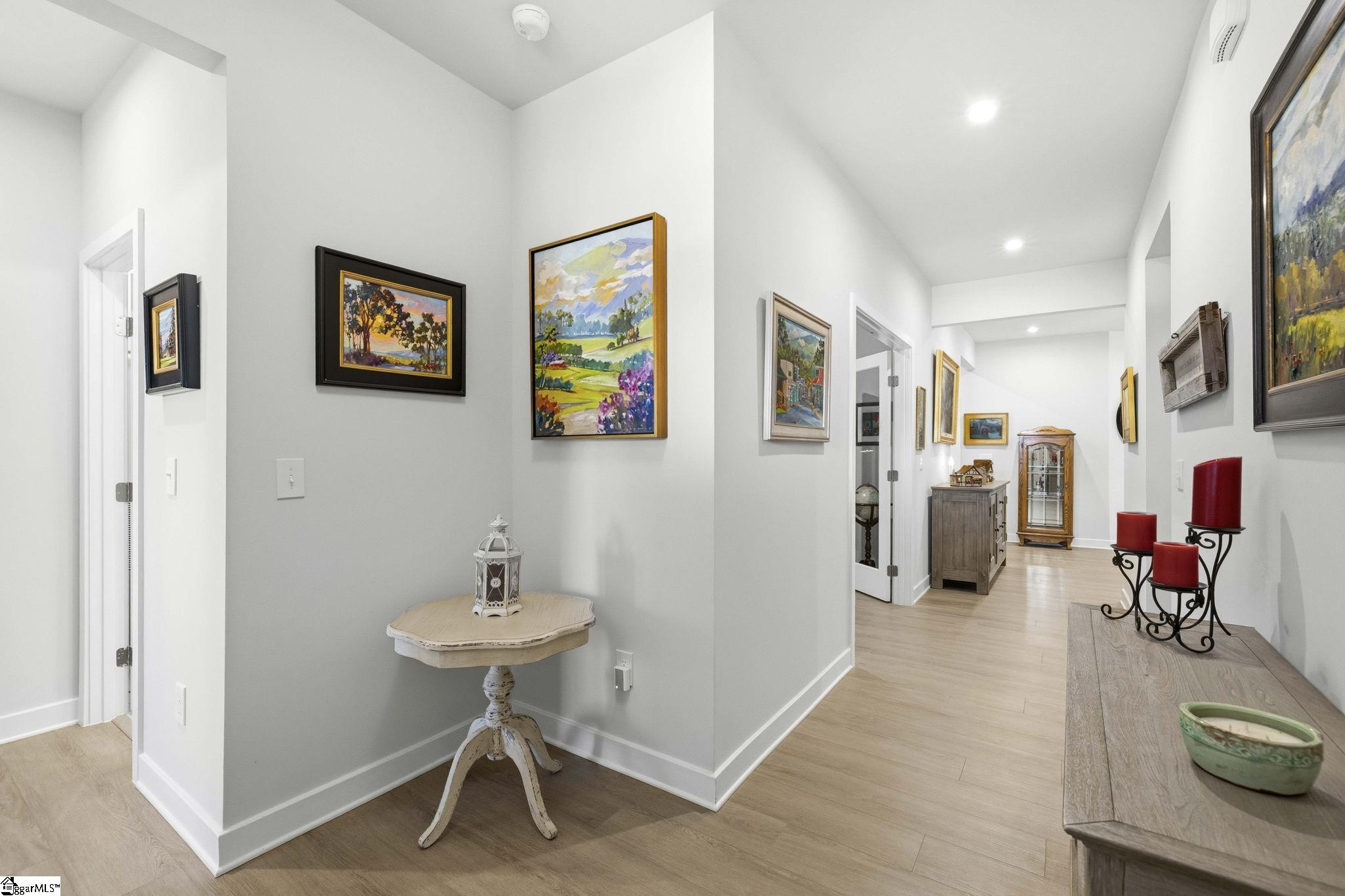 Why wait for new construction when this stunning, nearly new home is ready and waiting for you? Located in the sought-after Canterbrook Homes community, this immaulate residence truly looks like it was lifted from the pages of a magazine. The lush green lawn and established landscaping creates a warm welcome, while inside, you’ll find a beautifully curated interior featuring durable LVP flooring, plush carpeting, serene designer colors, and thoughtful attention to detail throughout. A spacious office behind French doors offers flexibility for a private office, playroom, or guest retreat. The open concept main level is designed for both effortless entertaining and everyday living, anchored by a showstopping kitchen with a massive center island, quartz countertops, custom herringbone backsplash, full stainless appliance package including a gas range, walk-in pantry, and soft-close two-tone cabinetry. The adjoining dining area easily accommodates gatherings of eight or more, while the sunny living room overlooks the backyard for a light-filled, inviting feel. Function meets style with a main-level walk-in laundry room and a thoughtfully designed drop zone featuring built-in seating and storage—perfect for keeping daily life organized. The main floor primary suite offers a true retreat with a trey ceiling, spacious walk-in closet, and spa-like bath complete with dual sinks, quartz countertops, and a large tile shower with built-in seating. A rare main-level guest bedroom with access to a full bath adds even more versatility. Upstairs, a generous loft and additional bedroom with a third full bath create the ideal setup for a private guest suite, in-law space, teen retreat, or fitness area—endless possibilities to suit your lifestyle. Outdoor living shines with a screened porch and grilling patio, perfect for summer evenings, weekend barbecues, and year-round enjoyment. And, as an added bonus, a transferable builder’s warranty provides peace of mind. Residents of Canterbrook enjoy a strong amenity package including lawn maintenance, sidewalks, streetlights, playground, resort-style pool with splash pad, walking trails, pond, and pickleball courts. Ideally located just minutes from the Swamp Rabbit Trail trailhead, major roadways, BridgeWay Station, and the charm of downtown Fountain Inn—this home offers the perfect blend of luxury, convenience, and lifestyle.