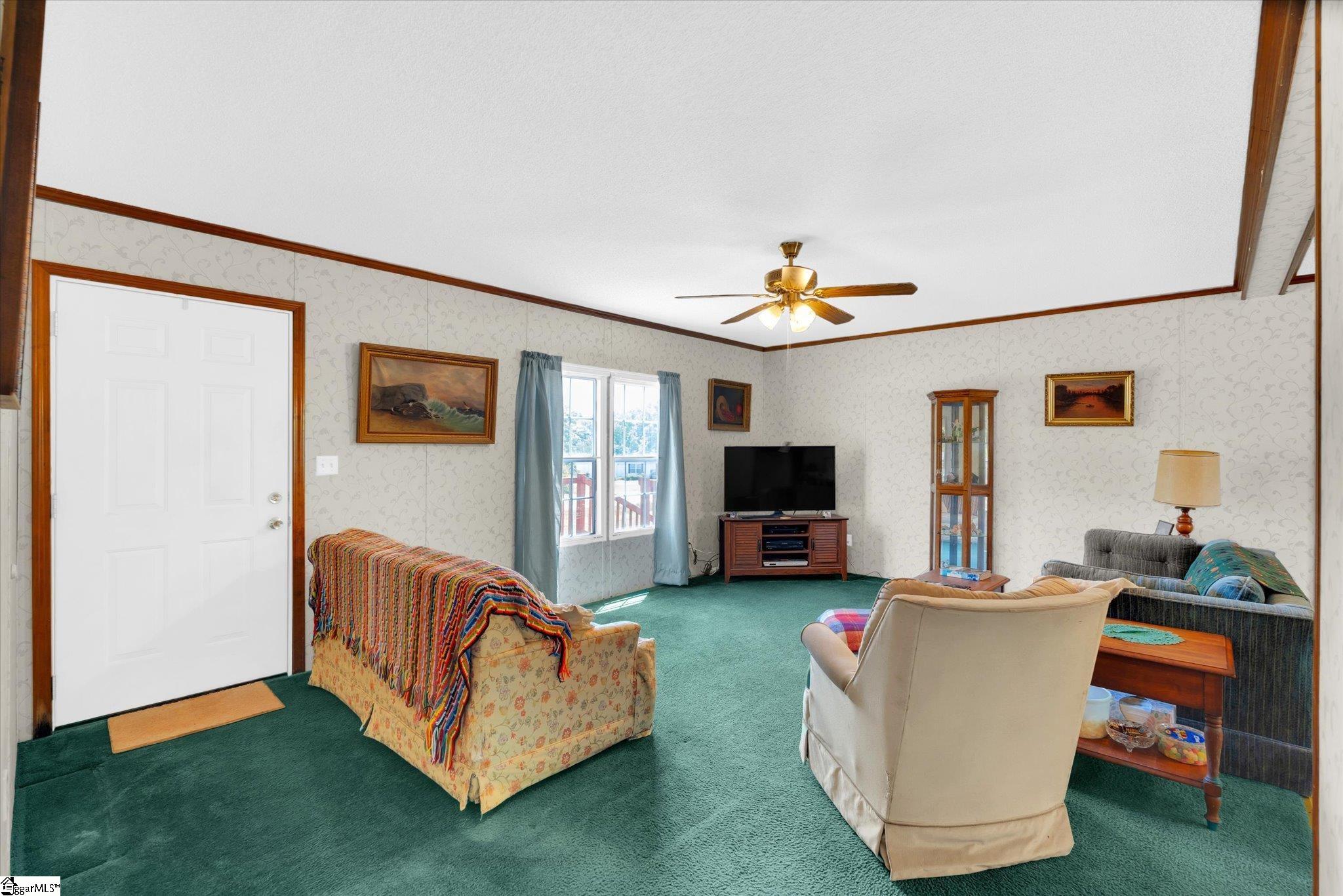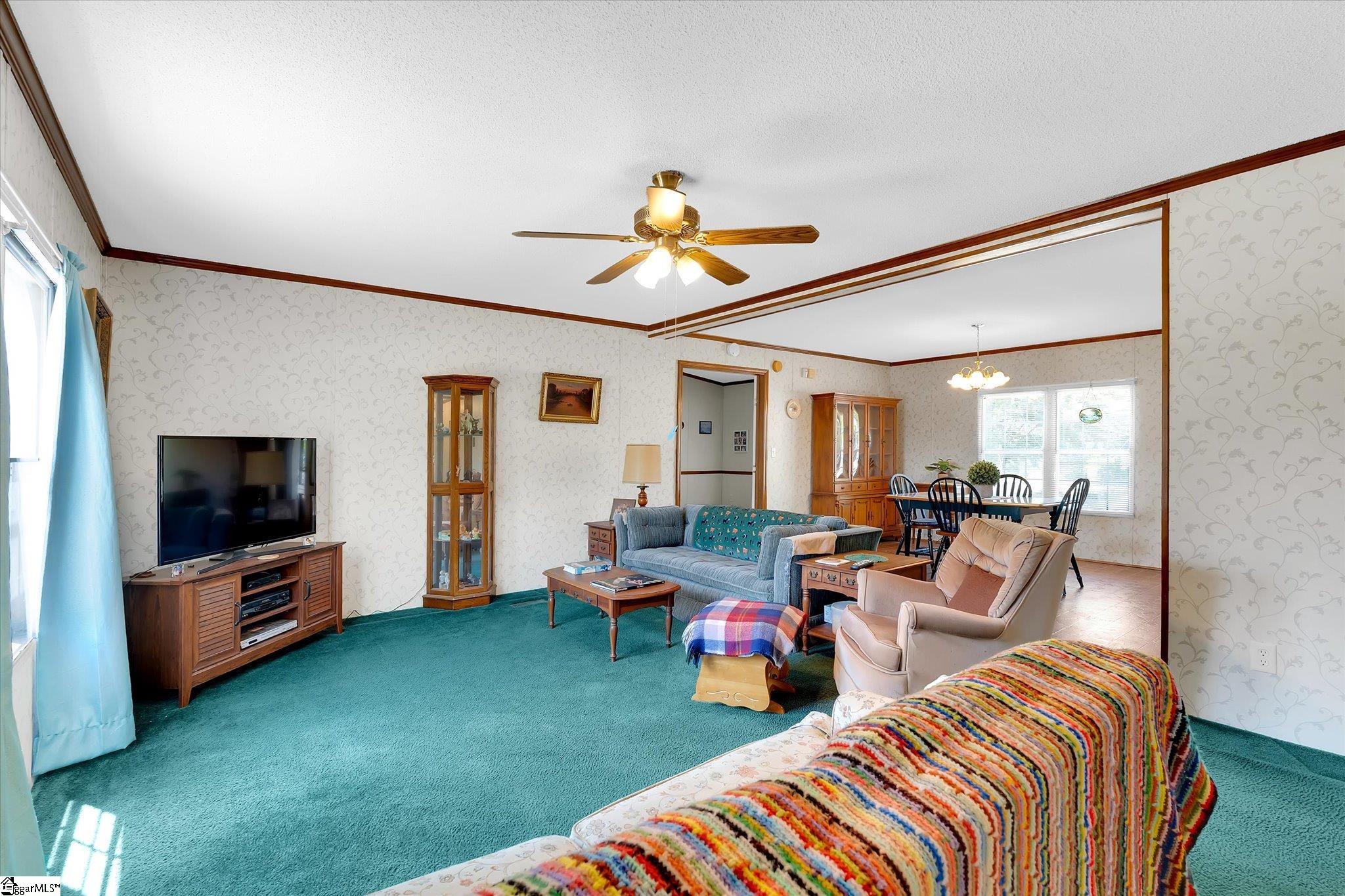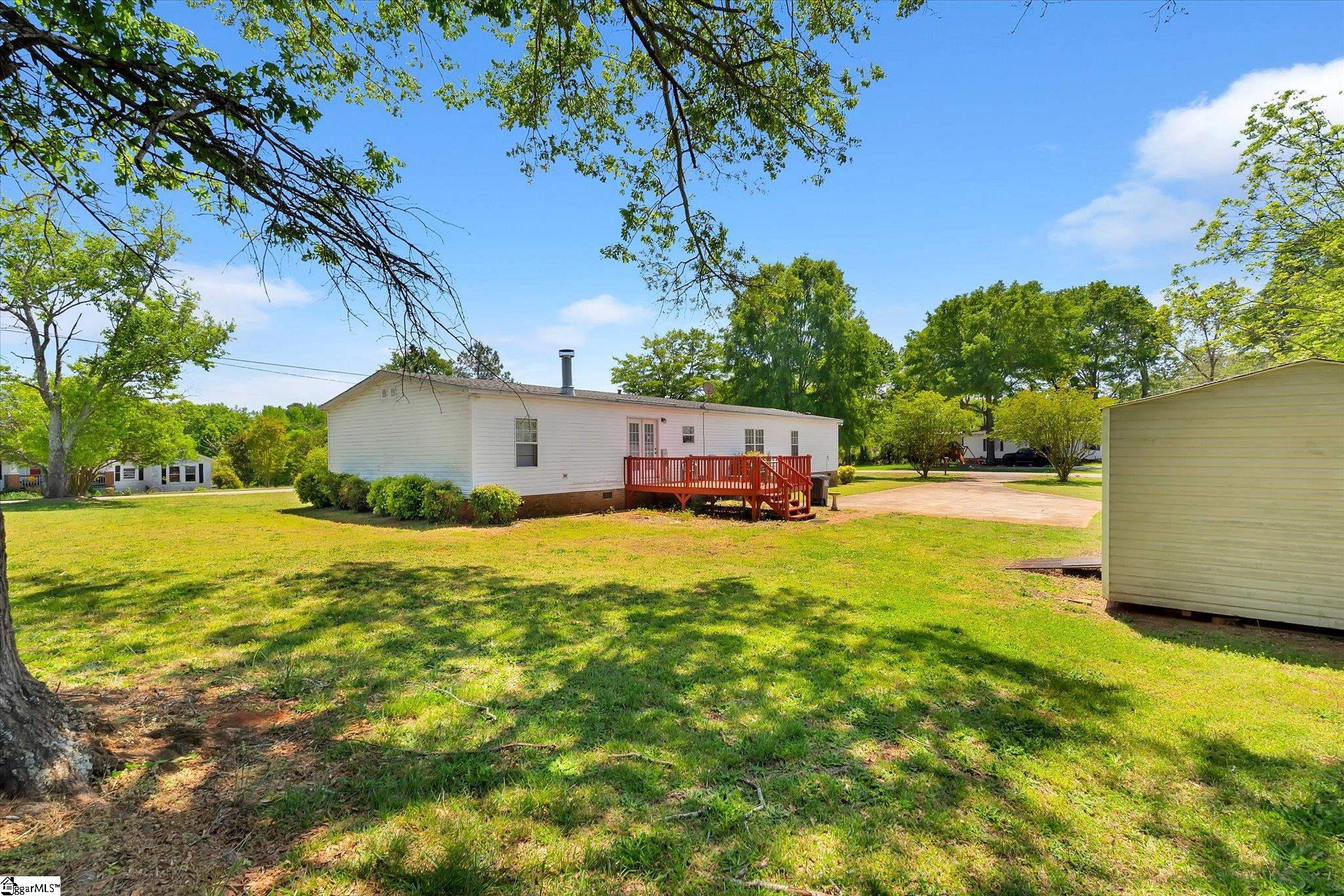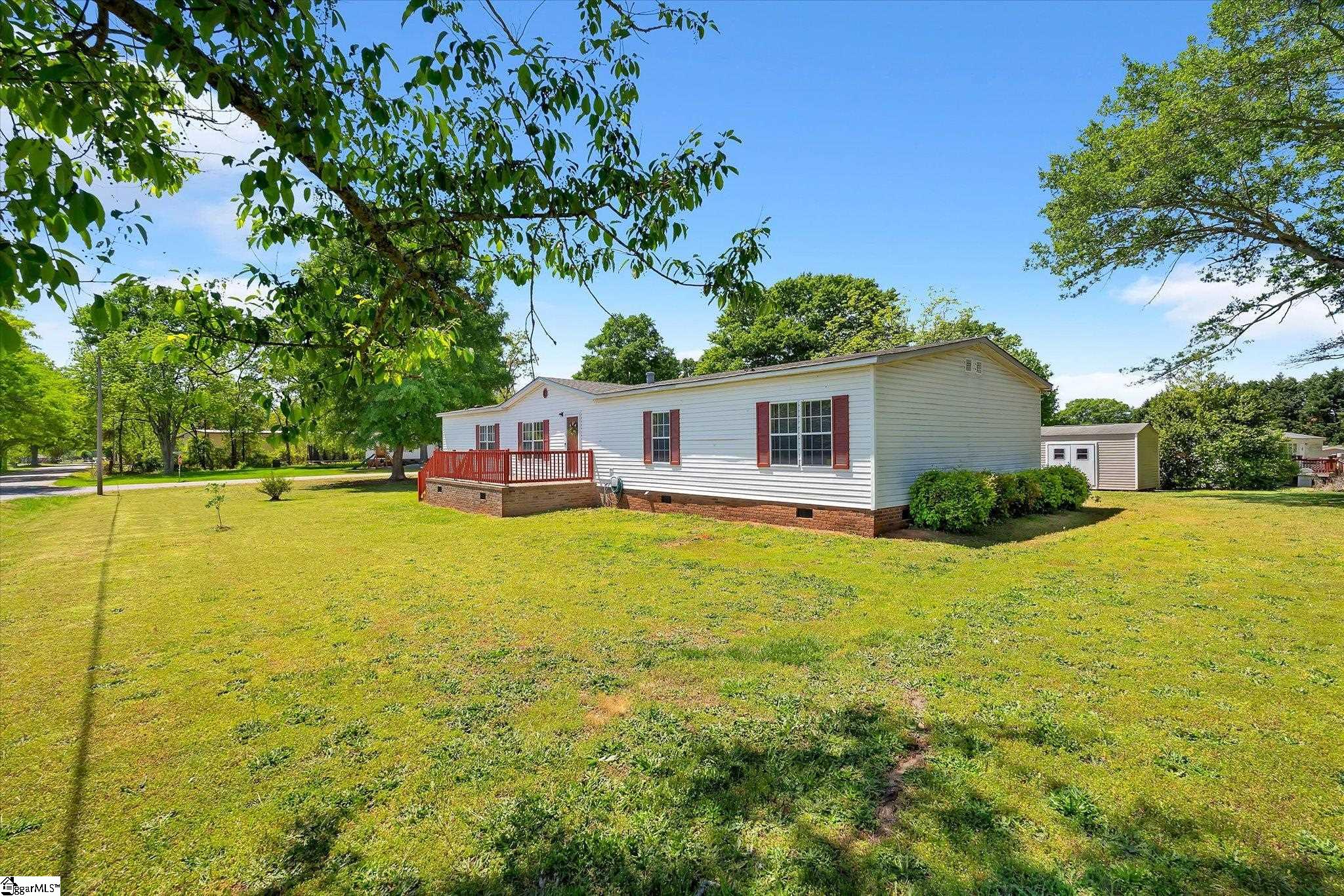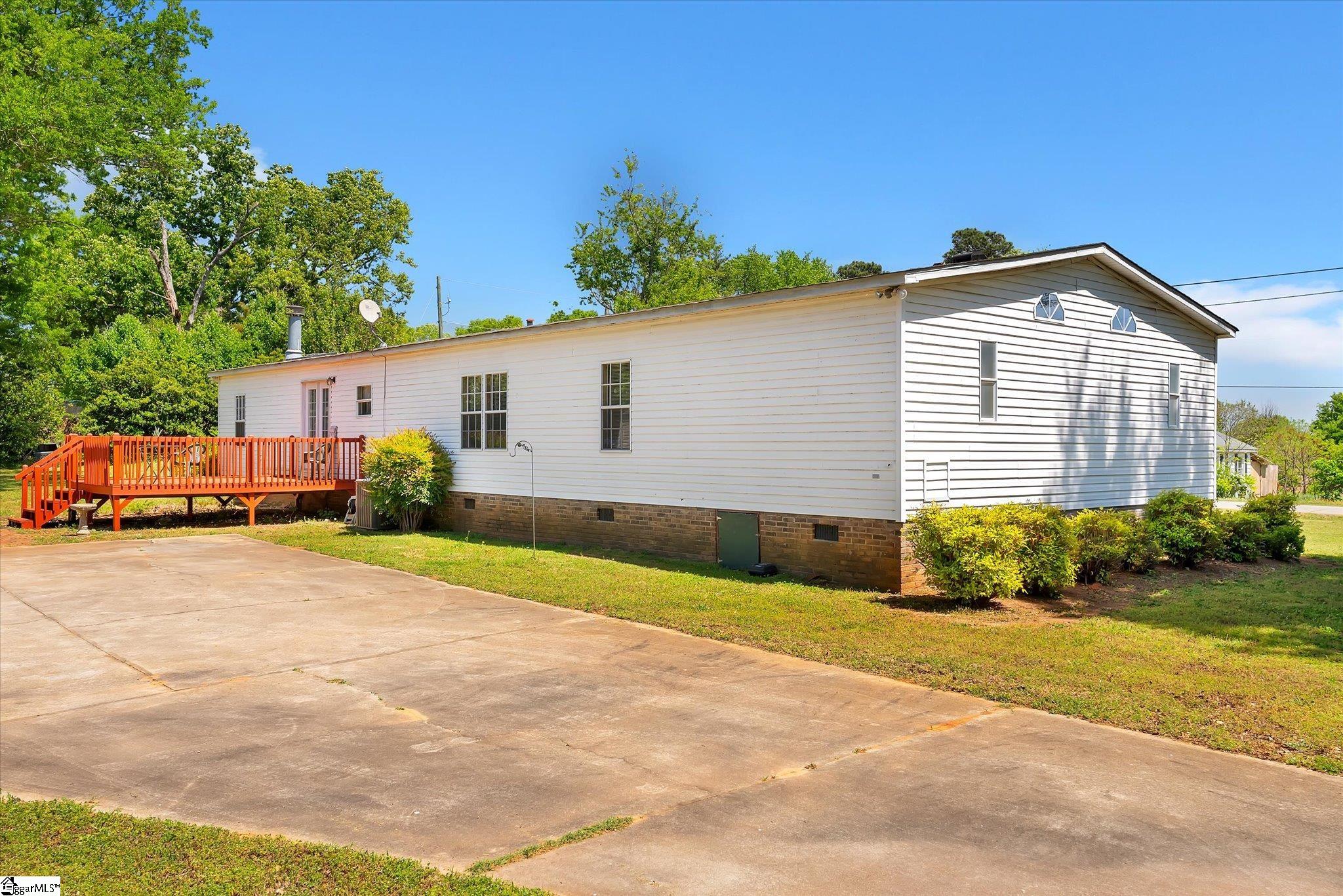 Welcome to this spacious and well-appointed mobile home located in Williamston (outside city limits) within the highly sought-after Anderson School District One. Situated on a generous .54-acre corner lot, this property offers plenty of outdoor space along with added convenience and privacy. Step inside to discover a thoughtfully designed split floor-plan featuring multiple living areas, including a comfortable den with cozy wood burning fireplace, a separate living room, and a dedicated dining room—perfect for both everyday living and entertaining. The kitchen comes fully equipped with all appliances and flows easily into the dining and living areas. A dedicated laundry room includes both washer, dryer and cabinetry for added convenience. The main bedroom suite is a true retreat, featuring a unique layout with two separate full bathrooms—one with a shower and the other with a jetted soaking tub—connected by a spacious walk-in closet. On the opposite side of the home, you’ll find three additional bedrooms and a full bathroom, providing privacy and flexibility for family or guests. Enjoy outdoor living with a large front porch, a back deck perfect for relaxing or entertaining, and an outbuilding for extra storage. Additional parking space on the paved driveway adds to the home’s functionality. This property offers comfort, space, and versatility—all in a convenient location. Don’t miss your opportunity to make it yours!
