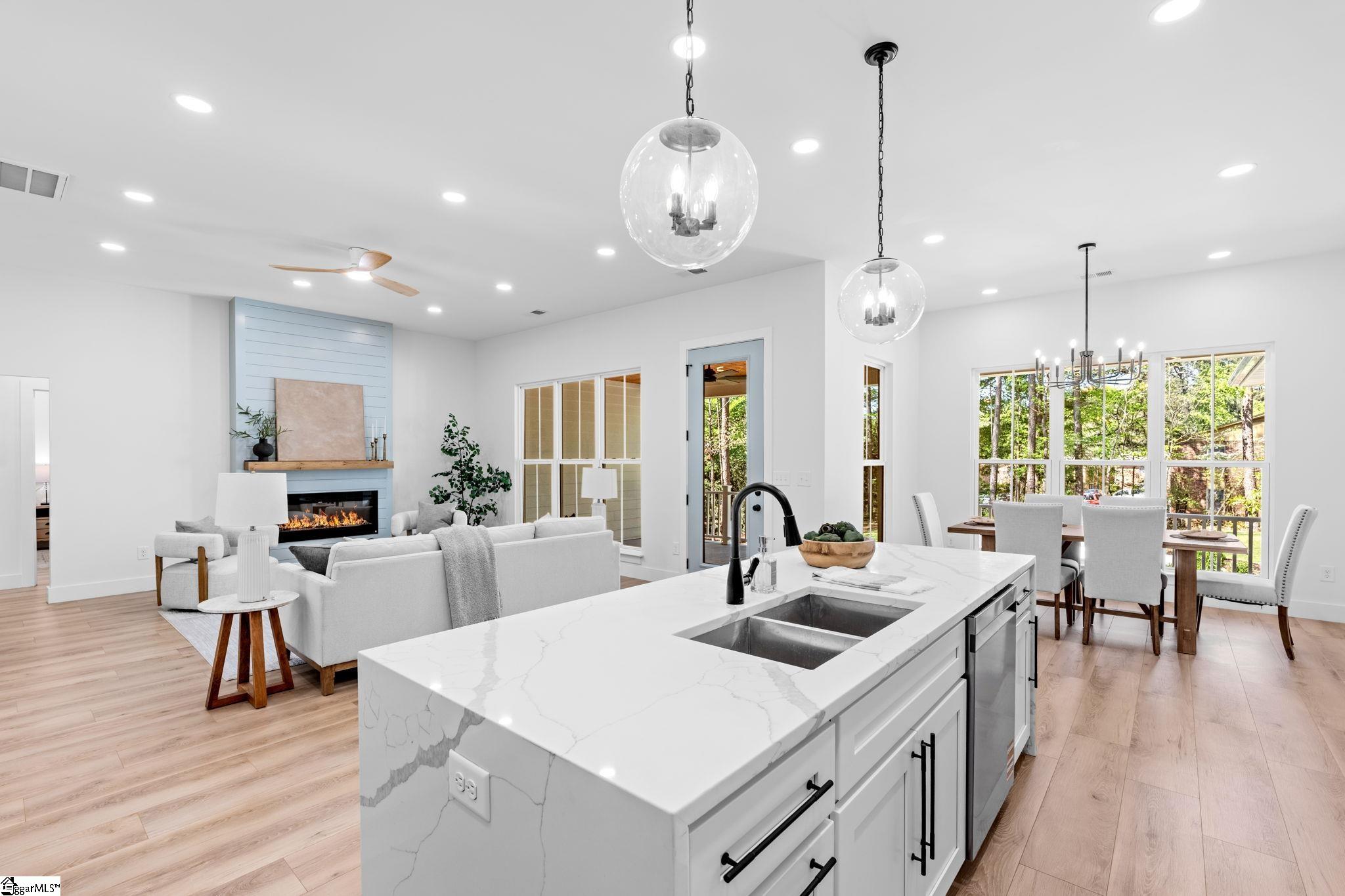 NEW CONSTRUCTION, CUSTOM HOME! Welcome to 1433 Stillwater Drive, a standout modern Southern home where elevated design meets everyday functionality in one of Seneca’s most sought-after communities. Situated on a spacious 0.60-acre lot, this home offers privacy, style, and a level of craftsmanship that’s hard to find. From the moment you arrive, the expansive covered front porch sets the tone, perfect for slow mornings or evening unwinding. Out back, a large covered porch overlooks a large and level yard complete with a custom fire pit, creating the ideal setting for entertaining or relaxing. Inside, the home is filled with natural light and designed with a seamless open-concept layout that connects the living room, dining area, and kitchen in a way that feels both inviting and intentional. The kitchen is truly the centerpiece, featuring custom cabinetry, a hidden walk-in pantry with built-in shelving, modern appliances, a striking waterfall island, and a sleek backsplash that ties it all together. The single-level floor plan offers comfort and convenience, with all bedrooms thoughtfully positioned on the main floor. The primary suite is a true retreat, complete with a spacious walk-in closet and a spa-inspired bathroom featuring a soaking tub, walk-in shower, and double vanities. A rare and highly functional feature is the direct access from the primary suite to the laundry room, which includes a sink and a custom pet washing station. Three additional bedrooms offer generous space, custom closet systems, and flexibility for guests, family, or a home office. The home also includes a full bath and a half bath, designed with both style and practicality in mind. The living area features an electric fireplace, with a gas line already in place for an easy conversion if desired. The property includes a two-car garage plus an additional finished garage space with sleek epoxy flooring, along with an extended driveway for ample parking. A septic system is in place, and every detail has been thoughtfully considered to maximize both function and lifestyle. Living in Stillwater means access to resort-style amenities, including a pool, tennis and pickleball courts, a playground, and scenic walking trails. Conveniently located just minutes from downtown Seneca, Clemson University, and between Lake Keowee and Lake Hartwell, this home offers the perfect balance of location and lifestyle. This is not just another new construction; it is a carefully curated home designed to stand out. A rare opportunity to own a truly unique property in a prime location