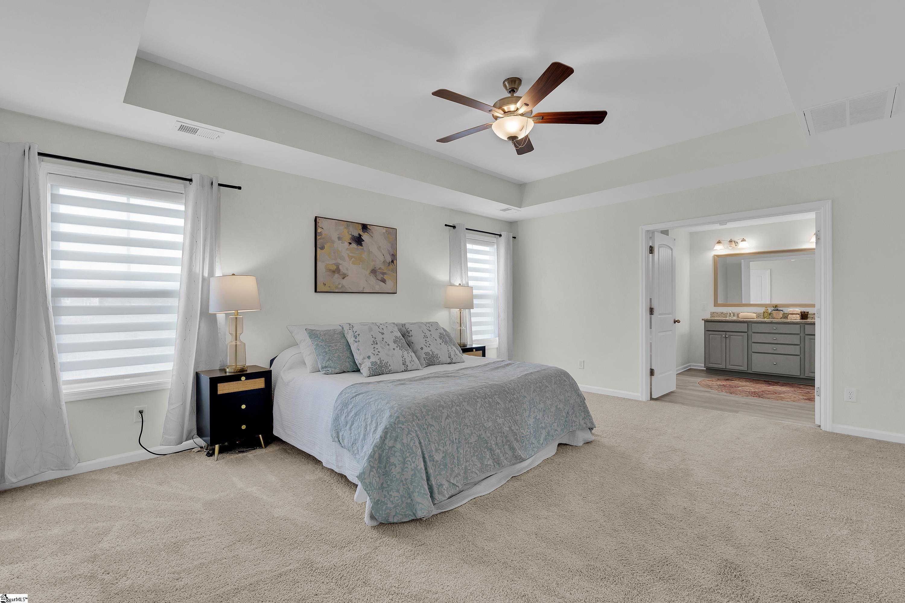 Welcome to 144 Callongton Drive in the sought-after Harvest Glen community of Piedmont, SC. Nestled among peaceful maize fields, this home offers the perfect blend of rural charm and modern convenience, just 15 minutes to vibrant Downtown Greenville, major medical, and retail shopping. Built in 2022 by Great Southern Homes, this spacious 5-bedroom, 3 full bath residence also features a main-level office that can serve as a 5th bedroom. It’s a rare chance to own a like-new home at a fantastic resale value. Inside, luxury vinyl plank flooring flows throughout the first floor, where an open floor plan seamlessly connects the living spaces. The formal dining room sets the stage for special gatherings, while sunlight pours in from every window, framing picturesque views of the cornfields. Upstairs, you’ll find 4 oversized bedrooms, each with walk-in closets(primary has 2) so large they feel like extra rooms of their own. Thoughtful handcrafted architectural details add a modern vibe, while the pride of ownership shines through every corner of the home. Step outside to enjoy the fully sodded backyard and patio, perfect for grilling, entertaining, or watching kids and pets. Harvest Glen is more than a neighborhood it’s a true community where neighbors look out for one another while enjoying the freedoms of homeownership. Come experience the balance of quiet country living with easy access to everything Greenville has to offer. Get a new construction house without waiting!