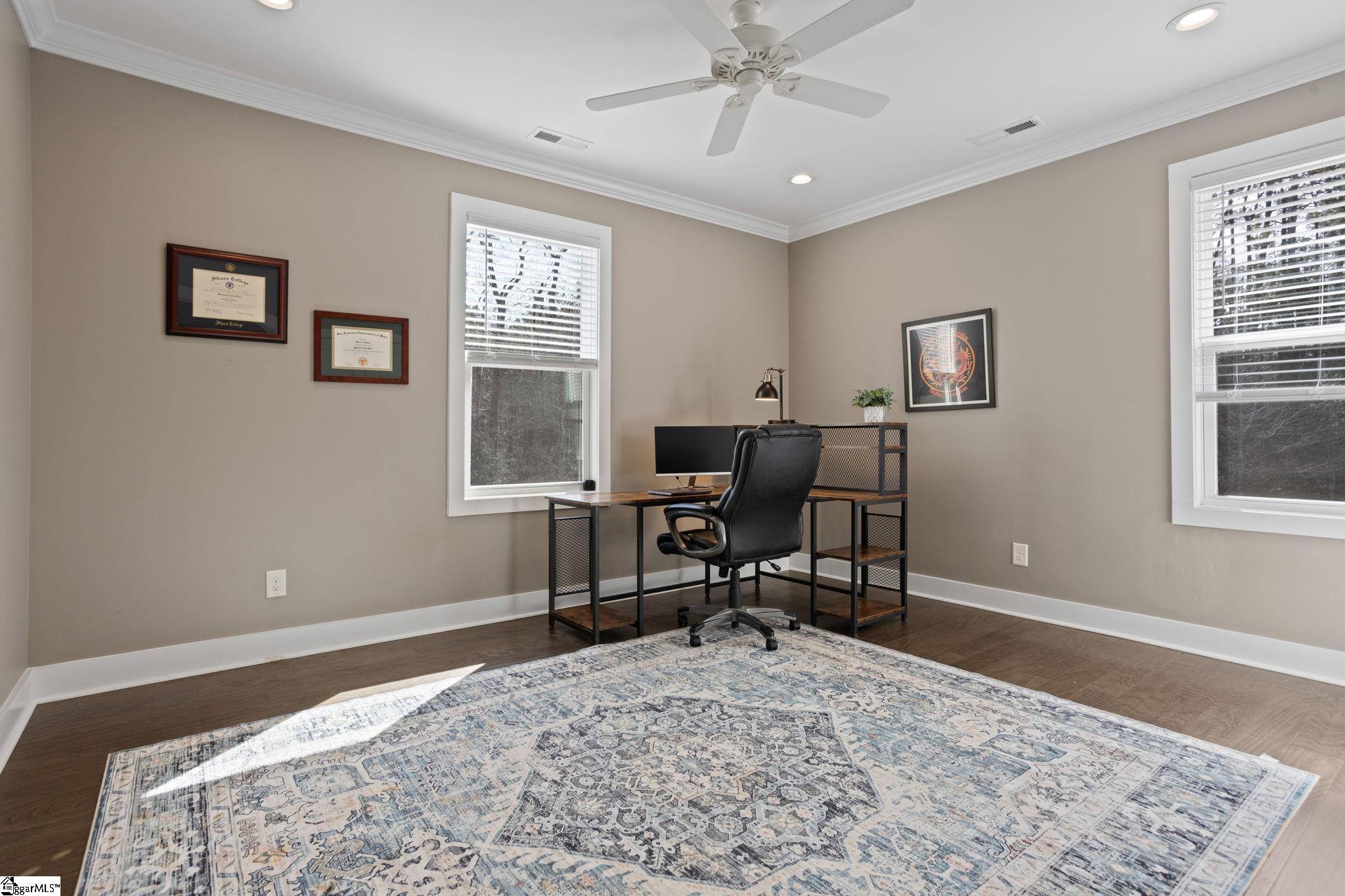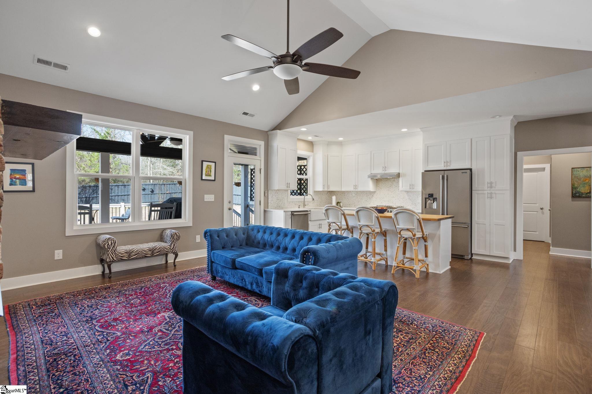 Welcome to this impeccably maintained, 5-year-old Craftsman-style retreat, offering the perfect blend of modern luxury and serene rural living. Situated on an expansive lot of almost 2 acres, this 4-bedroom, 3-bathroom home provides abundant space and privacy, complete with a fully fenced-in yard. Inside, the home boasts sophisticated details and a highly functional split floorplan. The main living area is characterized by soaring vaulted ceilings and rich hardwood floors that flow throughout the principal rooms. The centerpiece is the cozy fireplace, flanked by custom built-in bookshelves, creating a warm and inviting atmosphere. The gourmet kitchen is a chef’s delight, featuring sleek quartz countertops, ample cabinetry, and high-end fixtures. The thoughtful split floorplan ensures privacy, placing the primary suite separate from the secondary bedrooms. The exterior is just as impressive, offering an oversized garage for extra storage space with an excellent electrical setup, perfect for a workshop. Enjoy the tranquility and low-maintenance lifestyle that comes with a newer home in this desirable rural setting. This property truly combines the charm of Craftsman architecture with contemporary comforts and acreage.
