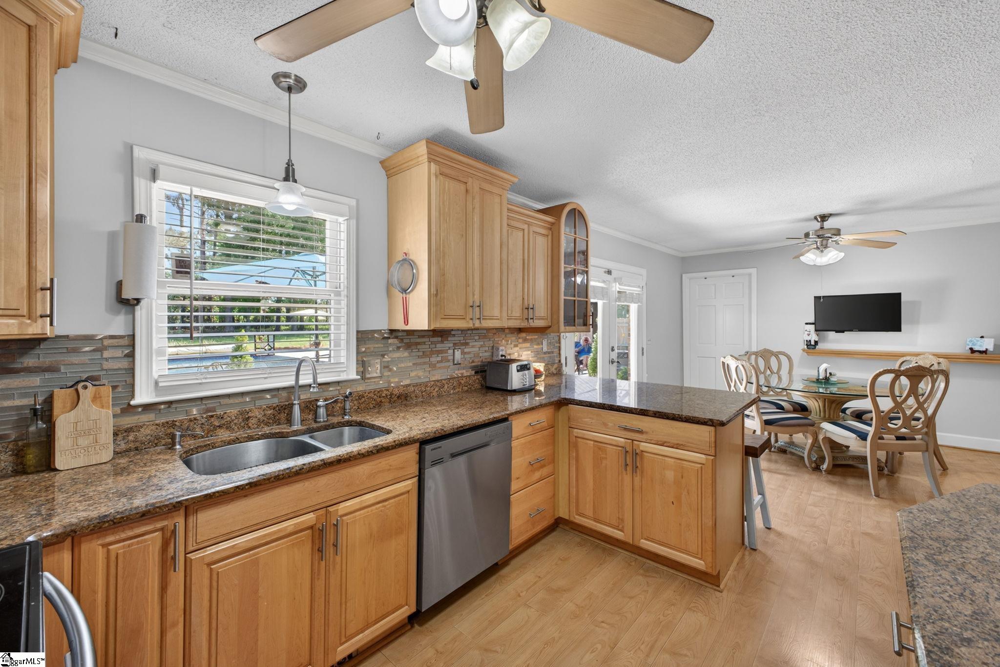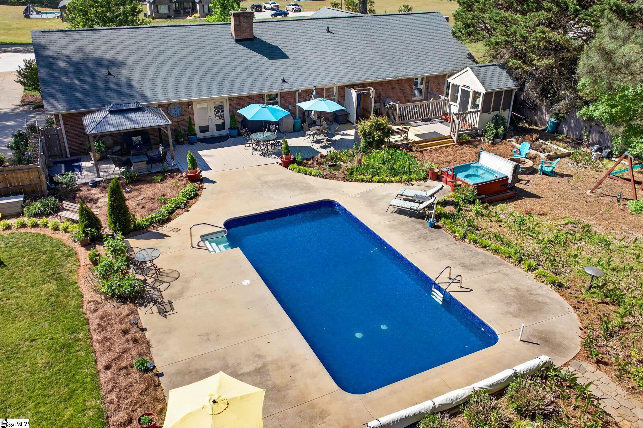 Open House 4/25/26 11-1pm & 4/26/26 2-4pm Welcome to this beautifully maintained, single-owner all-brick ranch on a stunning 1-acre lot in Piedmont, SC. From the moment you arrive, the meticulously landscaped front yard sets the tone, while the private backyard offers a true retreat with an in-ground pool, flat tree-lined lawn, lounging gazebo, and dedicated potting shed for gardening or storage. Step inside to a welcoming foyer that thoughtfully separates the main living spaces from the bedroom wing, creating a functional layout. The foyer also features a deep built-in storage closet with plenty of extra space. The living room draws you in with vaulted ceilings, exposed wood beams, and a cozy wood-burning fireplace. It flows into the traditional dining room and spacious kitchen, which is complemented by a large multipurpose room with laundry, added counter space, and shelving for storage. The opposite side of the home features four bedrooms and two full bathrooms. The primary suite is its own retreat with a jetted tub, separate shower, walk-in closet, and direct access to the back deck and pool area. Located in a peaceful, established neighborhood with quick access to Simpsonville, I-385, I-85, and just 20 minutes to Downtown Greenville and the hospital. This home offers space, comfort, and a backyard oasis that is hard to find.