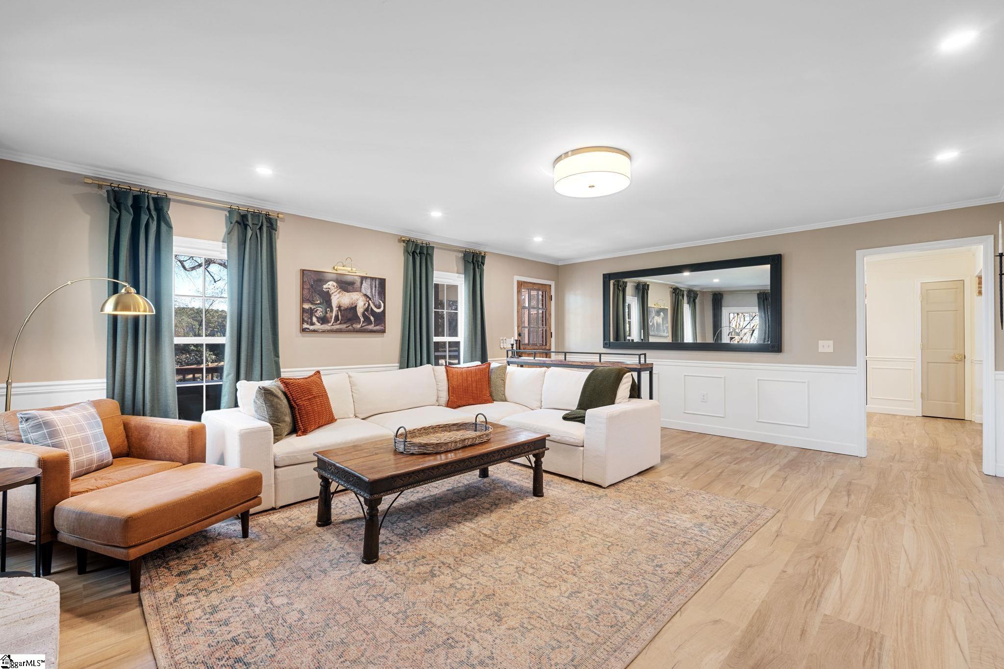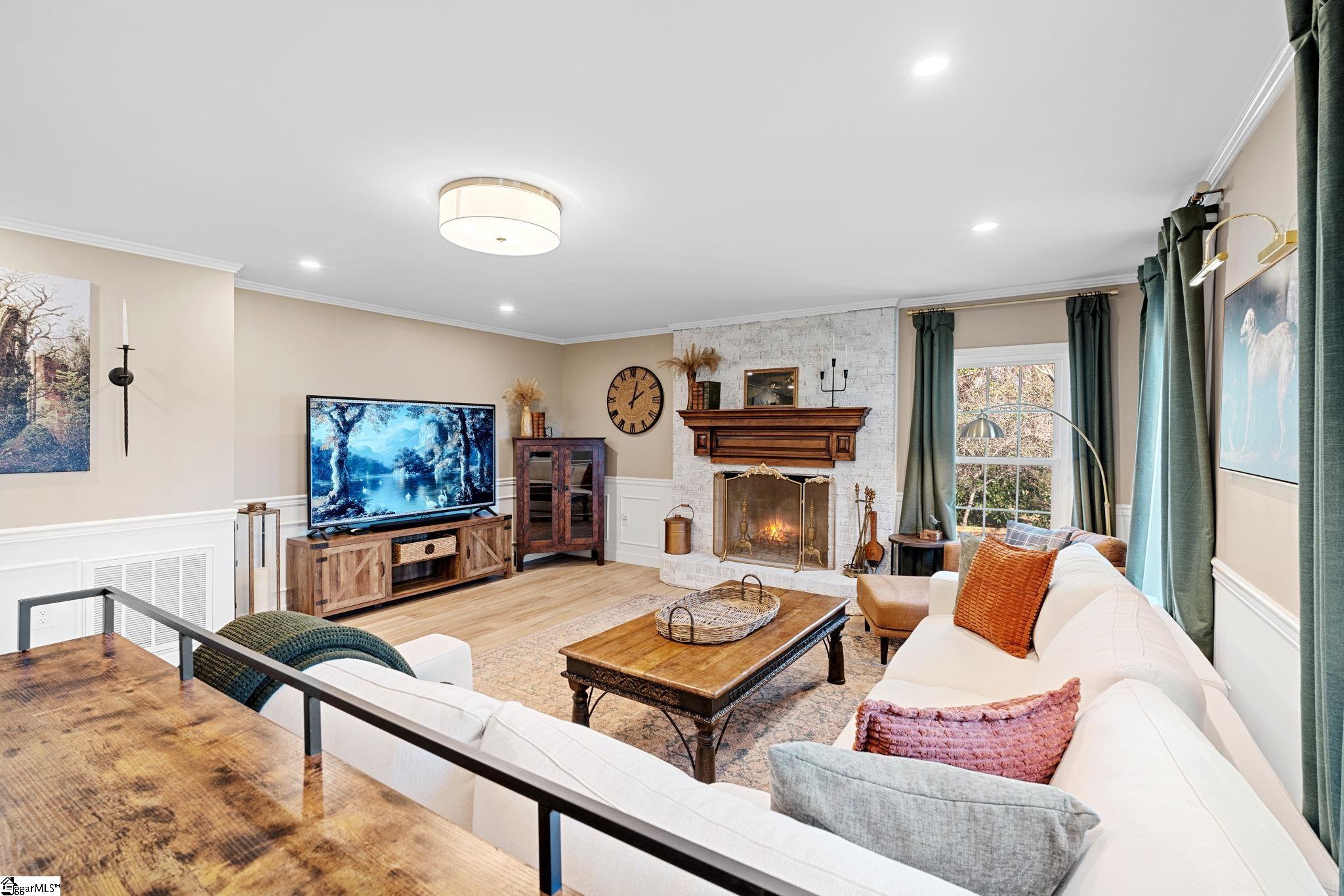 All-brick 4BR/2.5BA plus bonus home on a quiet cul-de-sac .67-acre lot in the Holly Tree golf course & country club community. Extensively remodeled over the last six months, this home features an open-concept layout created by opening multiple interior walls. Updates include smooth ceilings (no popcorn), newer windows, recessed lighting throughout the home and garage, freshly painted kitchen cabinets, new kitchen sink and faucet, convection cooktop, double ovens, added pantry storage, remodeled half bath, new toilets, updated bathroom faucets, new closet organization systems, new interior and exterior lighting, kitchen pendant lighting, sconces throughout, new window treatments, and an updated screened-in porch with adjacent open deck. Additional features include dual staircases, attic storage, Dutch door, tankless water heater, sump pump with dehumidifier, Ring cameras, keyless entry, fenced yard, and garage storage. Desirable Five Forks location with easy access to downtown Greenville and BridgeWay Station.
