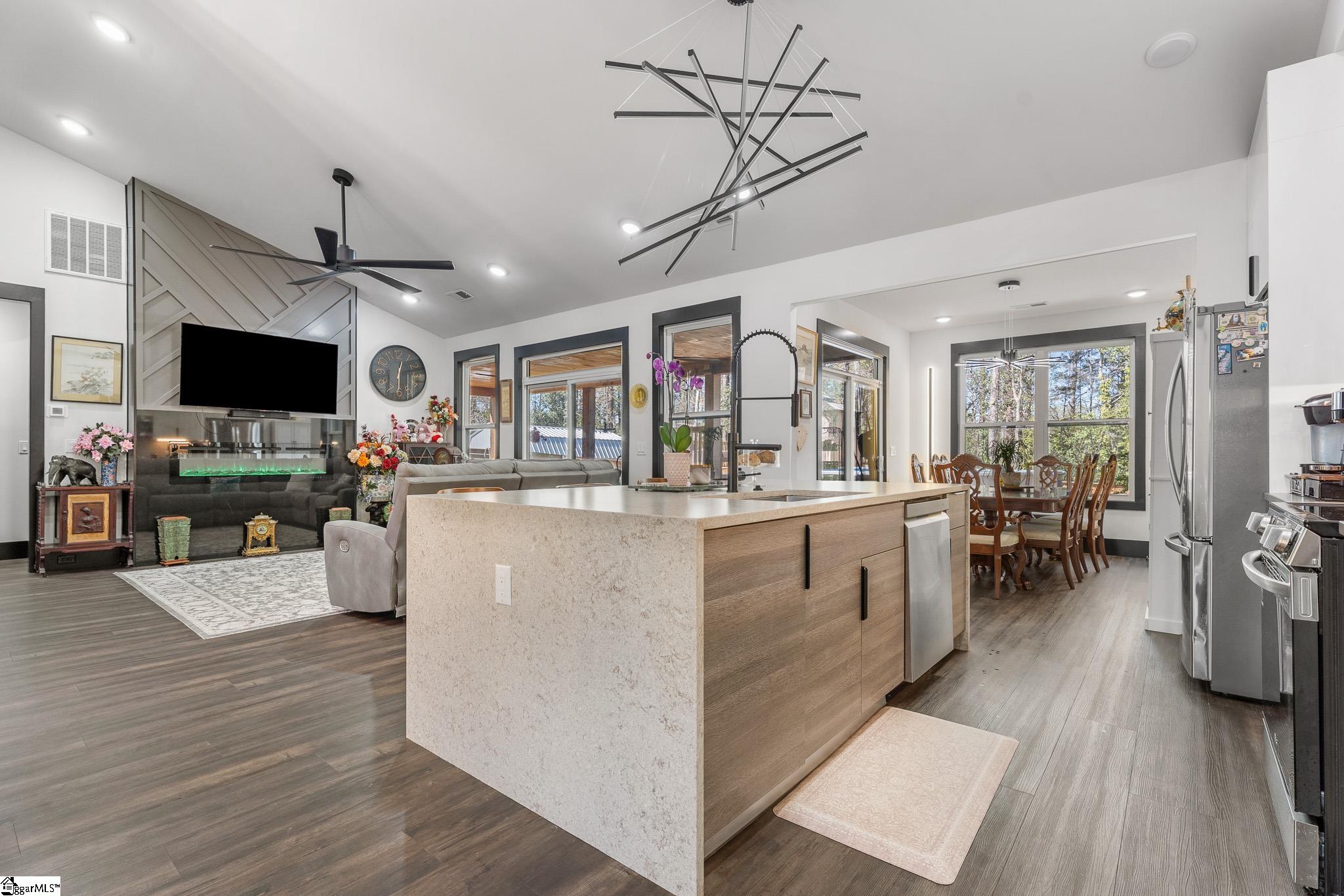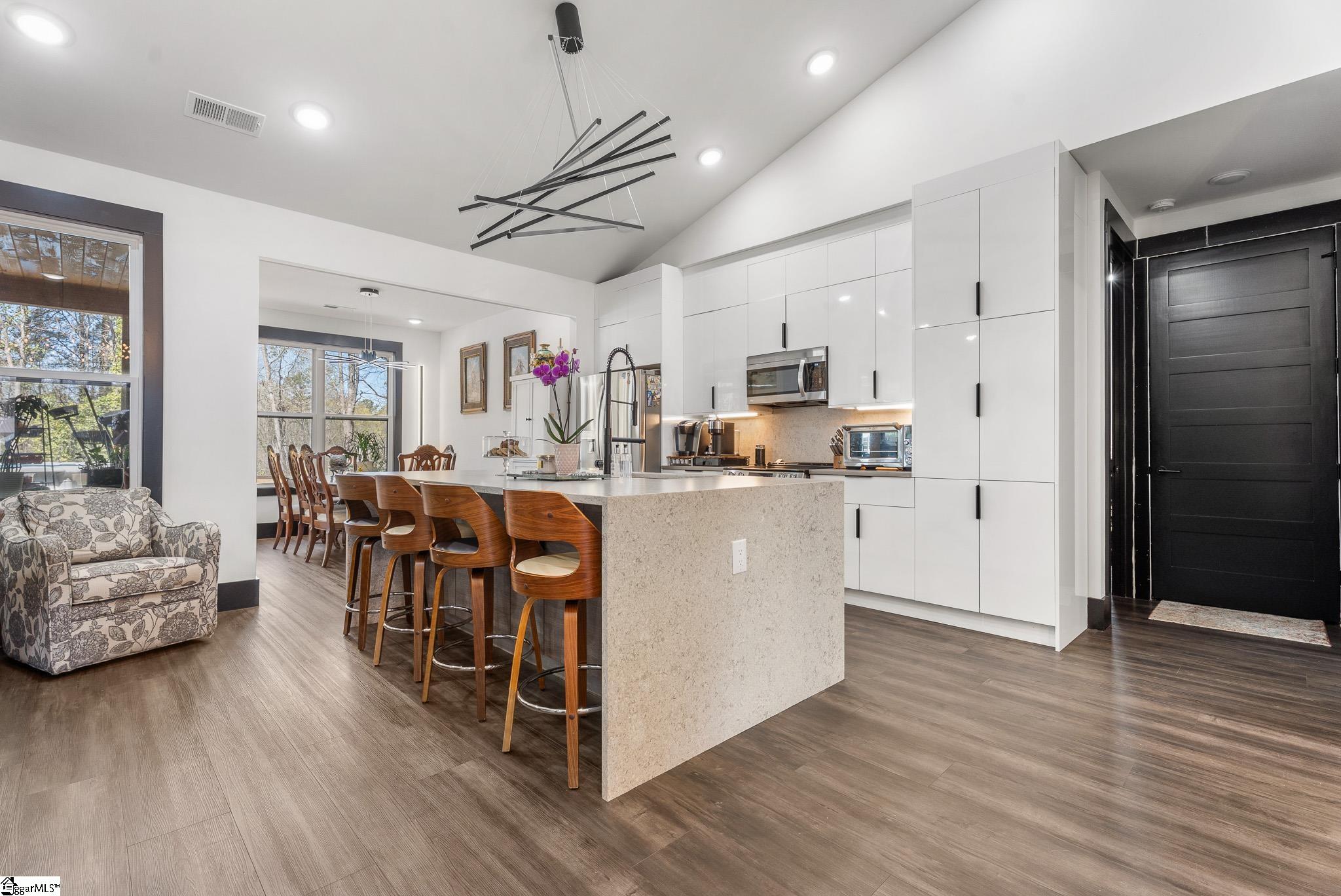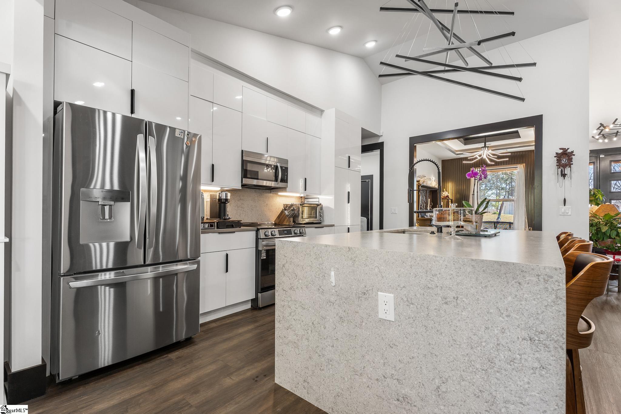 Welcome to this beautifully maintained home offering the perfect blend of comfort, style, and functionality. Designed with an open-concept layout, this home features spacious living areas filled with natural light, creating a warm and inviting atmosphere ideal for both everyday living and entertaining. The kitchen is a true centerpiece, showcasing sleek quartz countertops, a stunning waterfall island, custom cabinetry, stainless steel appliances, and a layout that flows seamlessly into the main living and dining areas. High ceilings enhance the sense of space, while quality finishes throughout add a touch of elegance. This home also offers a dedicated office, perfect for remote work, along with a large bonus room that can easily serve as a fifth bedroom, media room, or flexible living space to fit your needs. Step outside and enjoy a fully fenced property with no HOA and no restrictions, providing privacy and flexibility. The extended concrete driveway offers plenty of parking and convenient access to the backyard. The outdoor space is beautifully landscaped and designed for enjoyment, featuring a well-maintained above-ground pool, perfect for relaxing or entertaining, as well as a spacious two-story shed—ideal for storage, a workshop, or hobbies. The garage is equipped with both heating and air conditioning, adding year-round comfort and versatility. The home is also equipped with internet access and security cameras, offering added convenience and peace of mind. Located just minutes from the lake and close to shopping, dining, and everyday amenities, this home delivers both lifestyle and convenience. Move-in ready and thoughtfully cared for, this is an exceptional opportunity to own a well-appointed home in one of Anderson’s desirable areas.