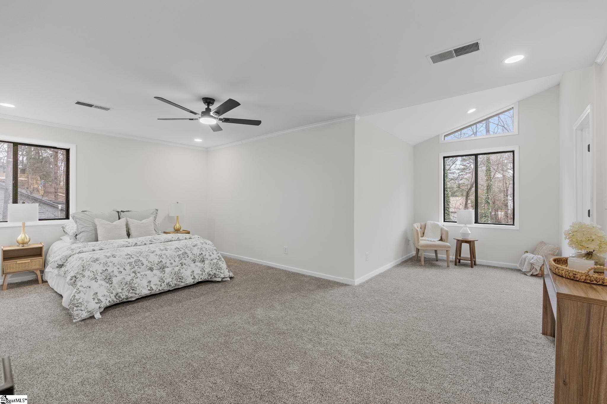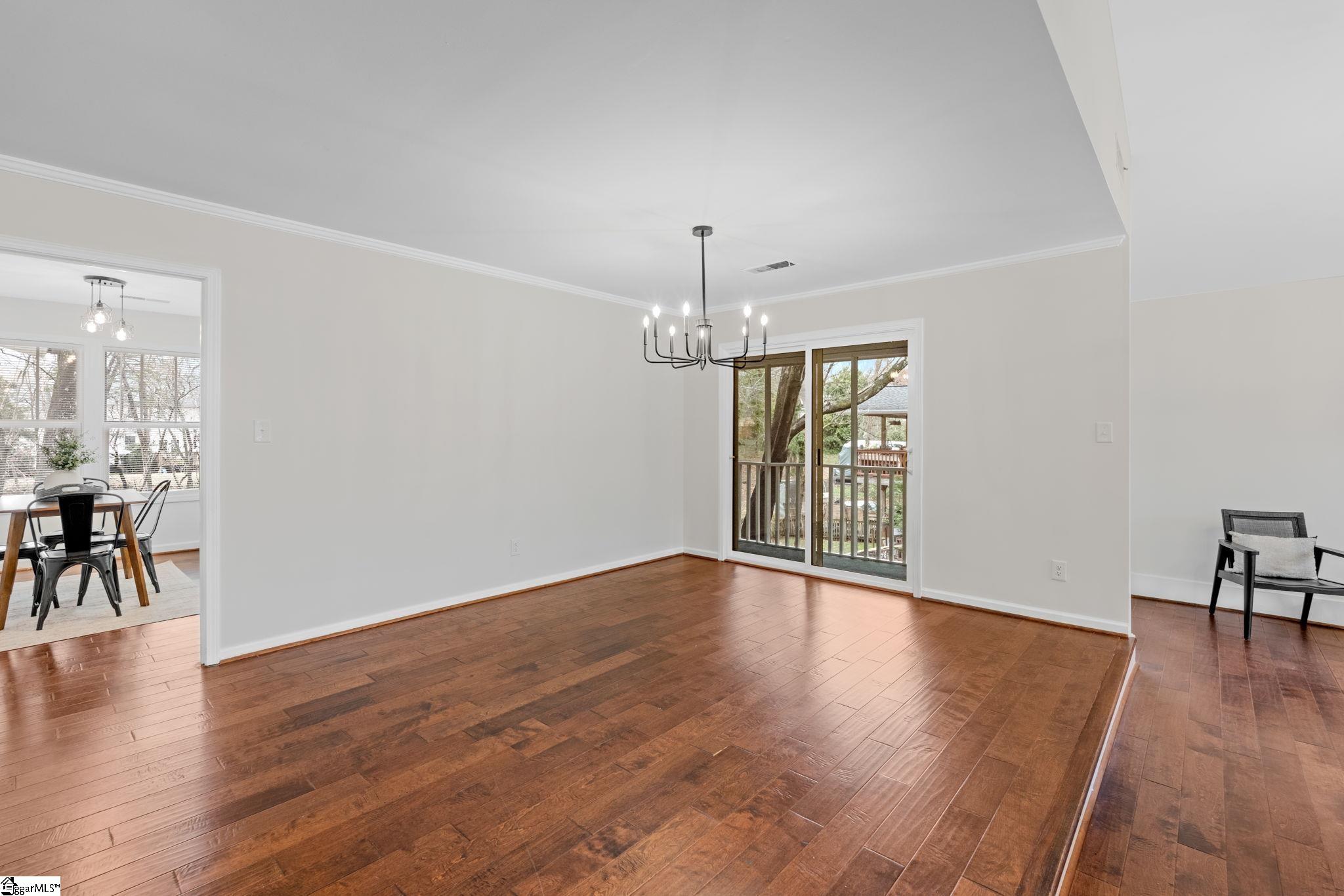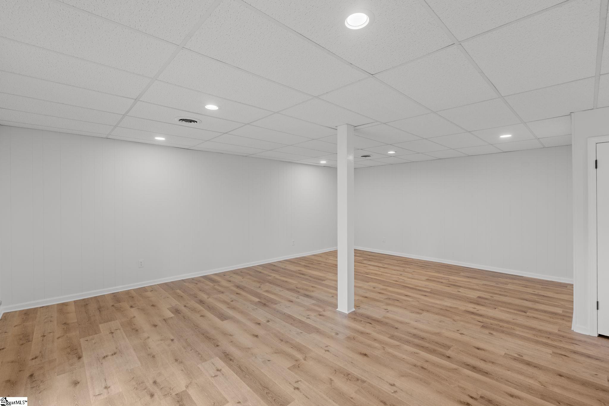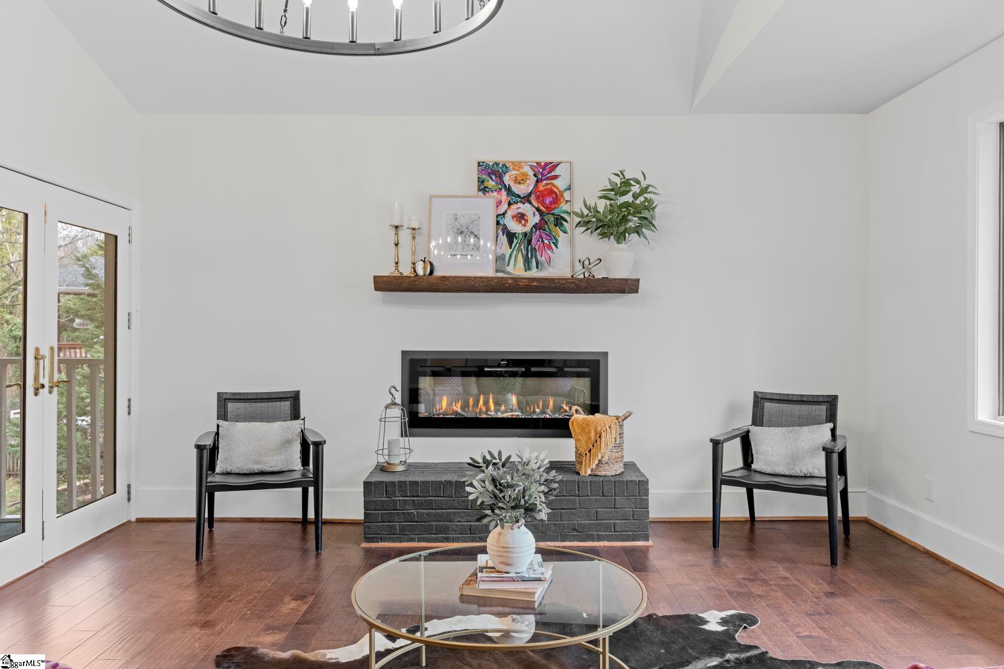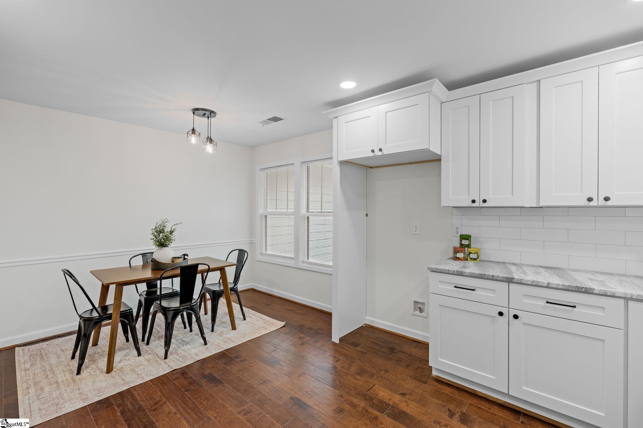 Welcome home to this four bedroom, three bathroom home in the sought after Pebble Creek community, offering a functional layout, updated finishes, and a convenient location. The main level features an open living room with vaulted ceilings, large windows that provide abundant natural light, hardwood flooring, and a modern fireplace. The living space flows seamlessly into the dining area with direct access to a screened porch. The fully remodeled kitchen includes granite countertops, new stainless steel appliances, updated cabinetry, and ample workspace with a clean, modern design. The primary suite is located on the main level and features a double sink vanity with granite countertops, a spacious linen closet, and a walk in tile shower. An additional bedroom and a full bathroom with modern tile and a tub shower combination complete the main floor. The walk out basement provides additional living space with two bedrooms, a full bathroom, and a bonus room with a built in bar. Sliding glass doors lead to the back deck and fenced backyard with a fire pit, mature trees, and a small creek located behind the property. Conveniently located approximately 15 minutes to downtown Greenville, downtown Greer, and downtown Travelers Rest, with easy access to shopping, dining, and everything the Upstate has to offer.