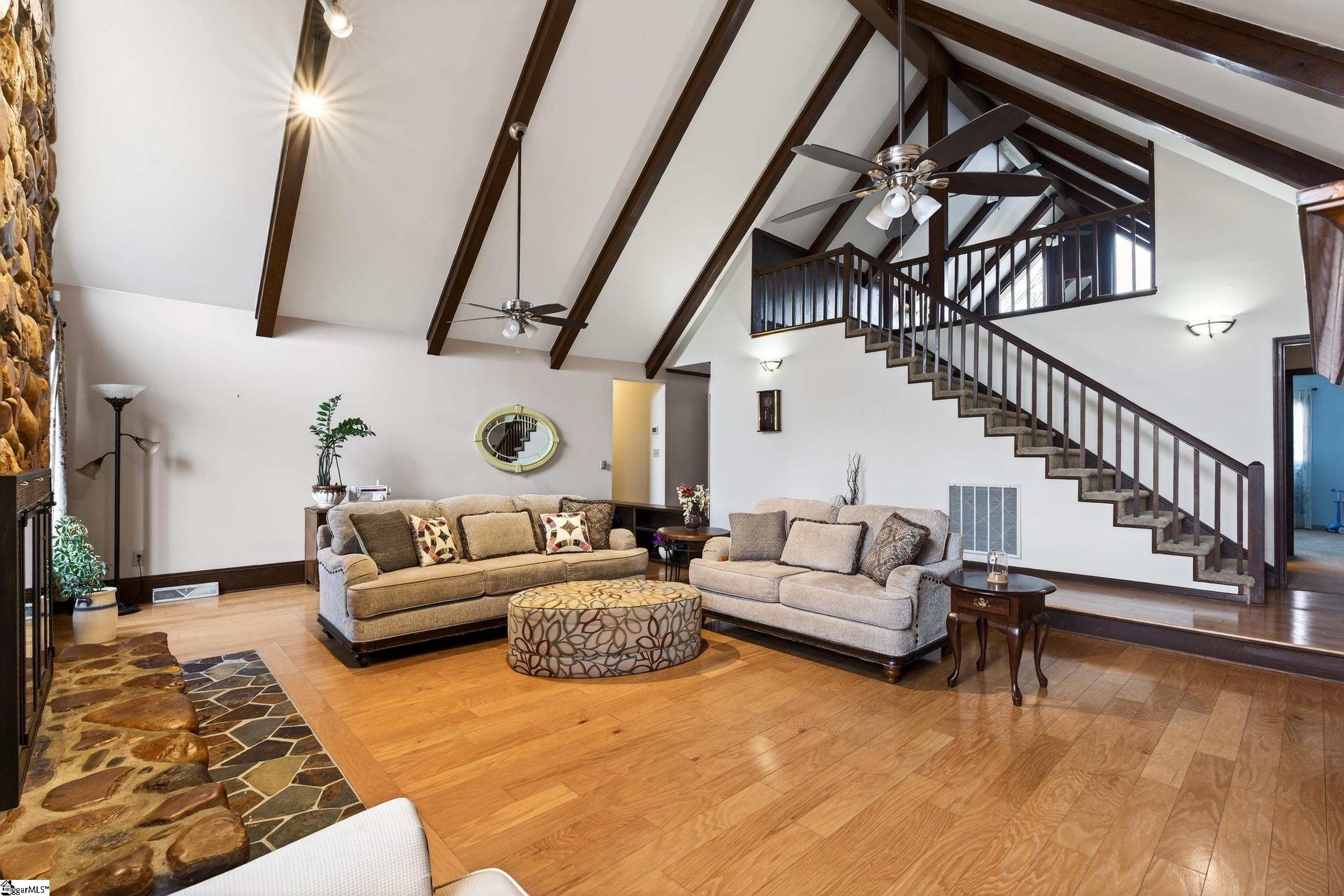 NO HOA!! USDA eligible! Peaceful rural living with quick access to the Upstateās top cities, shopping, and recreation! Set on 3 ACRES in an award-winning school district, this one-of-a-kind property delivers peaceful country living without sacrificing convenience. The home is also within walking distance of the Stoneybrook Neighborhood Fishing Lake and is surrounded by large lots while backing up to a tree line for privacy, beautiful views of farmland in front, and a true sense of retreat. Inside, the home features stunning REAL WOOD beams on vaulted ceilings, solid wood doors, and a dramatic 8-foot-wide TOWERING STONE FIREPLACE with a nostalgic cooking grate, matched by a stone wall in the foyer. The sunken living room, oversized loft, country-style eat-in kitchen, and formal dining room just off the kitchen create a layout that is both inviting and functional, all filled with natural light. The kitchen boasts real GRANITE countertops, not cultured granite, along with a new refrigerator and dishwasher, as well as an Insta-Hot water heater for endless hot water. ALL APPLIANCES INCLUDED! The home includes dual primary bathrooms, one with a vintage sunken tub and the other full baths featuring tiled walk-in showers, plus a large laundry room with a mud sink. Two new ceiling fans were added in the loft, the attic has newly added 8ā of blown insulation and is mostly floored for storage. The converted garage adds 400 square feet of heated and cooled living space. Outdoor living is equally impressive, with a deck off the massive primary bedroom and a large custom deck off the dining room that wraps around the 15×24 SALTWATER POOL. The courtyard features a beautiful stone wall, while flowering bushes, mature trees, and landscaped flowerbeds line the driveways and grounds and return in full bloom each spring. Multiple fruit trees including apple, cherry, and peach are already planted. The property has two driveways, one leading to the courtyard and the other providing direct access to the large outbuilding at the back of the acreage. There is a BARN and TWO FENCED PASTURES for livestock, chicken coop and rabbit cages, a WORKSHOP with electricity and work benches, and a separate storage shed that is wired for electricity. Major updates include a NEW ROOF, a fully encapsulated crawlspace vapor barrier and all-new ductwork throughout the home, a new HVAC unit, four water spigots added for a total of six, septic tank recently pumped, and cedar siding and both decks are freshly stained. Completing this exceptional property is a 2023-built, fully permitted 30x50x14 OUTBUILDING on a concrete slab with insulation (1,500 sf), two 6-ton energy-efficient heat/air units, a bathroom, kitchenette, two main doors, a 10×12 roll-up door, its own septic system, its own 200-amp electrical meter, and its own water shutoffā perfect for a workshop or business. Could also easily be converted into MOTHER-IN-LAW/GUEST SUITE. In addition, this PRIME LOCATION is just minutes from Greenville, Anderson, Easley, Clemson, Lake Hartwell, and premier shopping and dining, only 6 miles from a welcoming community with coffee shops, restaurants, and a well-equipped park, just 5 minutes to I-85, with Palmetto High School a 5-minute drive and Palmetto Middle School only 8 minutes away.