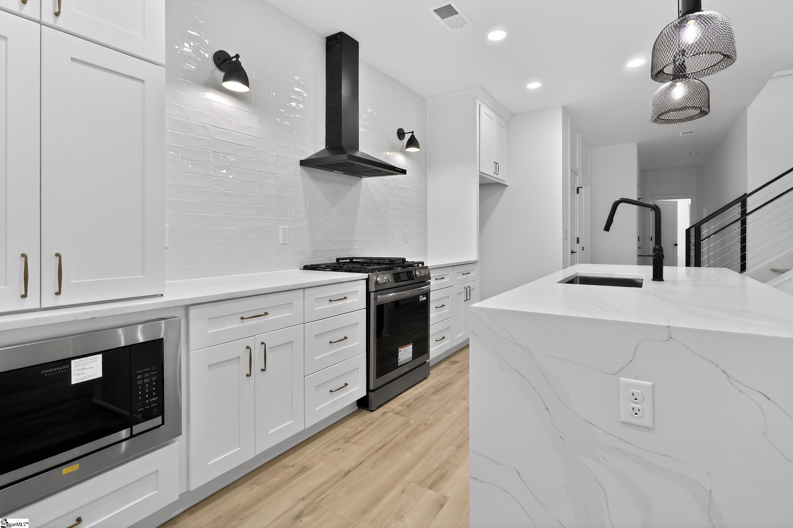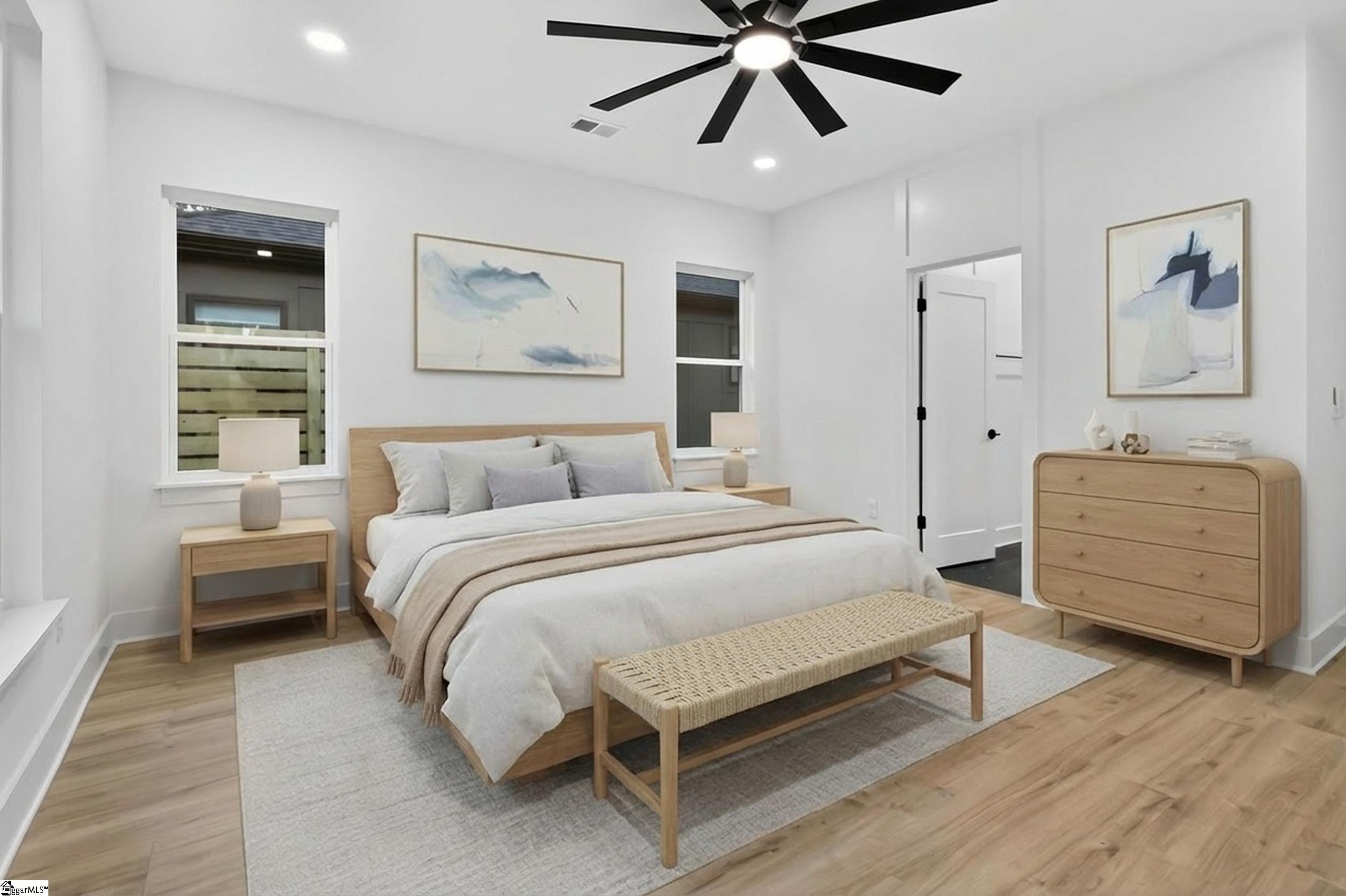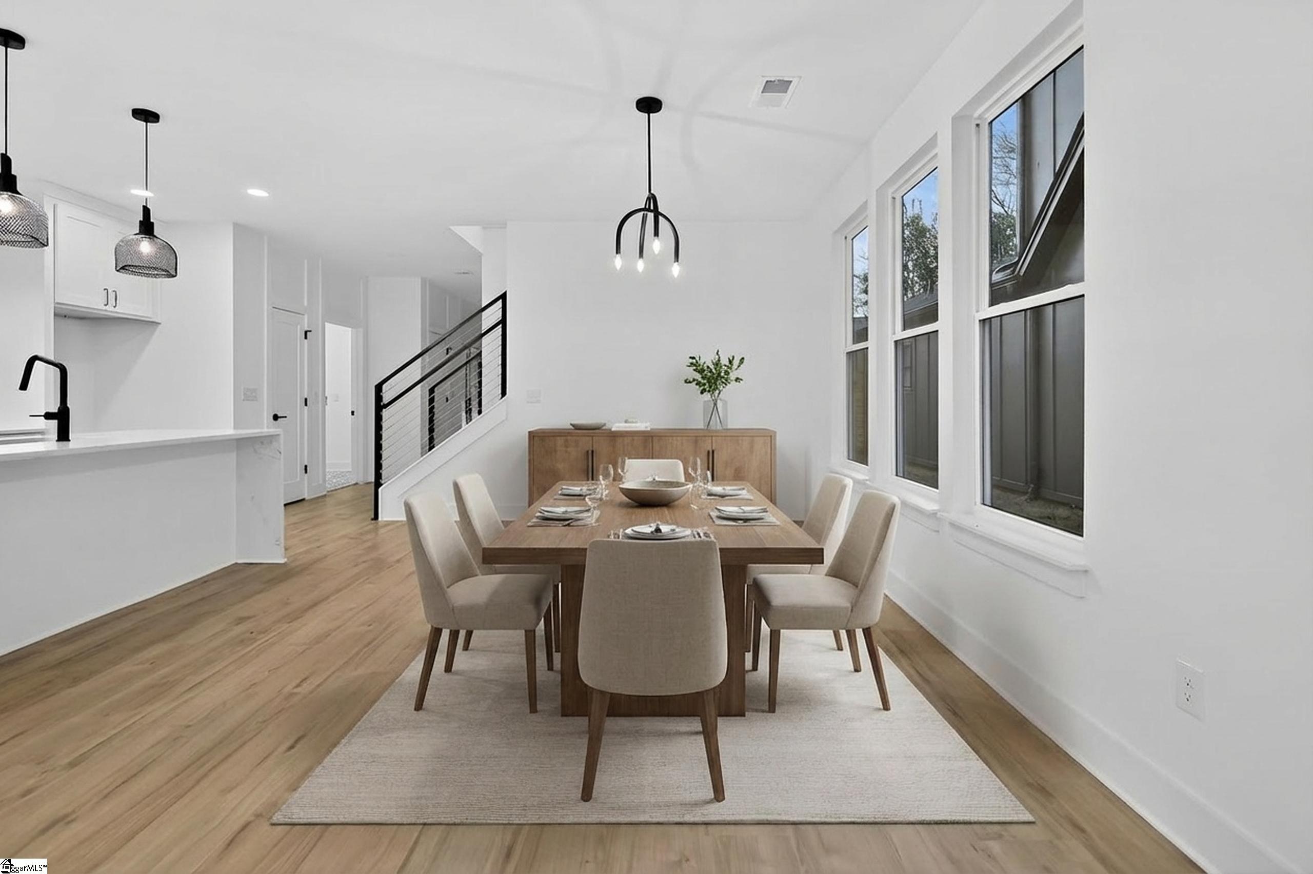 This 3-bedroom, 2.5-bath home features a well-designed open floor plan that allows the main living spaces to flow effortlessly, making it ideal for both everyday living and entertaining. The living area is anchored by a sleek ventless fireplace, adding warmth and visual interest while maintaining a clean, contemporary feel. Abundant natural light enhances the home’s bright and inviting atmosphere. The kitchen connects seamlessly to the living and dining areas, creating a functional and welcoming space. The primary bedroom provides a private retreat with an en-suite bath, while two additional bedrooms offer flexibility for guests, home office use, or additional living needs. Outdoor living is thoughtfully incorporated with a covered patio featuring an outdoor gas fireplace—perfect for enjoying all seasons. An attached one-car garage adds convenience and practicality. With its combination of new construction, modern finishes, and a prime Augusta Road location, this home offers easy access to Downtown Greenville, local amenities, and key commuting routes, delivering a lifestyle that blends comfort, style, and location.*Virtually staging for visual references only.