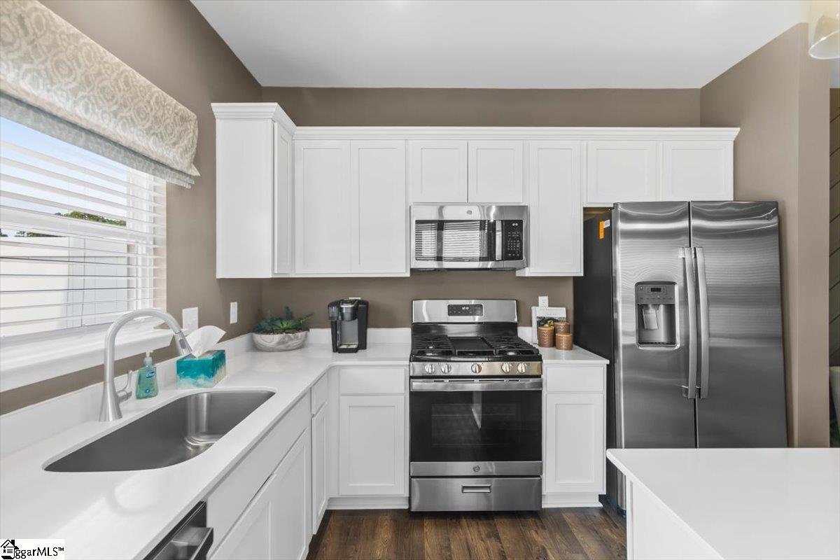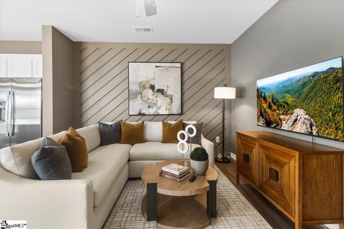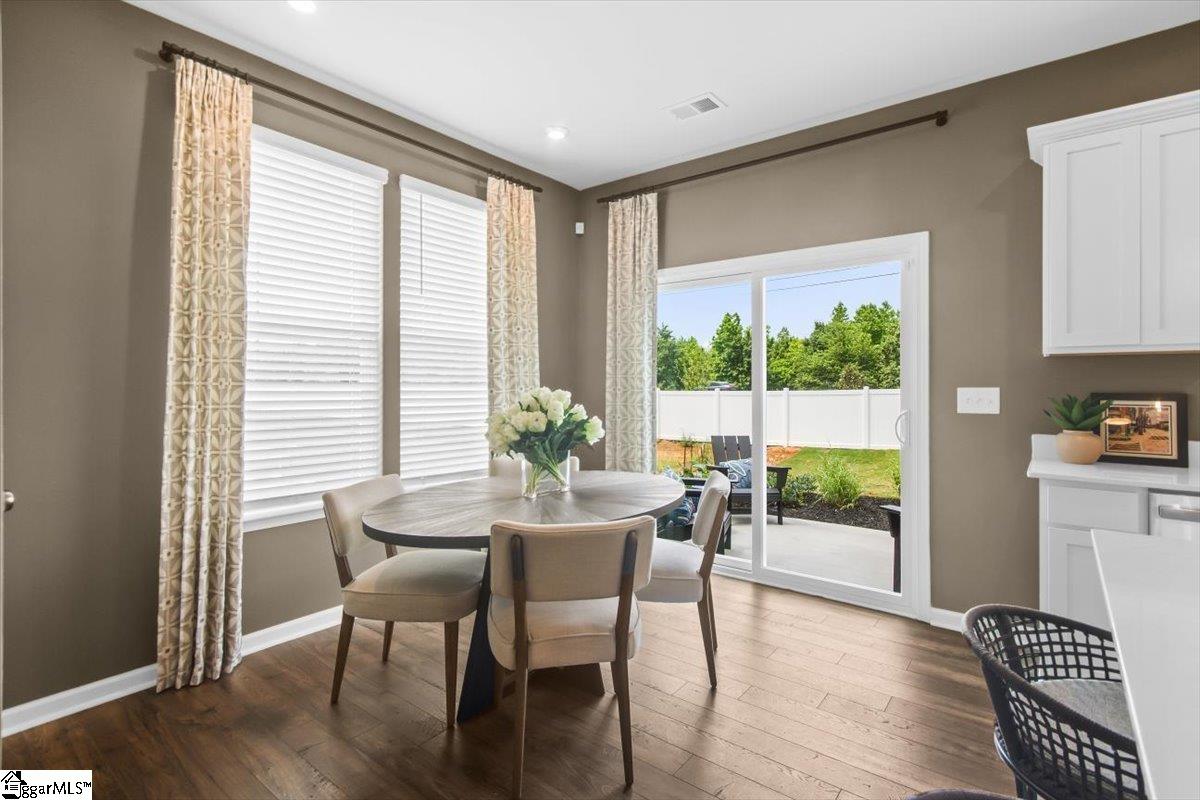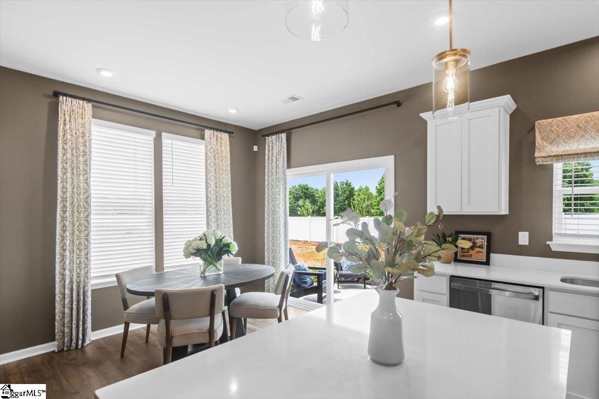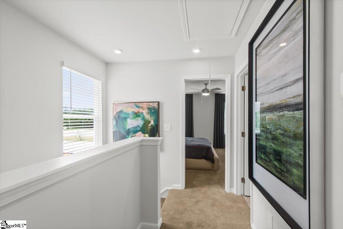 Welcome home to the Amara floor plan at Gardner Heights! This beautiful end unit townhome is ready for you to make it your own. From the moment you arrive, you’ll notice the charming neighborhood setting, thoughtfully designed landscaping, and an inviting feel throughout the community. This spacious 3-bedroom, 2.5-bath home offers an open-concept layout that fills the kitchen, dining area, and living room with natural light. As you enter through the front foyer, guests are greeted by a welcoming entryway complete with a coat closet and a conveniently located half bath. The kitchen features stunning quartz countertops, soft-close cabinetry, and stylish pendant lighting, complemented by beautifully finished flooring. You’ll also appreciate the generous pantry and ample cabinet space for easy, organized storage. The main floor also boasts a dedicated dining area and spacious living room, creating a seamless set up for entertaining or for easy everyday living. Upstairs, the large primary suite offers a serene retreat with a beautifully appointed ensuite featuring a walk-in shower with glass doors and a double-sink vanity. Two additional bedrooms at the front of the home enjoy great natural light. A full hall bath with a tub and a nearby linen closet adds comfort for family or guests, while the upstairs laundry area offers easy access for added convenience. The bathrooms and laundry room also include durable ceramic tile flooring for added refinement. This home is MOVE-IN READY, complete with cordless blinds and a full suite of GE stainless steel appliances—including a dishwasher, gas range with a flat-top griddle, a side-by-side refrigerator, and a washer and dryer. Step outside to your private backyard with a large paved patio, perfect for grilling and relaxing. The community amenities at Gardner Heights area a true highlight, offering a covered pavilion with picnic tables and benches, two fire pits surrounded by Adirondack chairs, a swing set, a dog park, and sidewalks throughout the neighborhood. Conveniently located minutes from I-85, GSP Airport, BMW, Michelin, the BMW Battery Plant, FiveForks, and Downtown Woodruff, Reidville, and Greer, this location provides the perfect combination of serenity and convenience. Situated in Spartanburg County, you’ll enjoy lower taxes and proximity to local favorites like the Spartanburgers baseball team. The HOA covers lawn maintenance and landscaping, giving you more time to enjoy your evenings and weekends. This Stanley Martin community is USDA eligible. Stop by the model home to learn more and to see firsthand just how beautiful Gardner Heights truly is. We can’t wait to welcome you—come visit, explore the neighborhood, and stay a while!