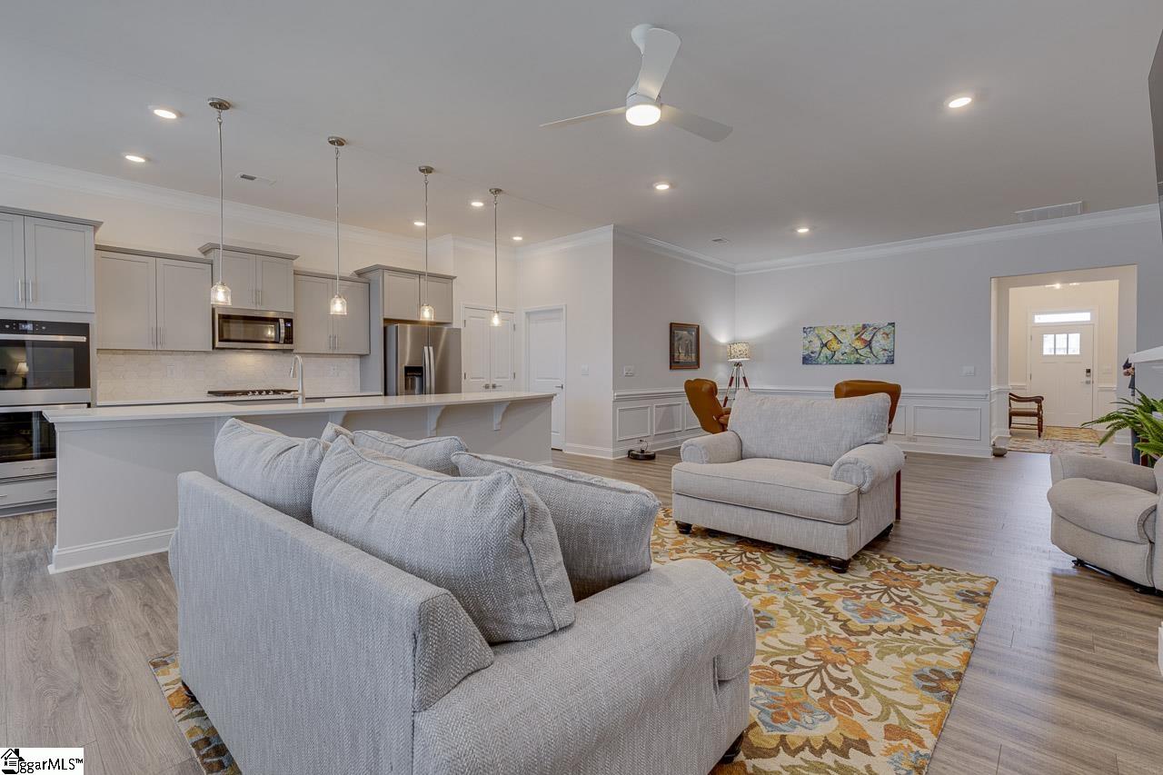 Completed in 2023, this thoughtfully designed three bedroom, two bath, Craftsman-style Ranch offers a modern take on single-story living. From the moment you arrive, there’s an easy charm to the home. Stepping inside, the foyer creates a gentle introduction to what lies beyond. As you move into the main living space, the home opens up in a way that feels both spacious and comfortable, with each area flowing naturally into the next. The living room, dining room, and kitchen are all connected, creating a central hub that feels just as suited for quiet evenings as it does for gathering. Enjoy cozying up with a good book or your favorite show in front of the gas log fireplace in the living room. In the kitchen, you will find a space that balances both style and function. Quartz countertops offer a clean, elevated look, while the breakfast bar invites casual mornings, quick lunches, or lingering conversations over coffee. With modern appliances, ample cabinetry, and a convenient pantry closet, everything has its place, making daily routines feel effortless and organized without sacrificing beauty. Tucked away for added privacy, the primary suite feels like a true retreat, offering a spacious bedroom, dual vanities, and a walk-in closet that keeps everything within easy reach. One of the secondary bedrooms also features its own en-suite bath, creating a comfortable option for guests or extended living arrangements that feels both practical and accommodating. Throughout the home, there’s a sense of balance, stylish but still approachable, and designed with everyday living in mind. A two-car garage adds convenience, while the overall layout reflects a home that feels comfortable from the start. Schedule your showing today!