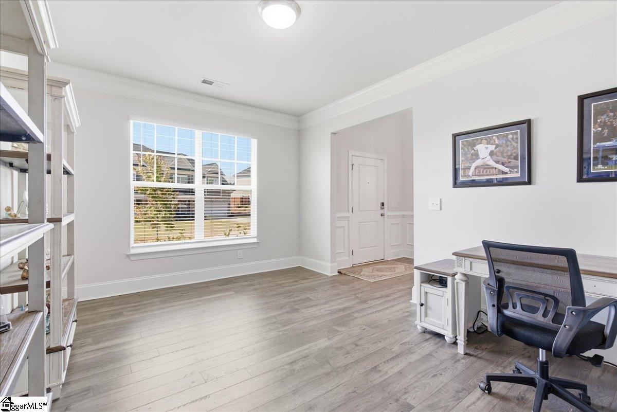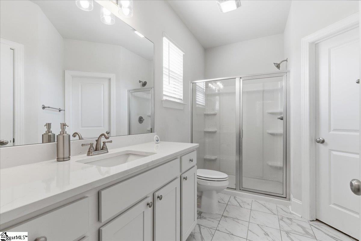 Welcome to 173 Juniper Hill Drive – a stunning Stanley Martin home just 3 years young, located in one of Powdersville’s most desirable and quiet communities. This spacious 5-bedroom, 4.5-bath home offers the perfect blend of modern design and everyday functionality. From the moment you step inside, you’ll notice the tall ceilings and open layout that create a bright and inviting atmosphere throughout. The heart of the home is the expansive kitchen, featuring a large island, gas range, and a generous breakfast area—ideal for both everyday living and entertaining. A dedicated office space on the main level provides flexibility for remote work or study. The first floor also includes a private bedroom with its own ensuite bath, making it perfect for guests or a comfortable in-law suite. Upstairs, you’ll find a massive bonus room offering endless possibilities for a media room, playroom, or additional living space. The second-floor primary suite is a true retreat, complete with a spa-like bathroom featuring a standalone soaking tub, separate shower, and ample closet space. With plenty of storage throughout and thoughtfully designed living spaces, this home checks every box. Don’t miss your opportunity to own a nearly new home in the highly sought-after Powdersville area.