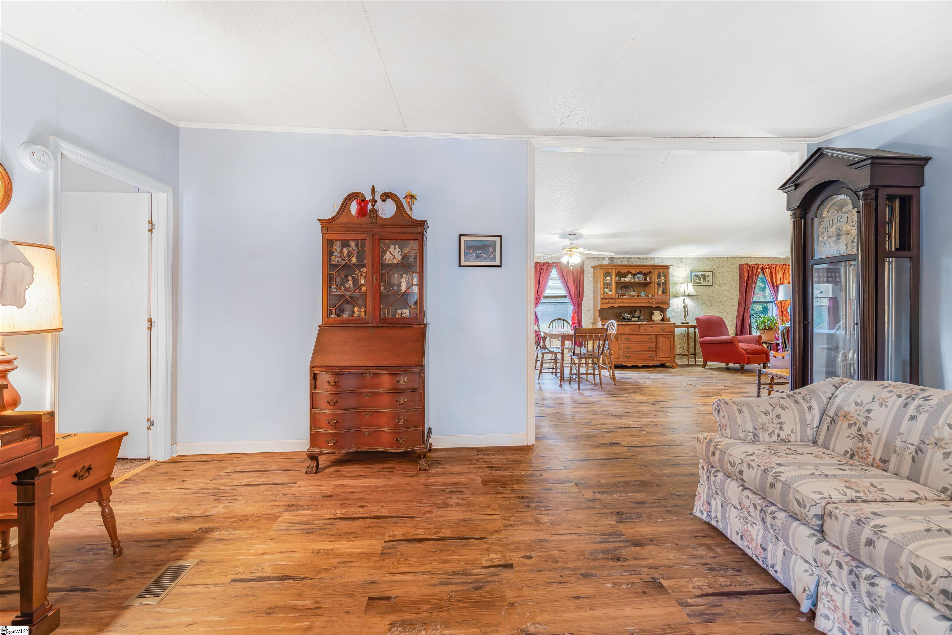 Welcome to quiet country living in the charming town of Liberty. This inviting home offers a peaceful setting with a spacious covered front porch – perfect for relaxing, reading your favorite book, or sipping your morning coffee. Situated on approximately on 1 acre this de-titled manufactured home, built in 2000, provides 2,002 sq ft of comfortable living space. The open floor plan features both a main living room and a cozy den, complete with a gas-log fireplace for added warmth and character. With four bedrooms and two full bathrooms, the home provides generously sized rooms throughout. The primary suite includes a versatile adjoining room–ideal for a home office, nursery, or hobby room-along with a large walk-in closet. Three additional bedrooms provide flexibility for family, guests, or additional workspace. A walk-in laundry and combined pantry area provide ample storage and everyday convenience. Incredible Convenience: Minutes from Liberty Hight School; located 2 minutes from Hwy 123 and 5 minutes to US-178 and downtown Liberty; Downtown Easley is 15 minutes away and less than 30 minutes to Downtown Greenville; Clemson is 11 miles away, along with Southern Wesleyan, and Tri-County Tech.; about 25 minutes to I-85; centrally located between Atlanta, GA and Charlotte, NC, making it ideal for both quiet living and easy travel access. Property is 45 minutes to Greenville Airport and 10 minutes to Pickens County Airport. An Industrial Commerce Park is under construction only a few minutes away between Hwy 123 and State Road 27 (Ruhamah Road). For outdoor lovers, this location puts you close to Lake Hartwell and Lake Keowee and the hiking trails of the Blue Ridge Mountains and Table Rock State Park. This is country living at its best with endless potential. Property may be eligible for USDA.