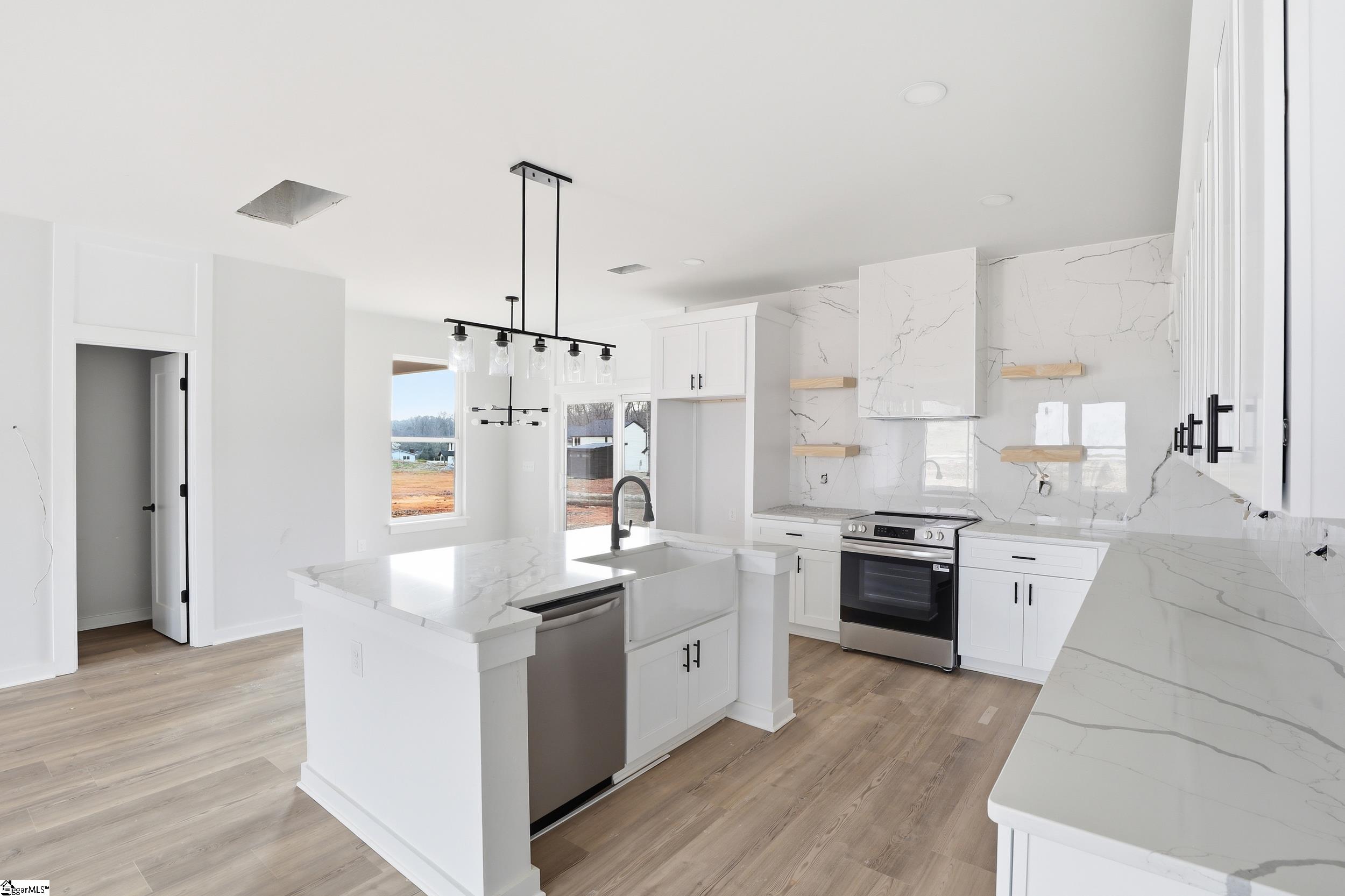 Modern Design, Thoughtful Layout & Seller Concessions — Welcome to 178 Buncombe St Discover a home that perfectly balances style, function, and craftsmanship in the heart of Woodruff. This stunning 2,140 sq. ft. residence offers 3 bedrooms and 2.5 bathrooms, combining high-end finishes with smart design details rarely seen at this price. Step inside and immediately notice the attention to detail: luxury vinyl plank flooring spans the main living areas, while stylish tile in the bathrooms and laundry adds both practicality and elegance. The chef-inspired kitchen is the heart of the home, featuring quartz countertops, a warm wood-look tile backsplash, a large center island, and abundant cabinet space—ideal for entertaining or everyday family life. The inviting living room is perfect for relaxing, highlighted by a cozy ventless fireplace that brings warmth and charm to the space. Upstairs, the owner’s suite is a private retreat with vaulted ceilings, a walk-in closet, and a spa-inspired bathroom featuring a tiled rainfall shower with bench seating. Two additional bedrooms and a full bath provide flexibility for family, guests, or a home office, while the main-level half bath and dedicated laundry room with built-in shelving make daily living effortless. Step outside to enjoy the covered back patio —perfect for summer evenings or weekend gatherings. The attached garage offers extra storage, keeping everything organized and accessible. Built with energy-efficient Low-E windows and durable concrete plank siding, this home combines modern style with lasting quality. Final finishing touches, including mirrors, frameless shower doors, and punch list items, will be completed prior to closing. Located just minutes from downtown Woodruff’s dining, shopping, and community spaces, this home blends modern comfort with small-town charm. With seller-paid closing costs and luxury finishes throughout, 178 Buncombe St is a rare opportunity to own a thoughtfully designed home in one of the Upstate’s most desirable areas.