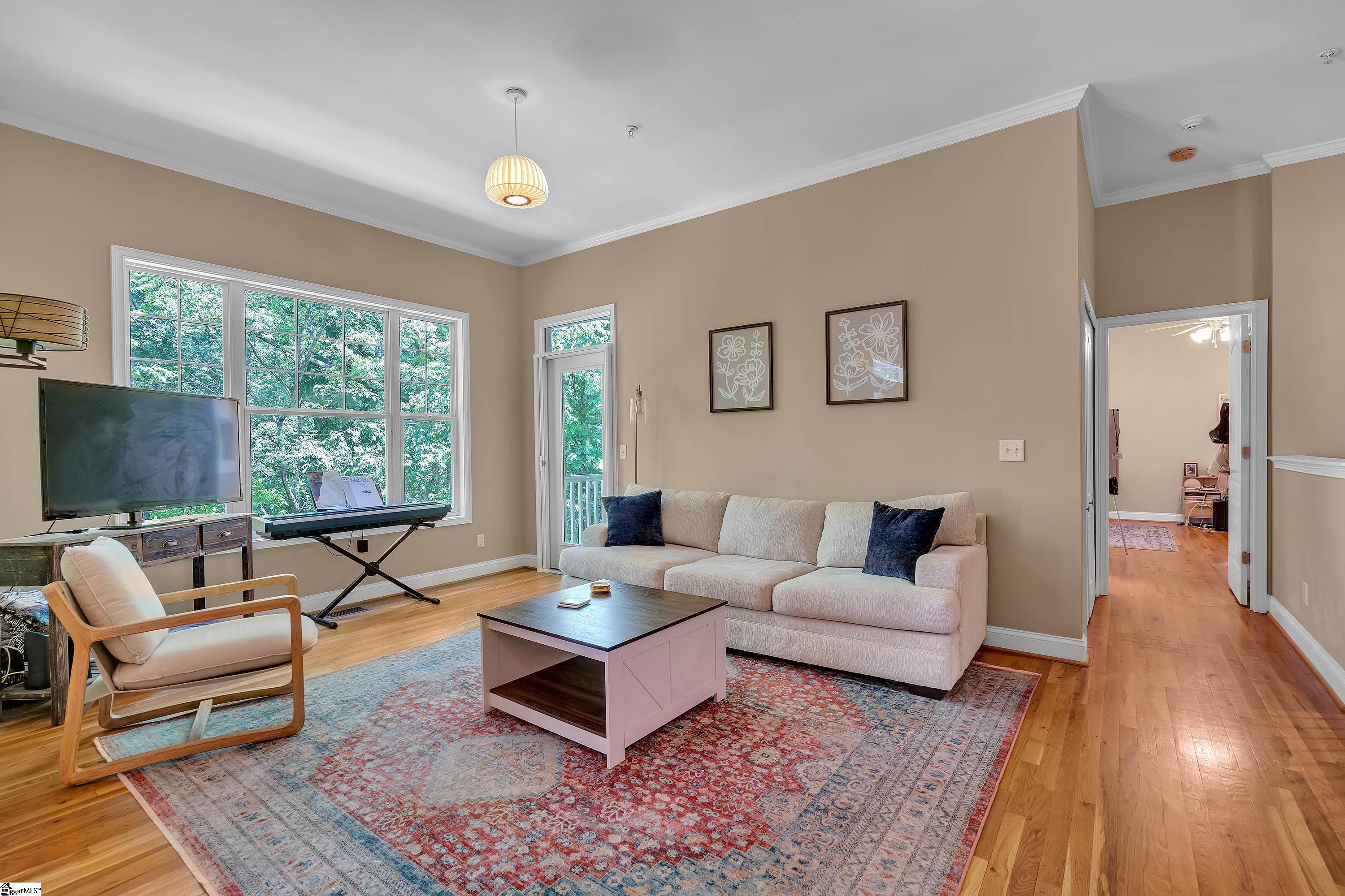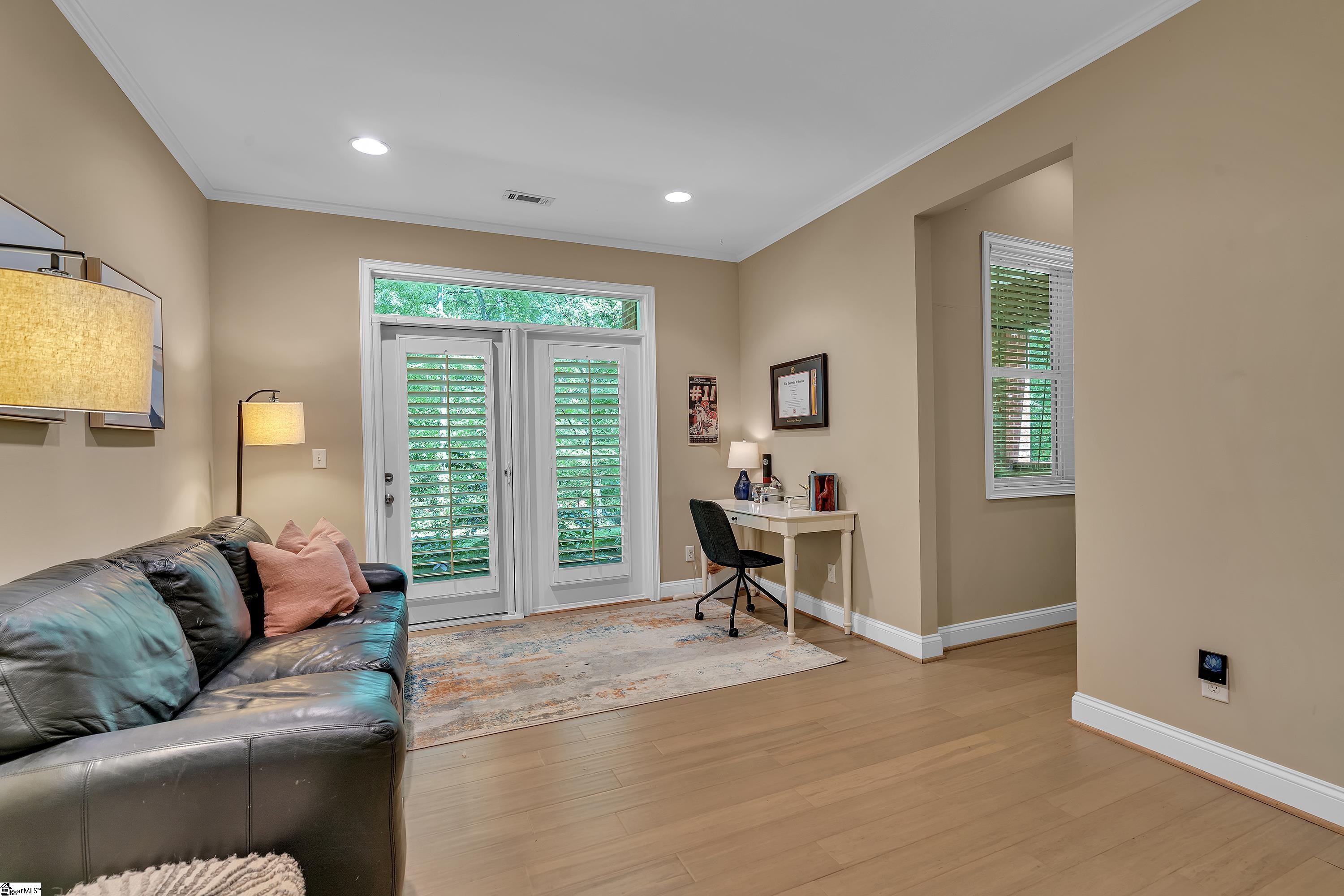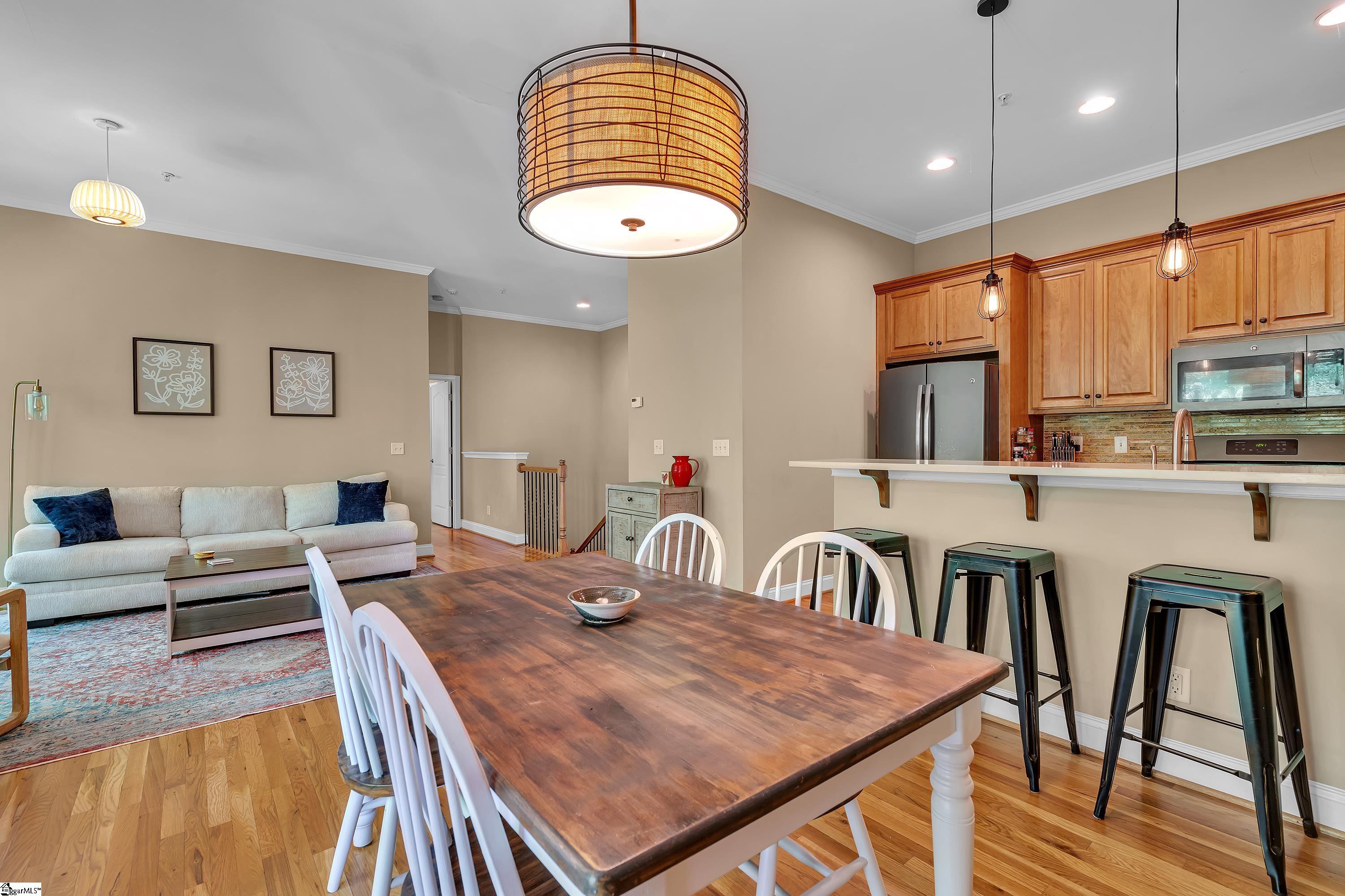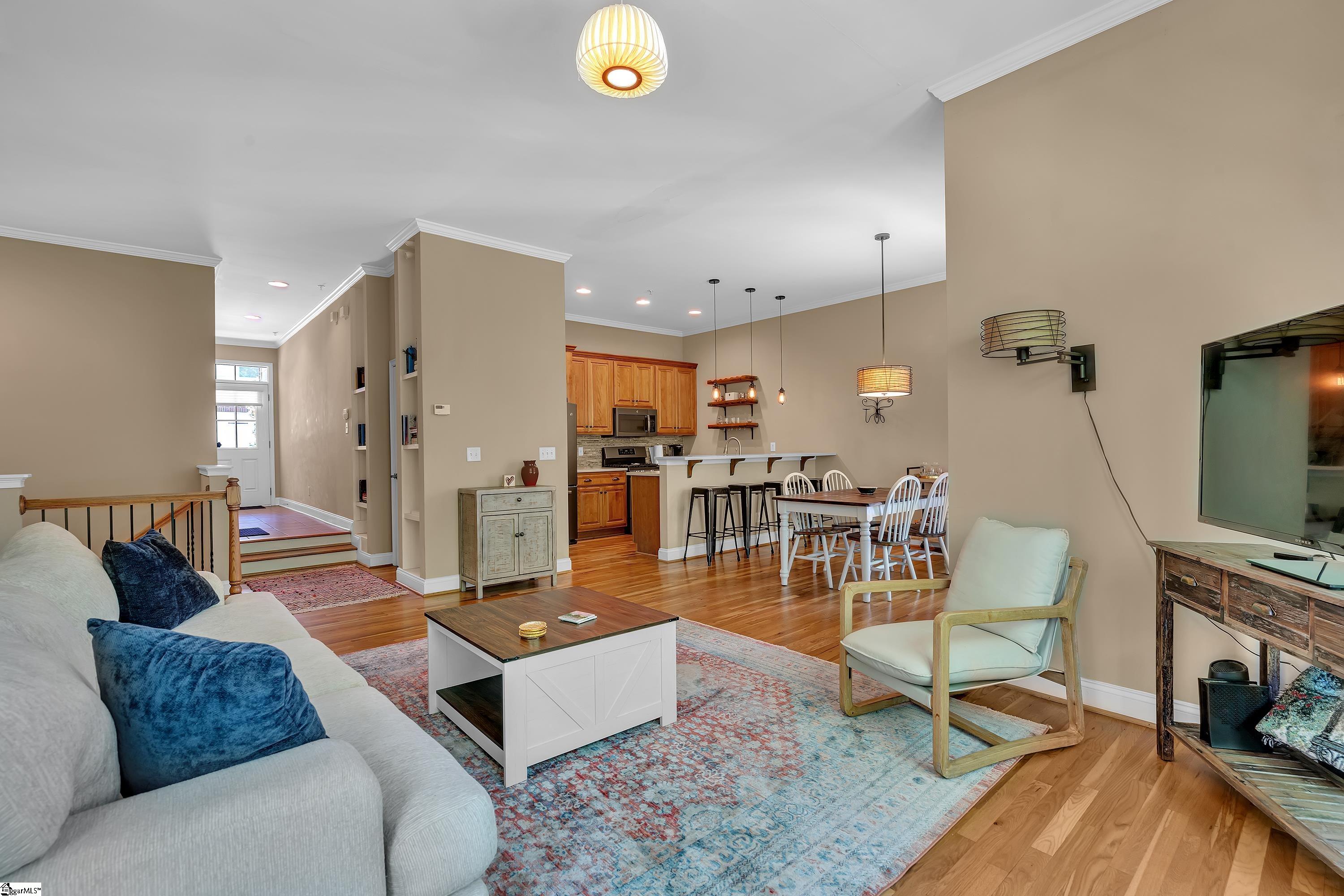 N Main area townhome just minutes from vibrant downtown Greenville! This 3BR/2.5BA home (approx. 1,800 sq ft) features an open-concept main level with a chef’s kitchen, dining area, and balcony for al fresco dining. The primary suite is on the main floor with a private porch, walk-in closet, and en suite bath with separate shower and garden tub. Enjoy easy, no-stairs entry from the attached one-car garage, plus built-ins, plantation shutters, and a half bath. The lower level offers a flexible layout with a light-filled den, two bedrooms, full bath, and abundant storage—ideal for guests, roommates, or a home office. Multiple patios and balconies back to a peaceful park setting- perfect for morning coffee or entertaining. Enjoy the best of low maintenance living in one of Greenville’s most desirable locations.