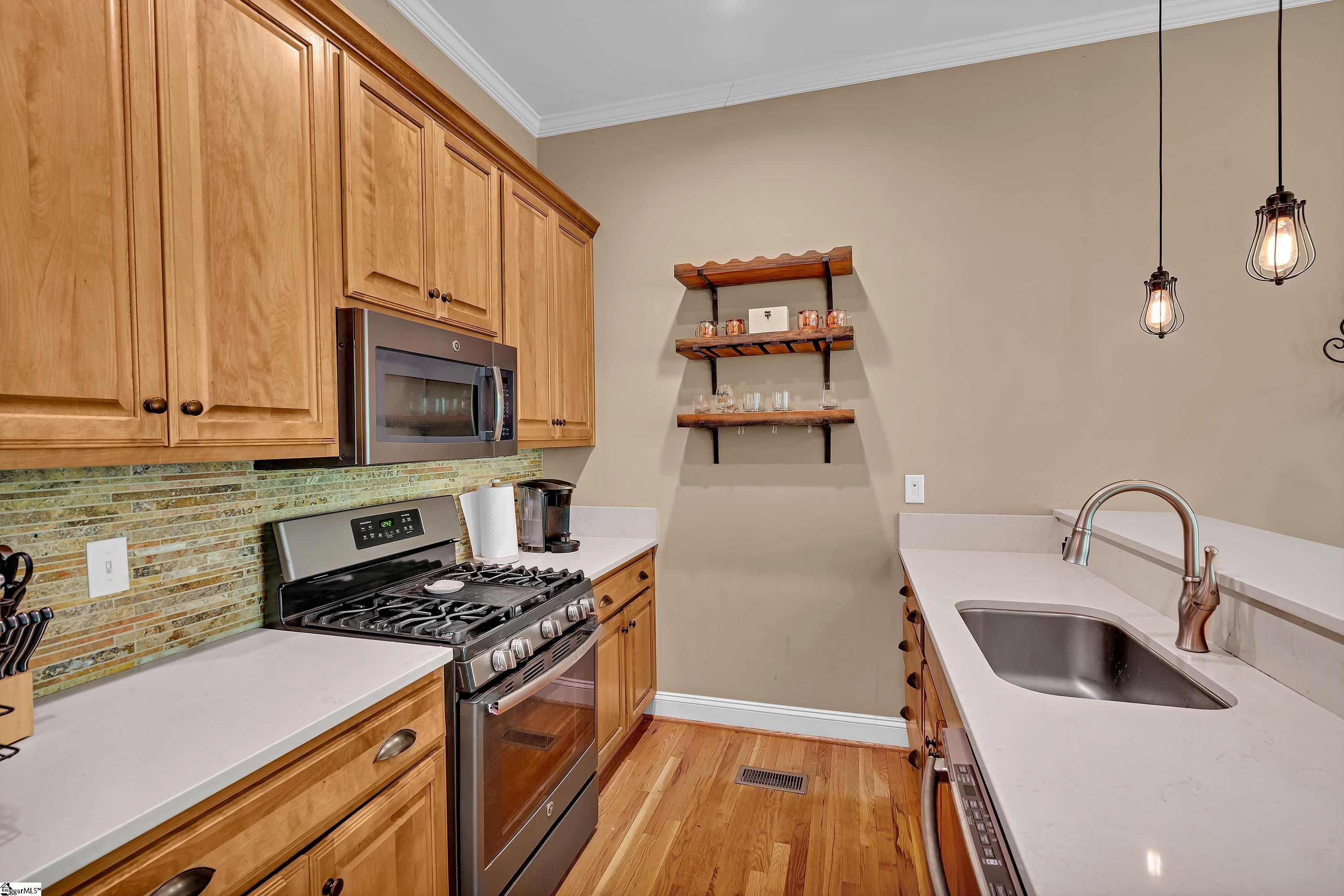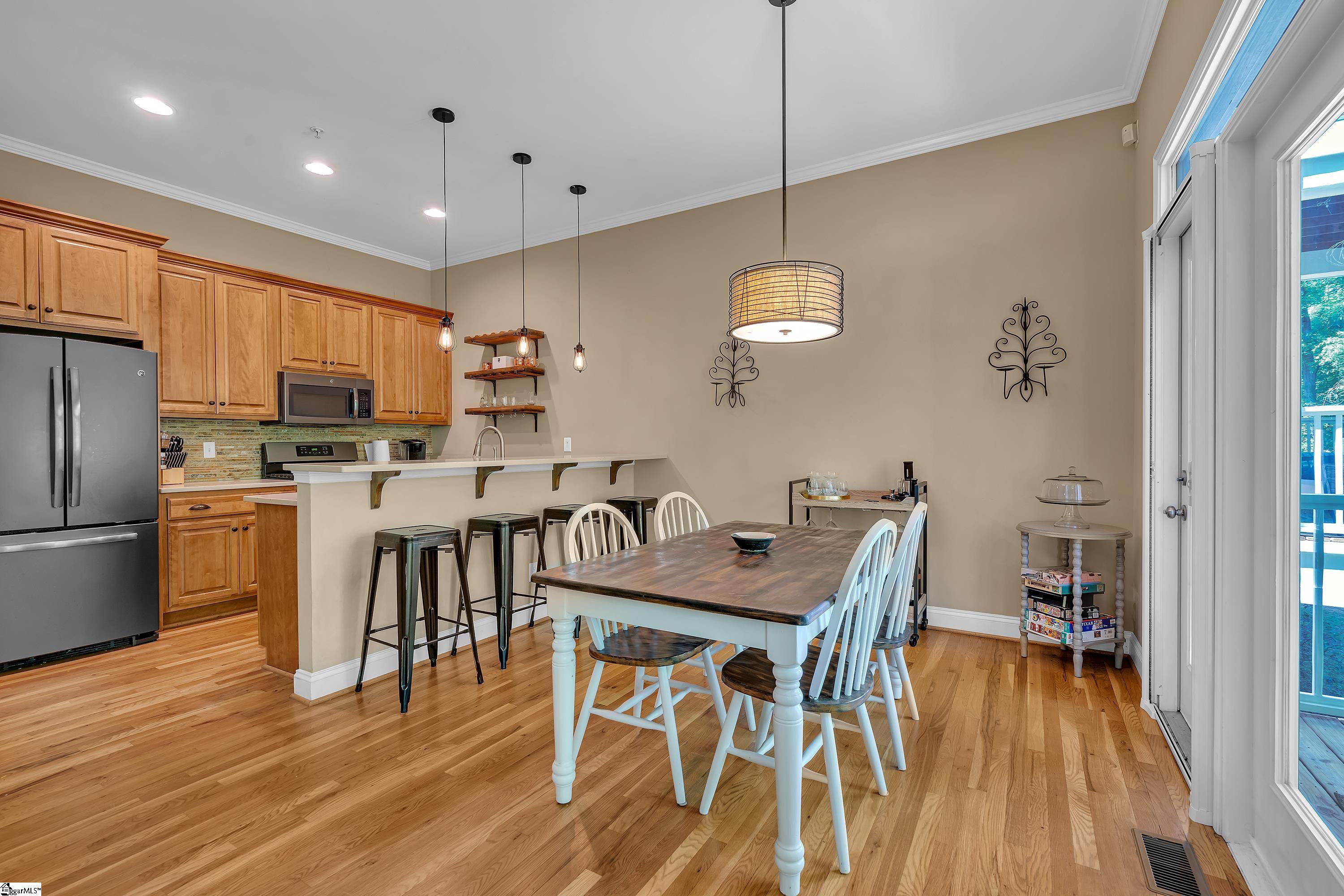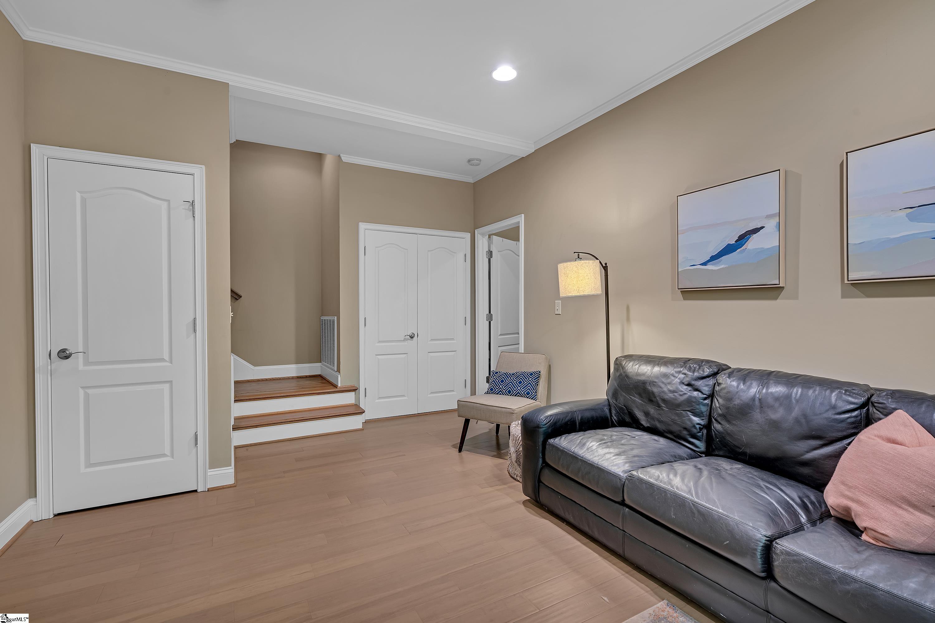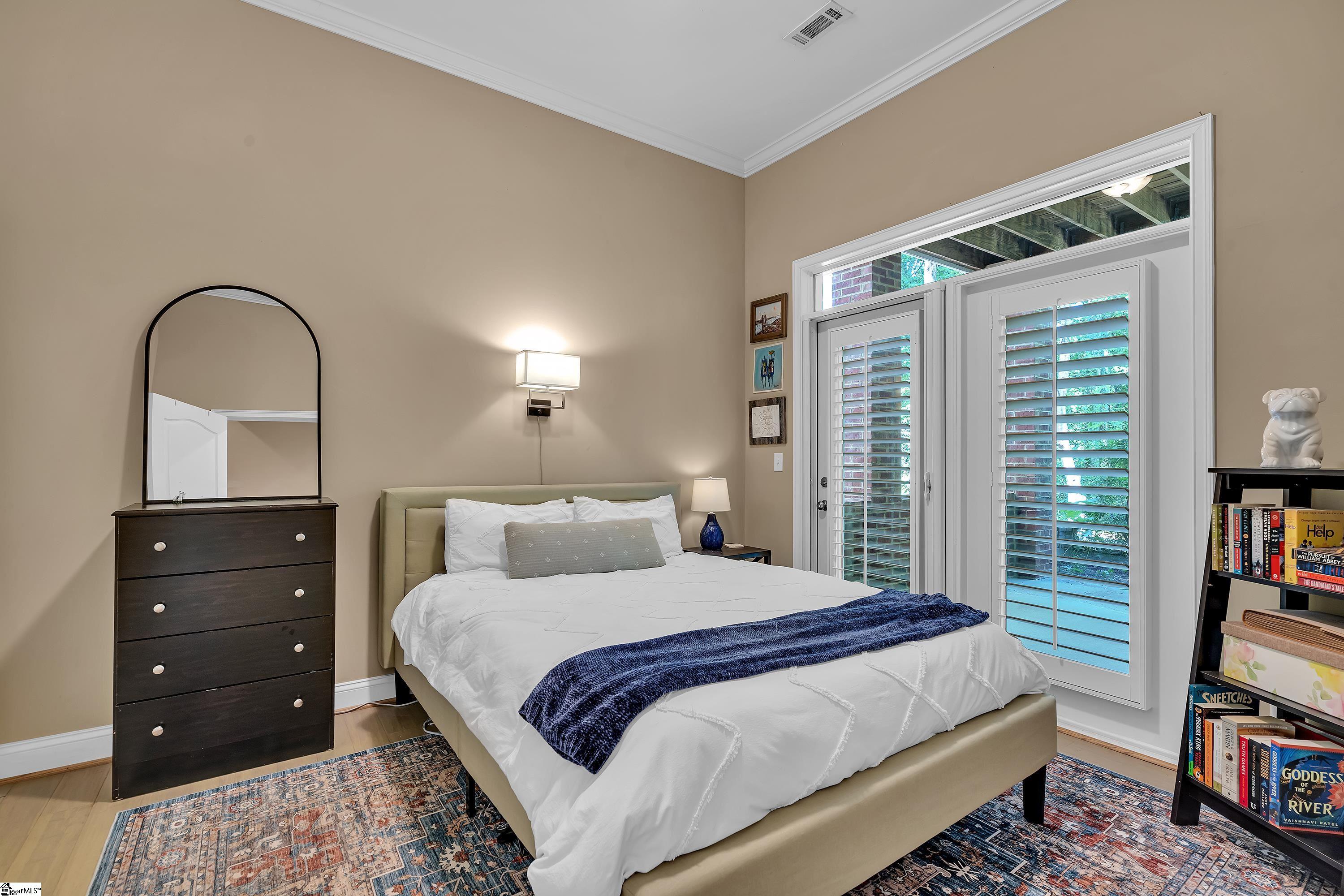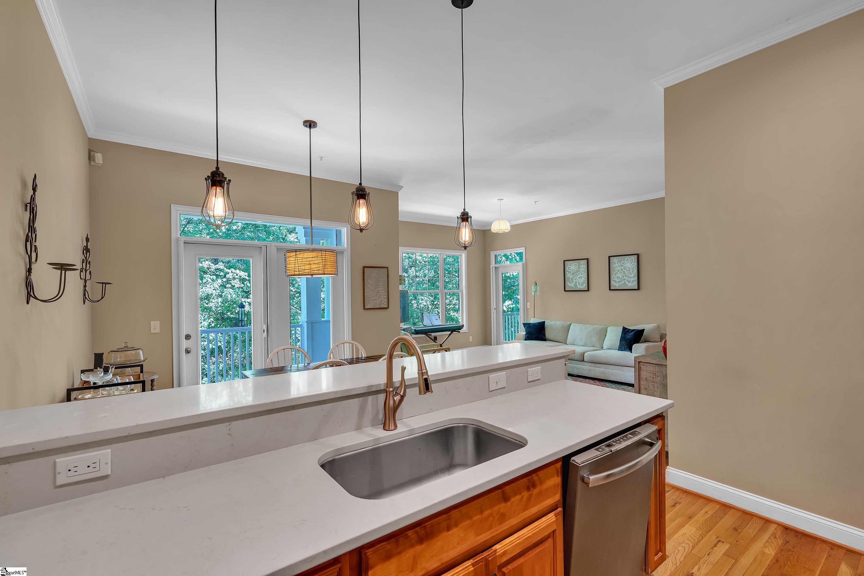 N Main area townhome just minutes from vibrant downtown Greenville! This 3BR/2.5BA home (approx. 1,800 sq ft) features an open-concept main level with a chef’s kitchen, dining area, and balcony for al fresco dining. The primary suite is on the main floor with a private porch, walk-in closet, and en suite bath with separate shower and garden tub. Enjoy easy, no-stairs entry from the attached one-car garage, plus built-ins, plantation shutters, and a half bath. The lower level offers a flexible layout with a light-filled den, two bedrooms, full bath, and abundant storage—ideal for guests, roommates, or a home office. Multiple patios and balconies back to a peaceful park setting- perfect for morning coffee or entertaining. Enjoy the best of low maintenance living in one of Greenville’s most desirable locations.