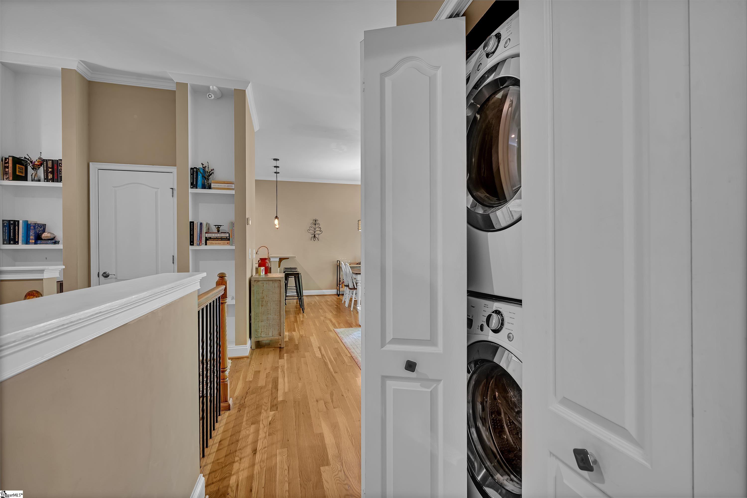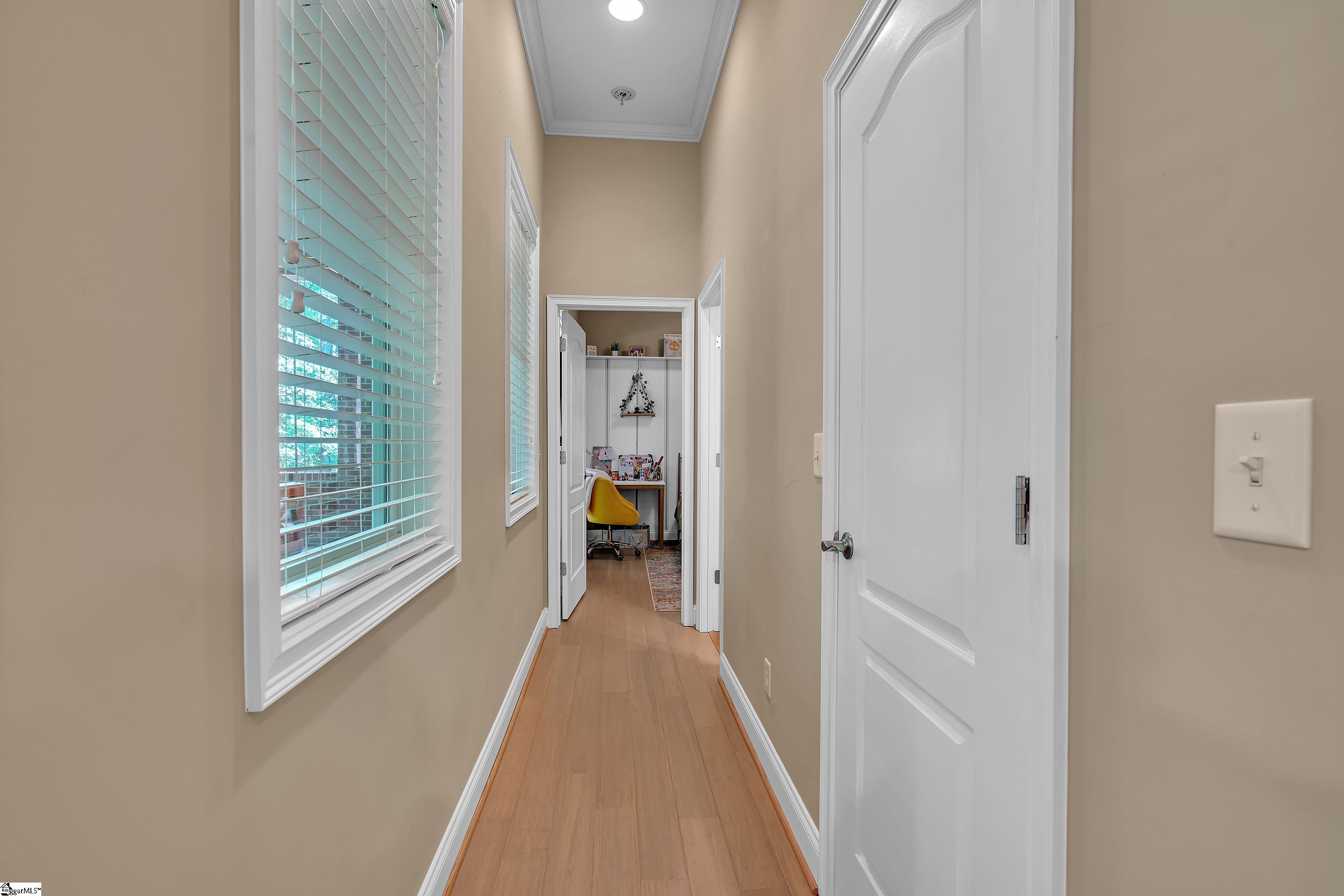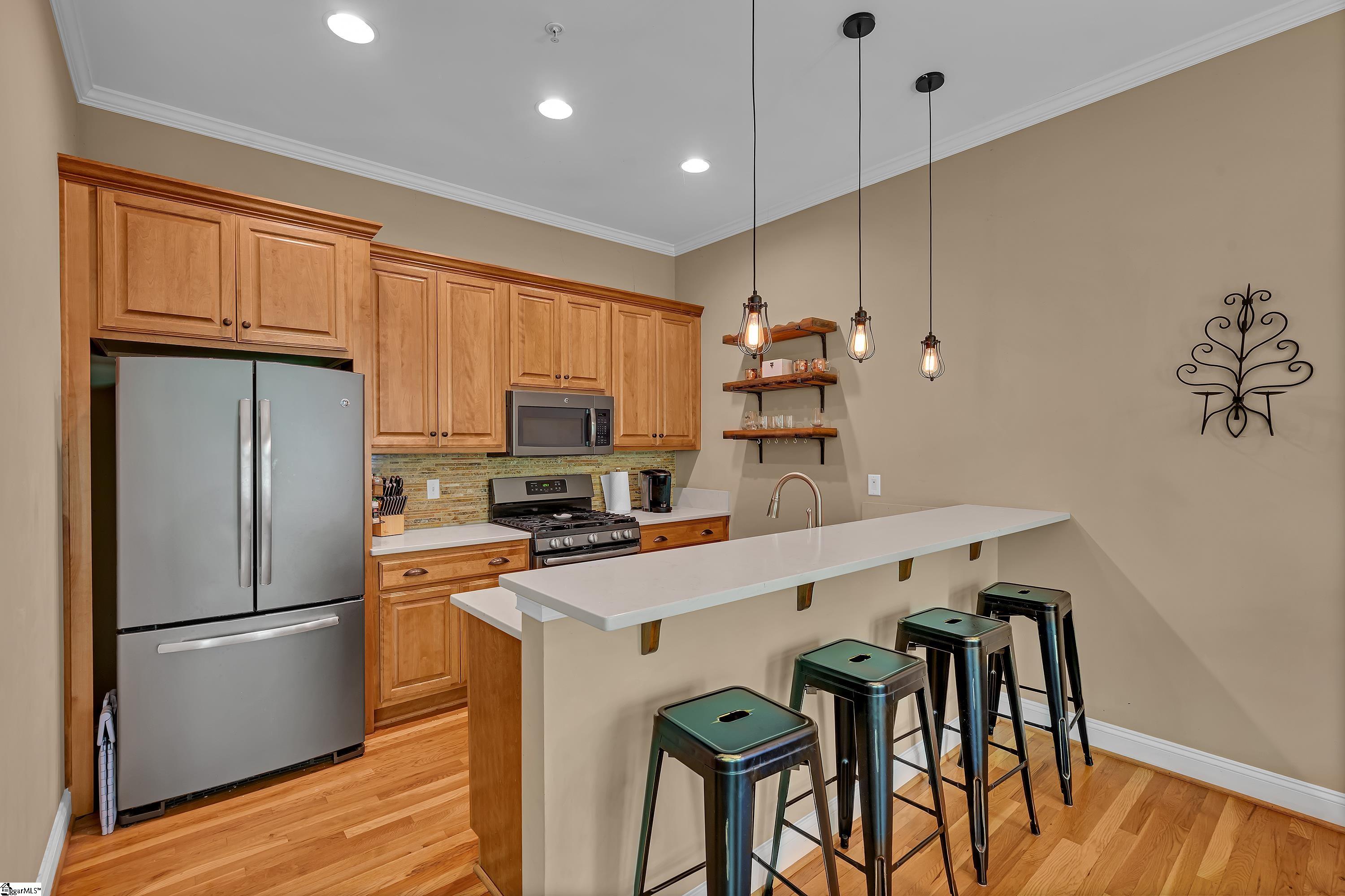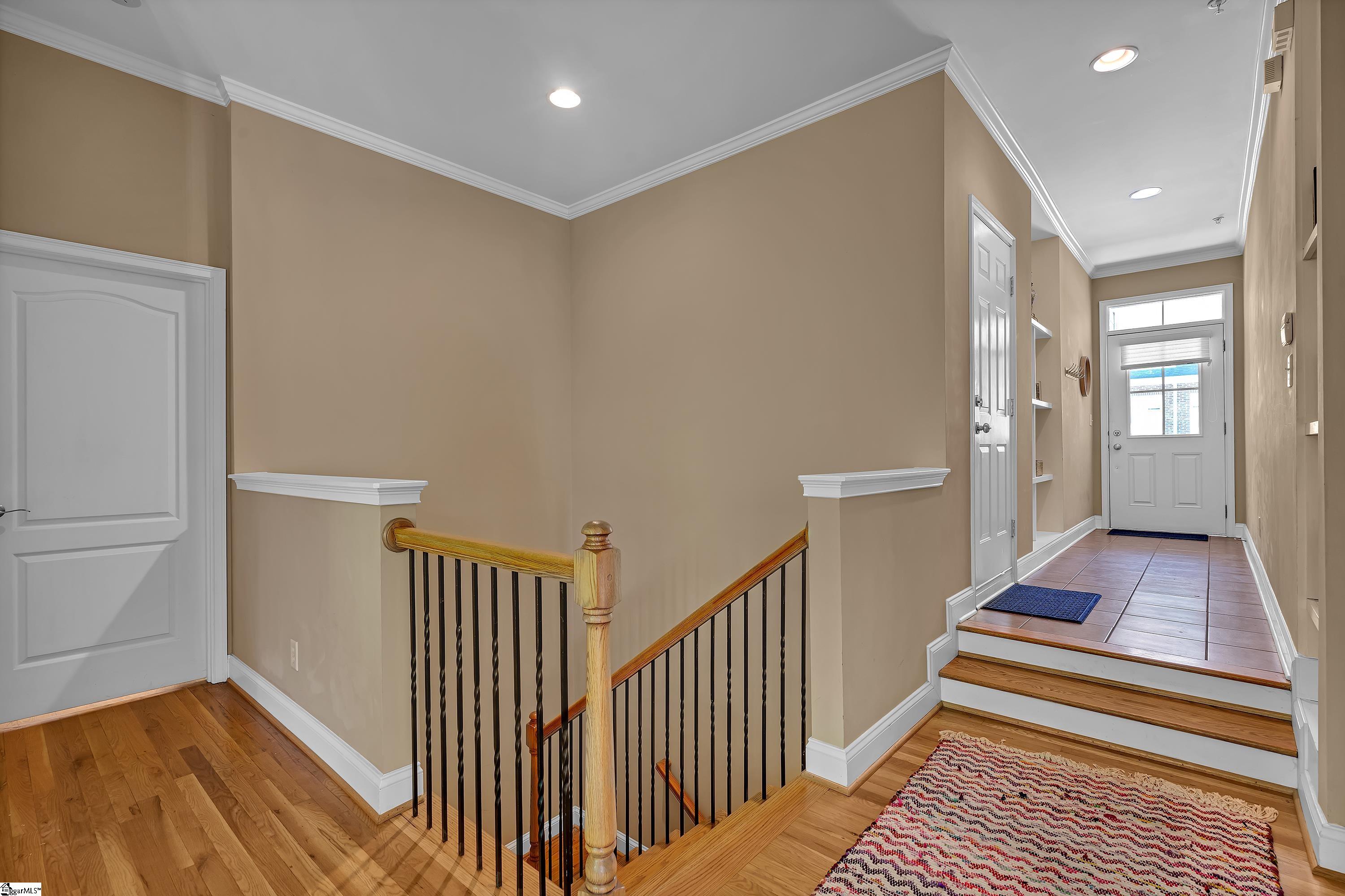N Main area townhome just minutes from vibrant downtown Greenville! This 3BR/2.5BA home (approx. 1,800 sq ft) features an open-concept main level with a chef’s kitchen, dining area, and balcony for al fresco dining. The primary suite is on the main floor with a private porch, walk-in closet, and en suite bath with separate shower and garden tub. Enjoy easy, no-stairs entry from the attached one-car garage, plus built-ins, plantation shutters, and a half bath. The lower level offers a flexible layout with a light-filled den, two bedrooms, full bath, and abundant storage—ideal for guests, roommates, or a home office. Multiple patios and balconies back to a peaceful park setting- perfect for morning coffee or entertaining. Enjoy the best of low maintenance living in one of Greenville’s most desirable locations.