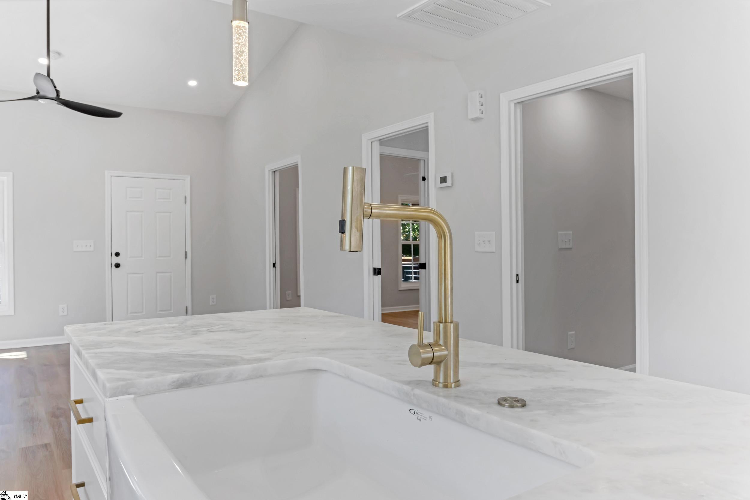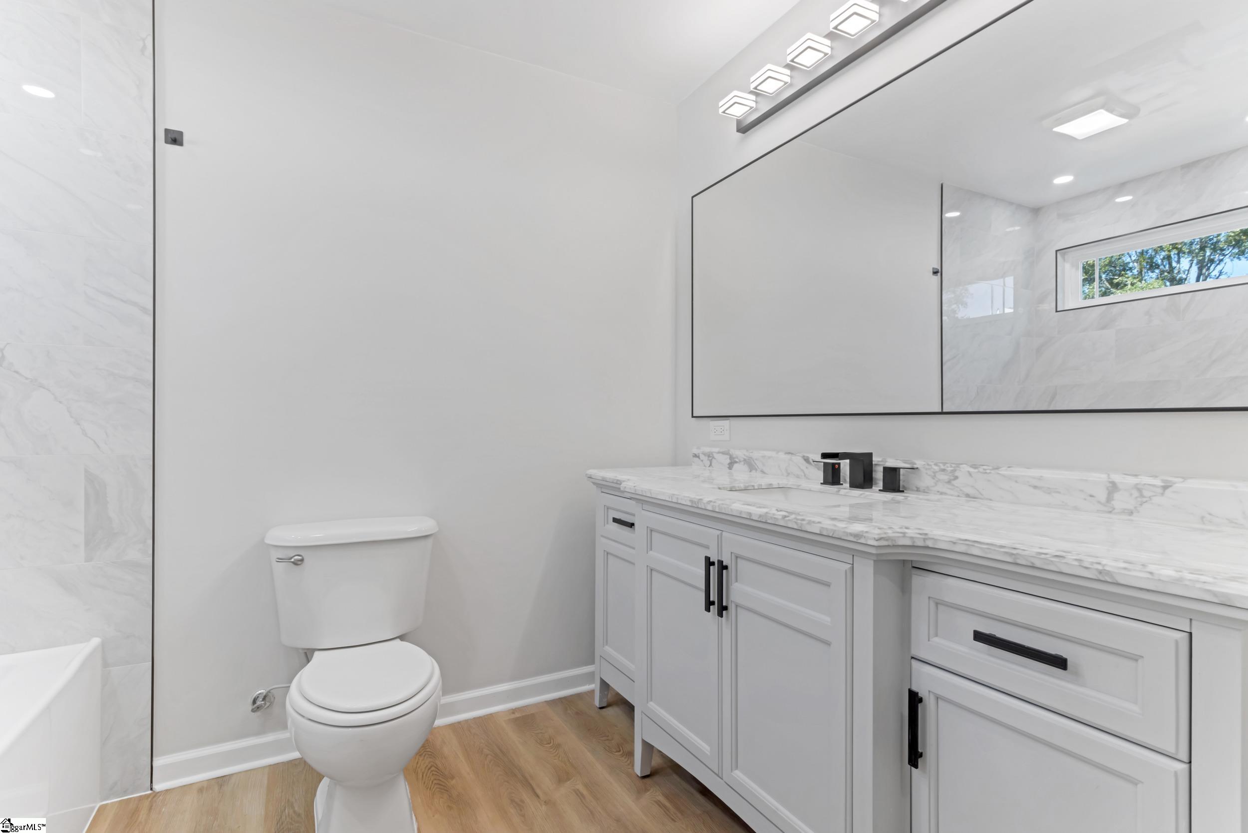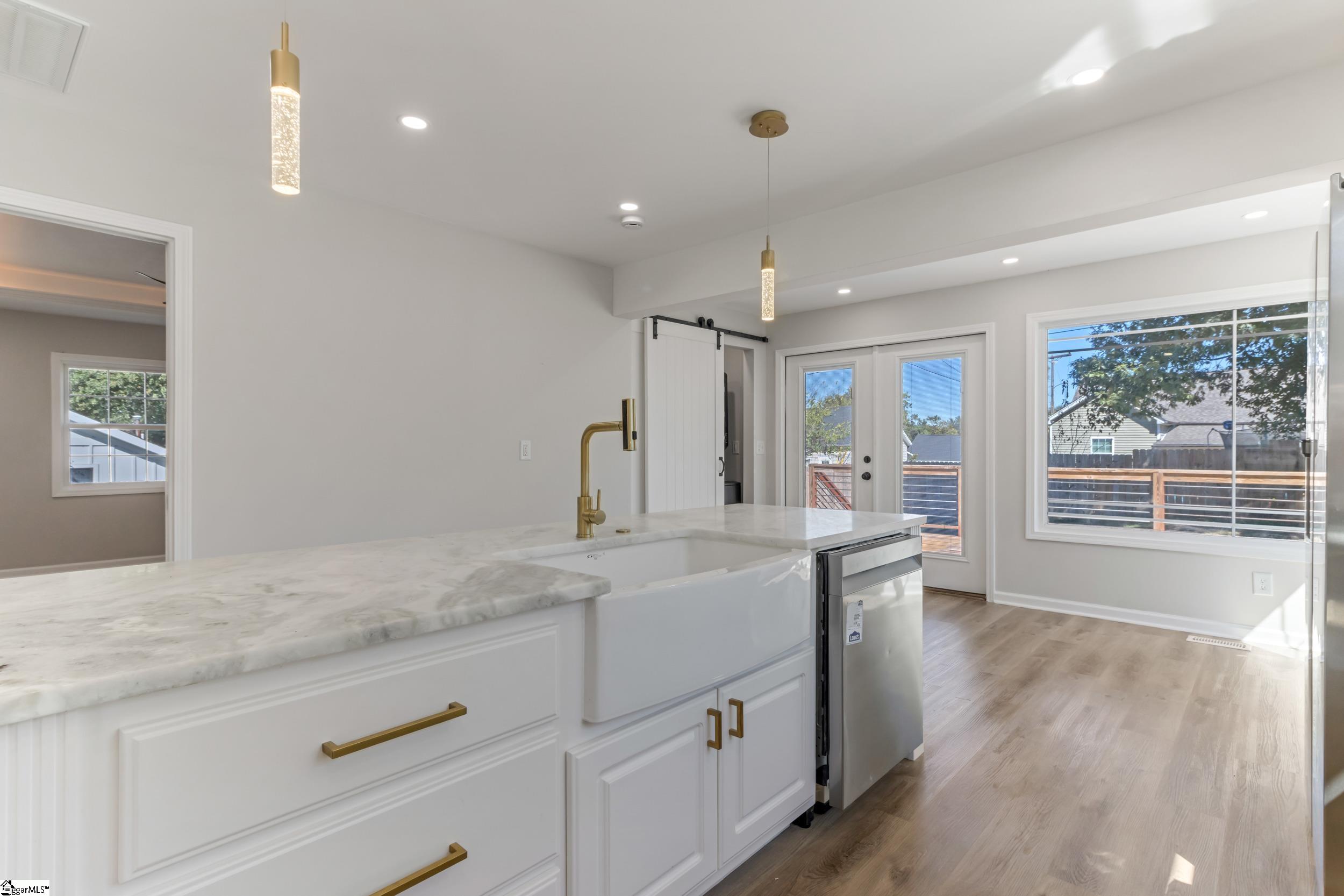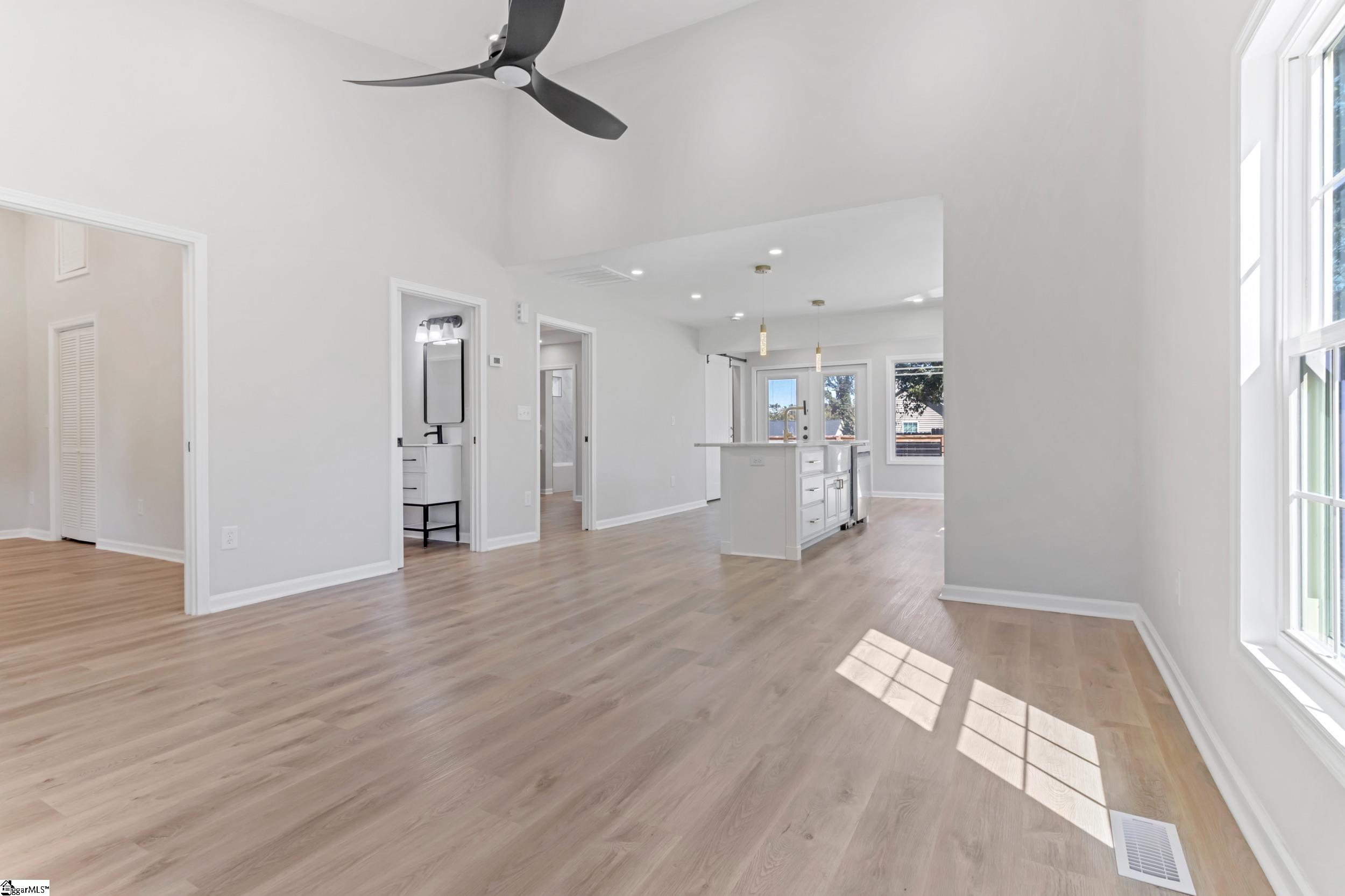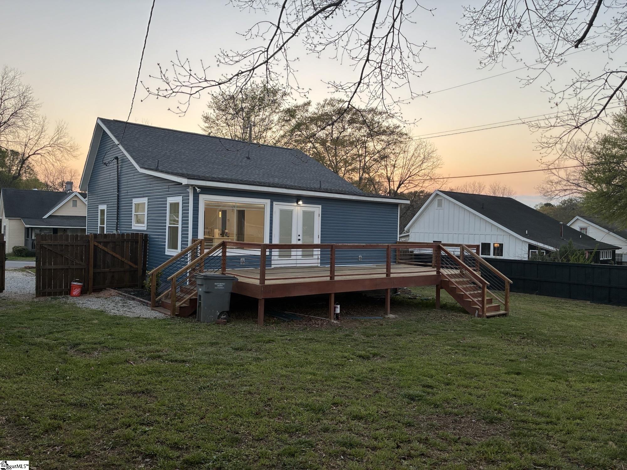 Rare, fully renovated “to-the-studs” mill house with bungalow-style charm just outside Greenville city limits! This 2BR/2BA home offers the peace of mind of new construction with all-new HVAC, roof, plumbing, electrical, insulation, siding, window wrapping, and water heater. Inside, enjoy an open-concept layout with soaring vaulted ceilings, new drywall, and energy-efficient windows throughout. Designer finishes include luxury flooring, modern lighting, and ceiling fans in every room. The kitchen features new cabinetry, brand-new appliances, a farmhouse sink, and a convenient stackable washer/dryer. Both bathrooms have been thoughtfully redesigned with updated vanities, mirrors, and fixtures, while pocket doors maximize space and functionality. Enjoy exceptional outdoor living with a full-length front porch and an expansive rear deck ideal for entertaining. Situated on a .19-acre lot with a new 6-ft privacy fence, this turn-key home is located in a rapidly growing area, just minutes from downtown Greenville. Seller to contribute up to $5000 towards closing or prepaids with acceptable offer.