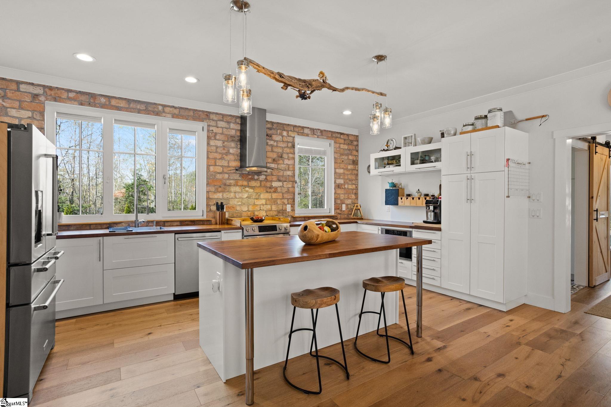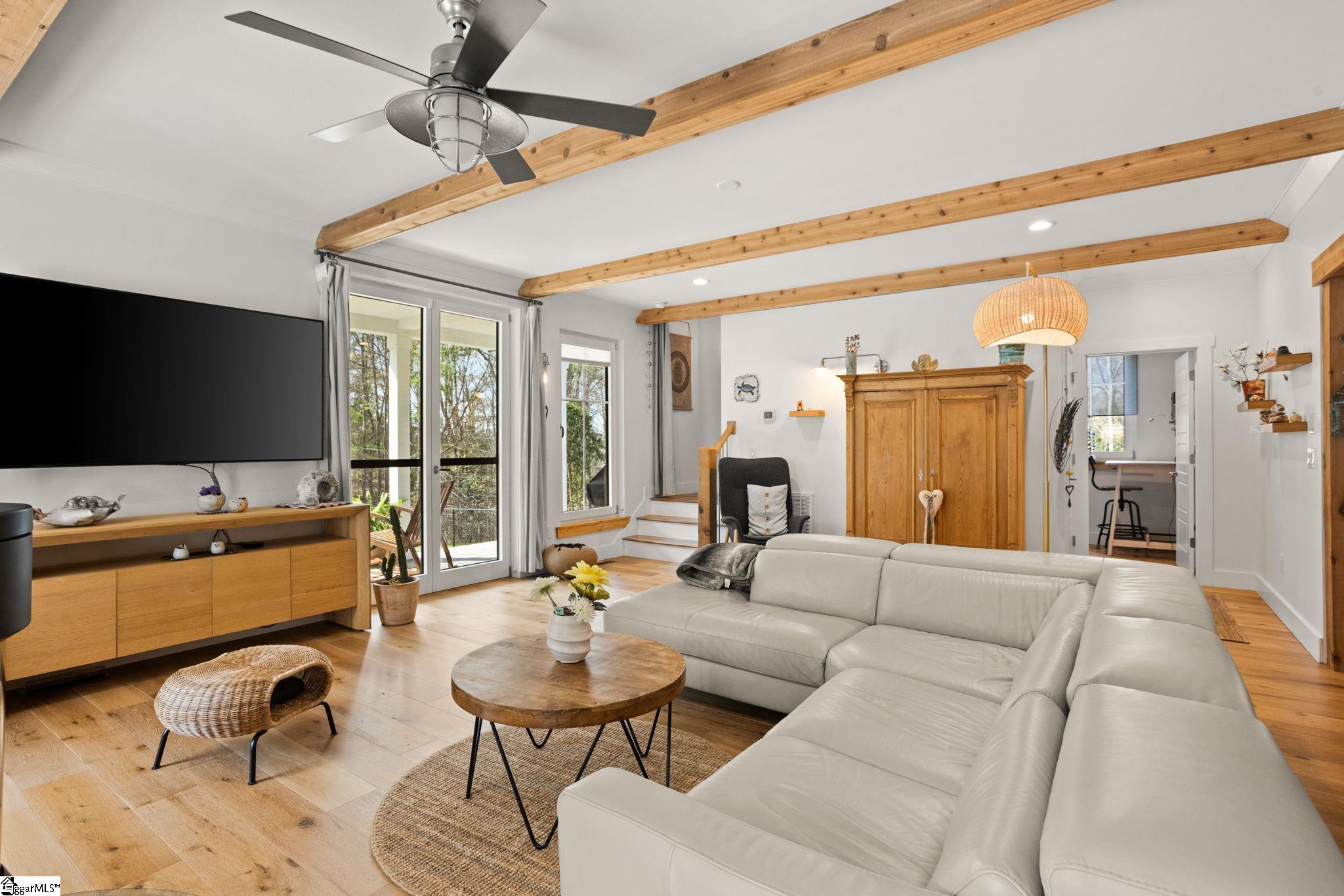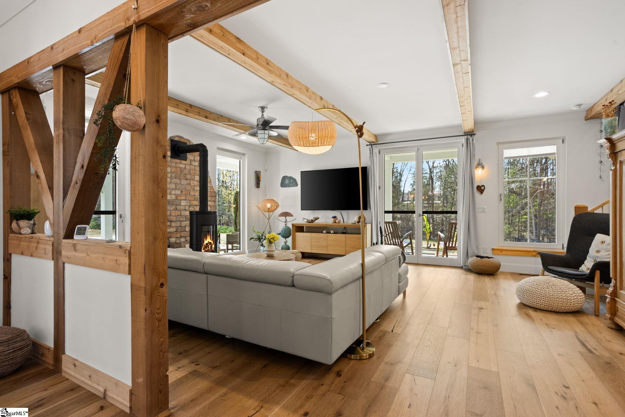 Custom-built in 2019, this home sits on approximately 3 private acres with no HOA or restrictions, offering a layout designed for primary living on the main level. The main level flows seamlessly from an open kitchen and dining, to bright living spaces, and access to outdoor areas. The primary suite is located on the main floor, with additional bedrooms and flexible space upstairs. The outdoor setting is a key feature, with a saltwater pool, patio, screened porch, and a covered wraparound porch. The property is set back from the road and bordered by woods, making it easy to enjoy your quiet, relaxing retreat! In addition to the main home, there is a fully conditioned detached structure with a garage, flex space, bathroom, and finished upper-level loft, offering clear ADU potential. A separate four-car garage provides additional storage and utility for vehicles, equipment, or workshop use. The home was built with a focus on efficiency and performance, including owned solar, high-quality windows and doors, and premium insulation. The result is a property that prioritizes function, privacy, and long-term usability. Conveniently located under 30 minutes to downtown Greenville, approximately 10 minutes to Main Street Spartanburg, and less than 20 minutes to GSP Airport. Home pre-inspected and repairs made at sellers expense! All this home needs is YOU!!!