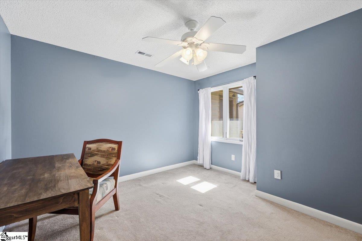 Welcome home to 185 Tanager Circle! This well-maintained, ONE LEVEL, 3 bedroom, 2 bath condo is situated in the heart of Sugar Creek Villas- a highly sought after community on the Eastside of Greenville. As soon as you walk through the front door, you can tell how much the Owners have cared for this condo with the attention to detail and recent updates. The open floor plan flows naturally into the spacious living room that features a stoned fireplace (gas logs) for you to enjoy ambiance year round. The adjacent sunroom (all seasons room) can also be enjoyed year round as all of the sliding windows are screened allowing you to open anytime you want to enjoy nature and the peacefulness of the back yard. The Primary suite features dual walk-in closets. The attached bathroom has been updated with an accessible walk-in shower. The secondary bedrooms are on front side of the condo and provide plenty of room for guests or hobbies. The 2 car garage is oversized allowing for parking and storage. It currently has a built-in ramp for accessibility but can be easily removed. Enjoy the ease of the HOA fee handling your yard maintenance, exterior maintenance, weekly trash service, and pest control so you can spend more time entertaining or unwinding at the beautiful community pool, tennis courts or clubhouse! This home also comes with all appliances including the washer and dryer making moving in a breeze. The location is perfect to access medical facilities, shops, grocery stores, restaurants, GSP Airport and convenient to hop on I-85. What more could you want with maintenance free living in an active community and all the amenities, spacious layout, and convenient location? Come see why 185 Tanager Circle is so special!