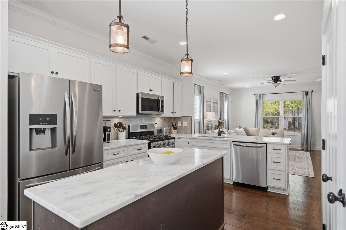Welcome to this beautifully maintained 3-bedroom, 2-bath home built in 2017, offering the perfect blend of modern design and low-maintenance living. The open floor plan creates a seamless flow between the living, dining, and kitchen areas making the spaces feel bright, connected, and functional. Step outside to enjoy a fully fenced backyard, complete with a shed for extra storage as well as a storage closet on the extended back patio. Located just around the corner from Cleveland Park, you’ll love the convenience of being able to walk or bike to one of the Greenville’s favorite spots. Book your private showing today!