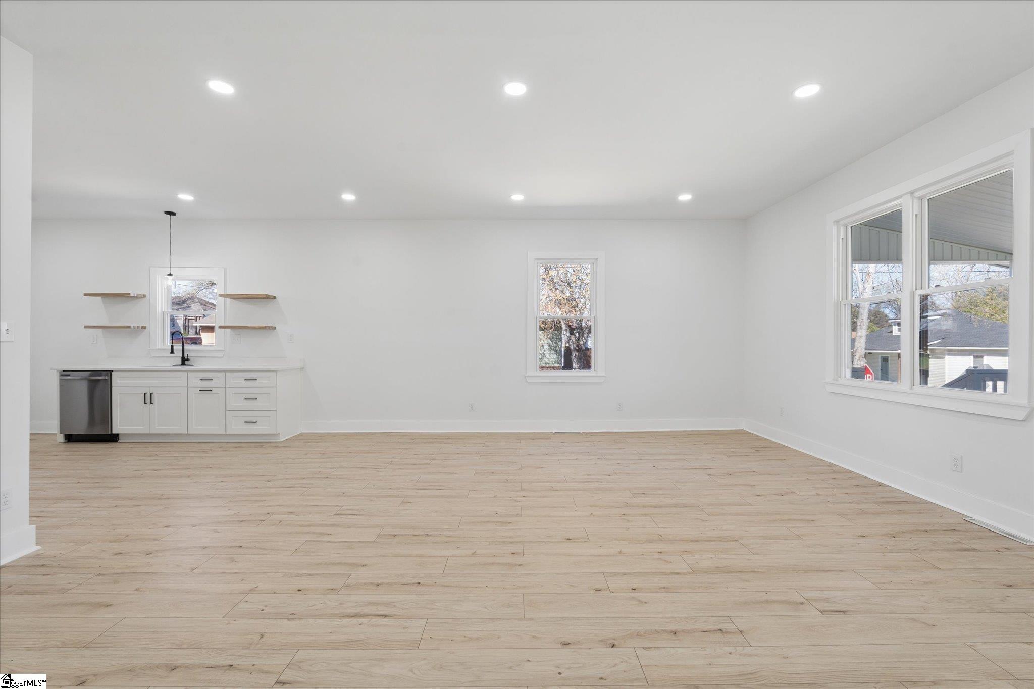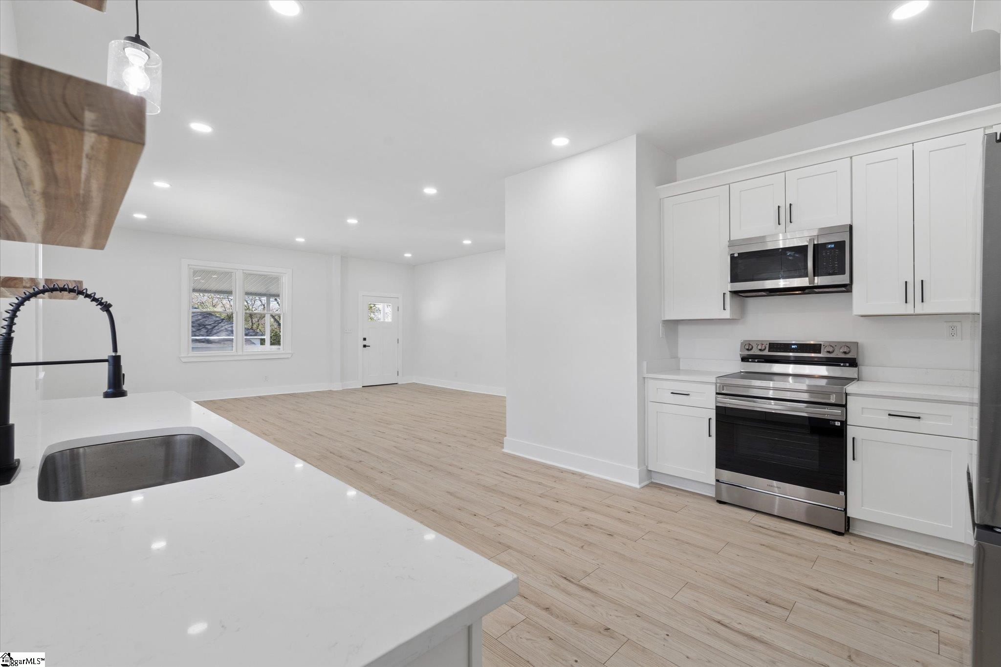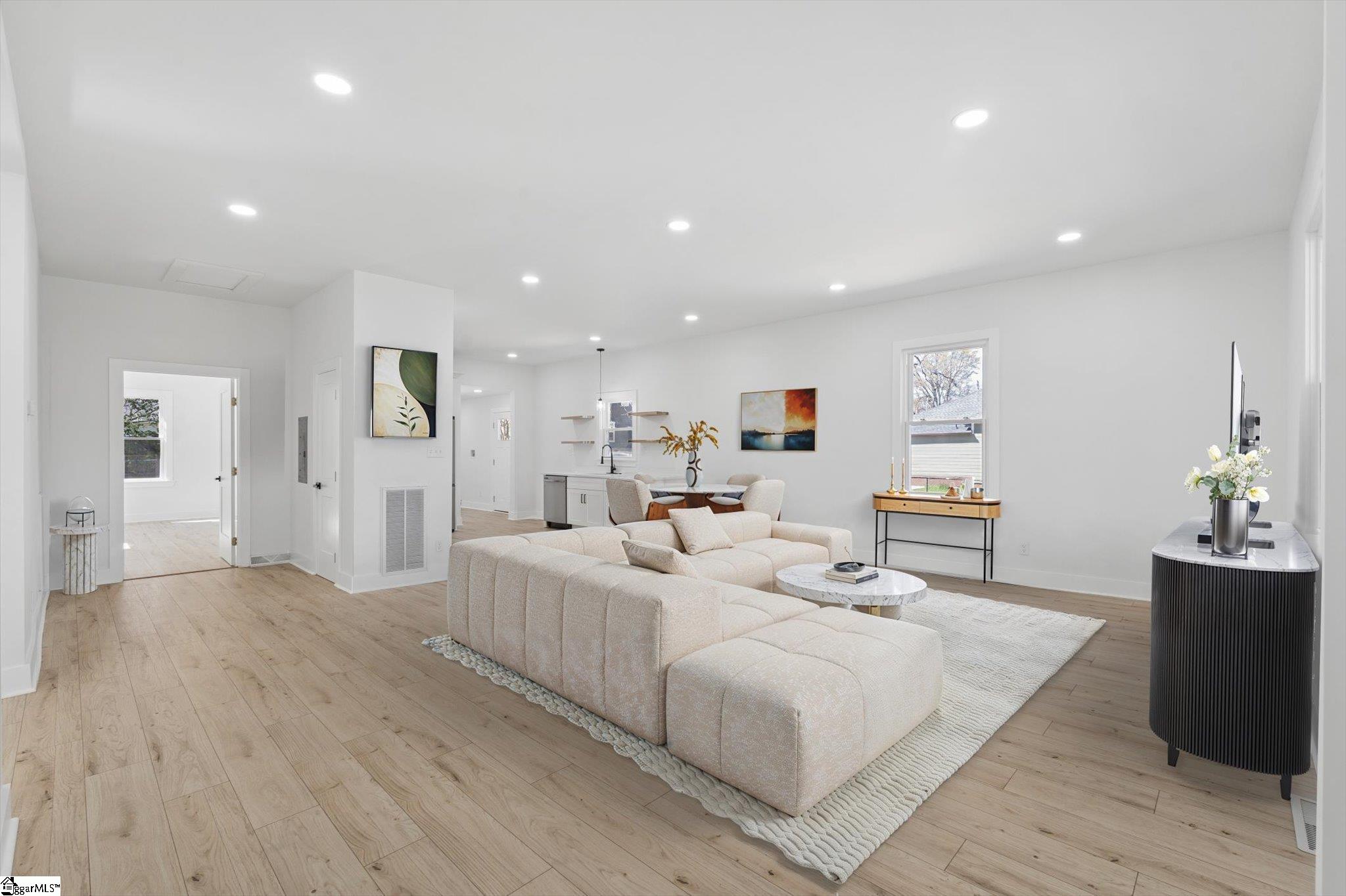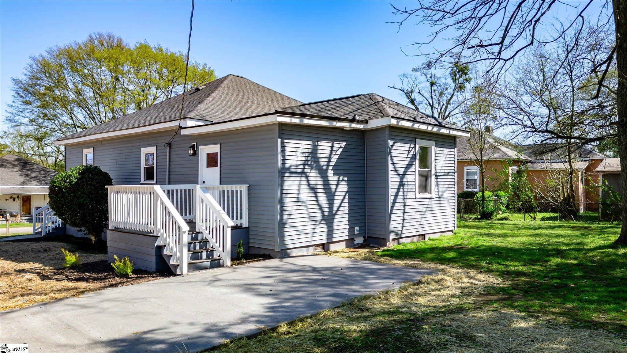 Beautifully remodeled 3-bedroom, 2-bath home featuring a modern open floor plan and abundant natural light throughout! This cozy yet stylish home is completely carpet-free, creating a fresh, clean, move-in-ready feel. The updated kitchen features quartz countertops, a charming farmhouse sink, stainless steel appliances, and a functional layout ideal for everyday living and entertaining. Both bathrooms also include elegant quartz countertops for a cohesive, upgraded finish. Relax on the spacious front porch, perfectly situated on a quiet cul-de-sac street. Conveniently located just 2 miles from Unity Park and vibrant downtown Greenville, you will enjoy easy access to top dining, shopping, and entertainment with no HOA restrictions. Bright, inviting, and full of character, this home is ready for its next owner to make it their own!