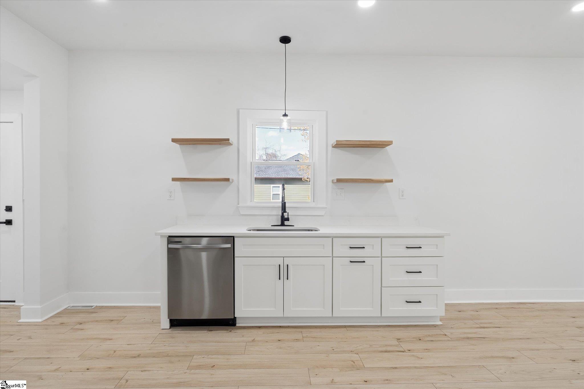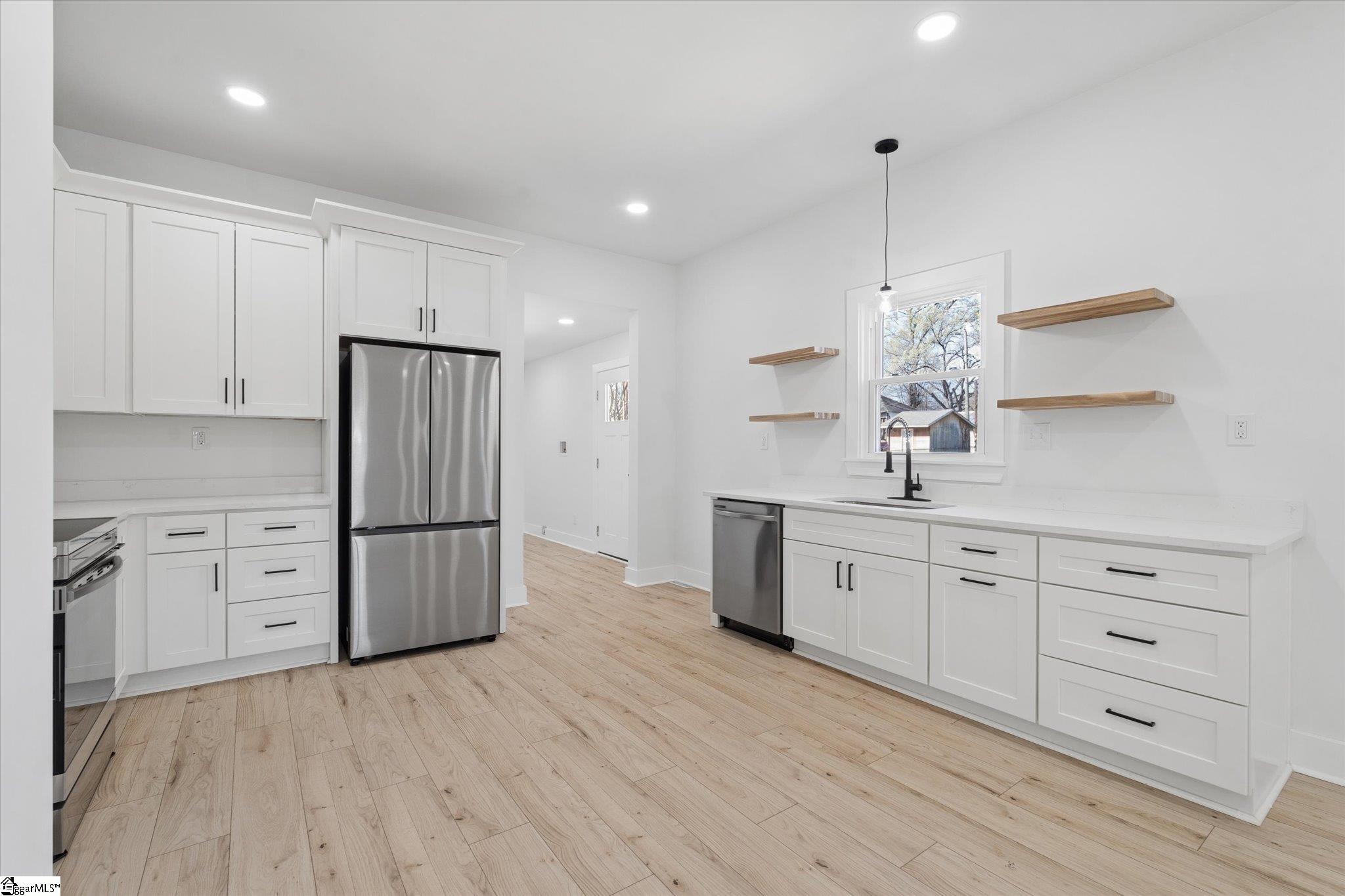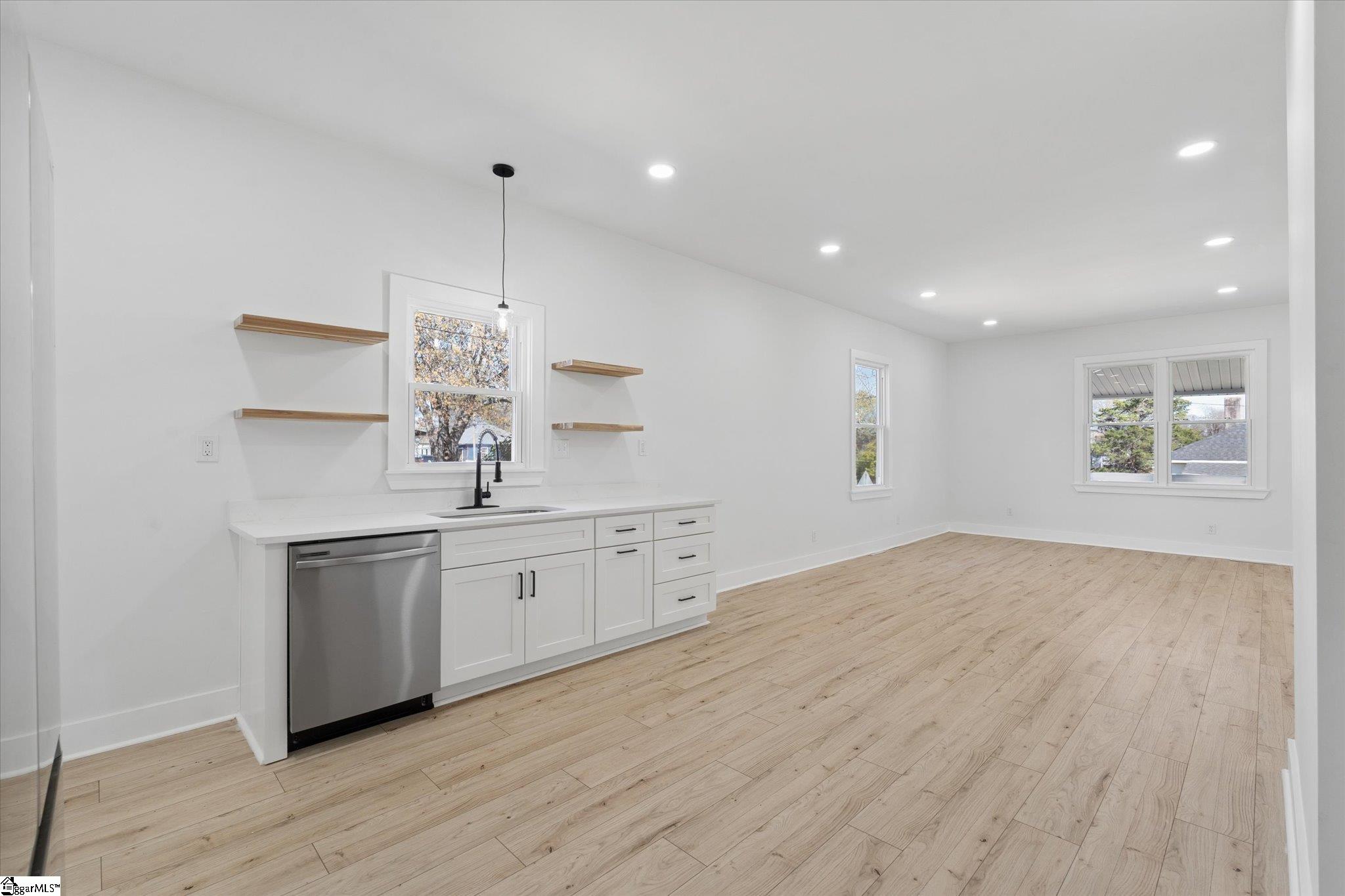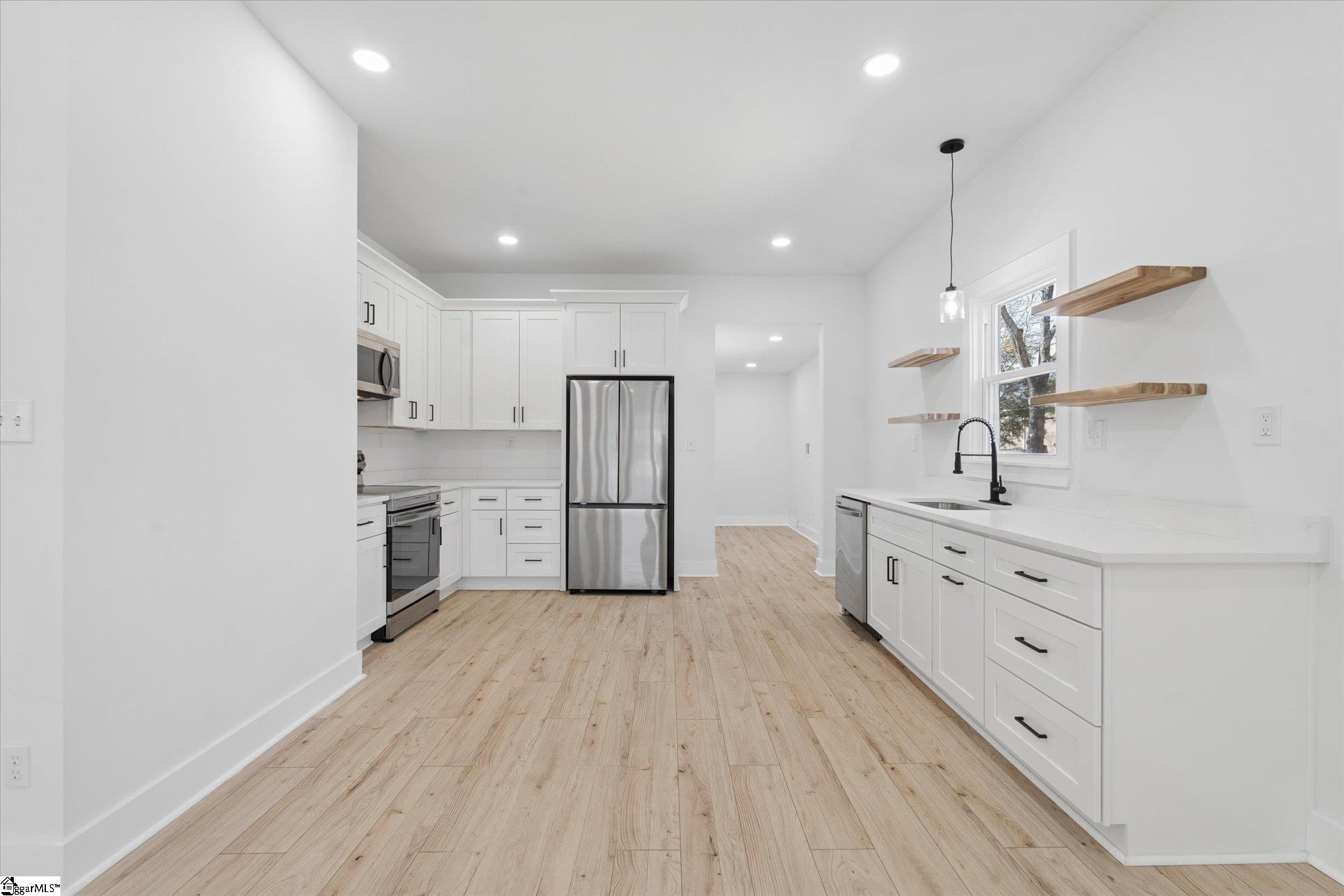 Beautifully remodeled 3-bedroom, 2-bath home featuring a modern open floor plan and abundant natural light throughout! This cozy yet stylish home is completely carpet-free, creating a fresh, clean, move-in-ready feel. The updated kitchen features quartz countertops, a charming farmhouse sink, stainless steel appliances, and a functional layout ideal for everyday living and entertaining. Both bathrooms also include elegant quartz countertops for a cohesive, upgraded finish. Relax on the spacious front porch, perfectly situated on a quiet cul-de-sac street. Conveniently located just 2 miles from Unity Park and vibrant downtown Greenville, you will enjoy easy access to top dining, shopping, and entertainment with no HOA restrictions. Bright, inviting, and full of character, this home is ready for its next owner to make it their own!