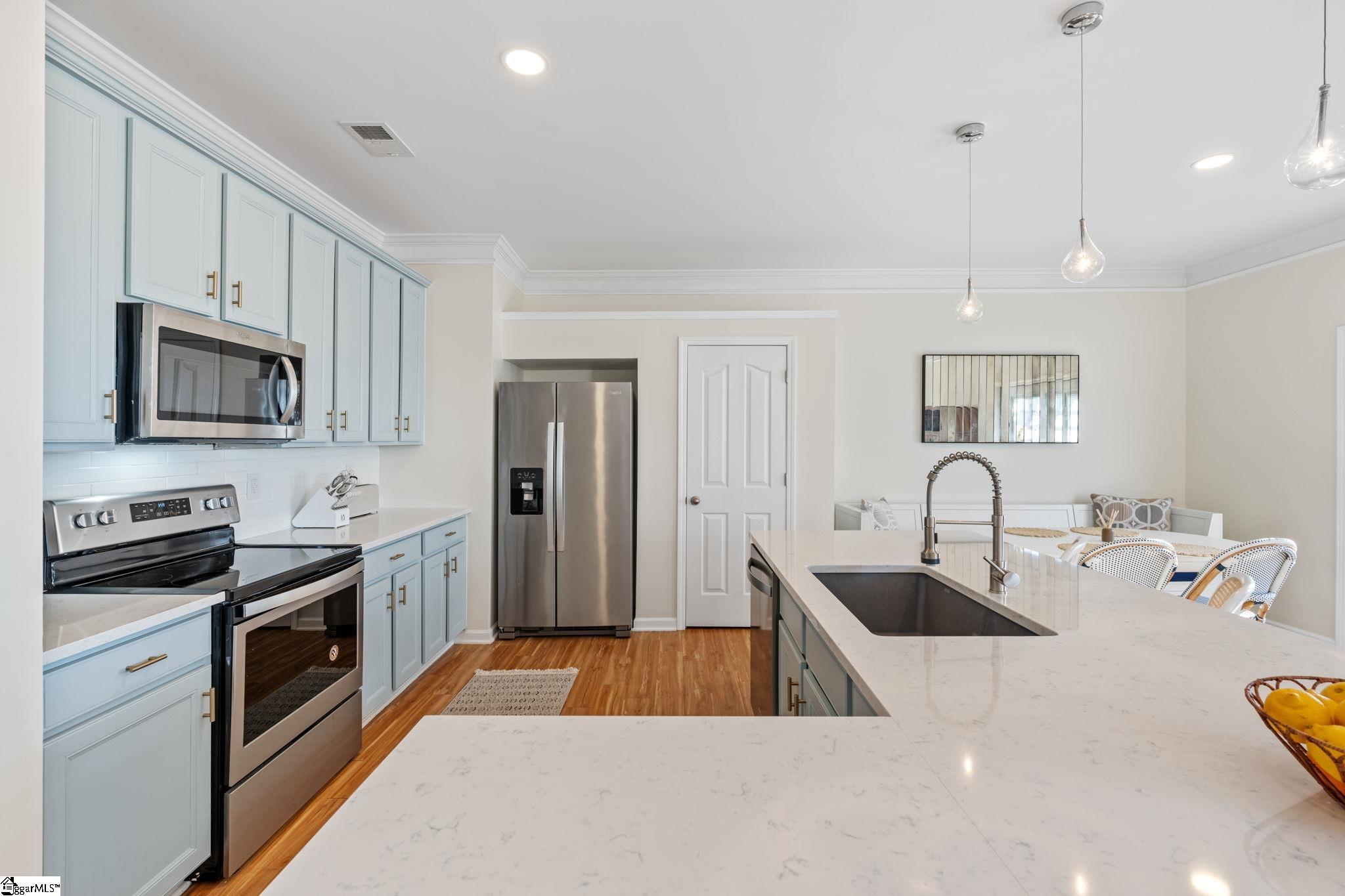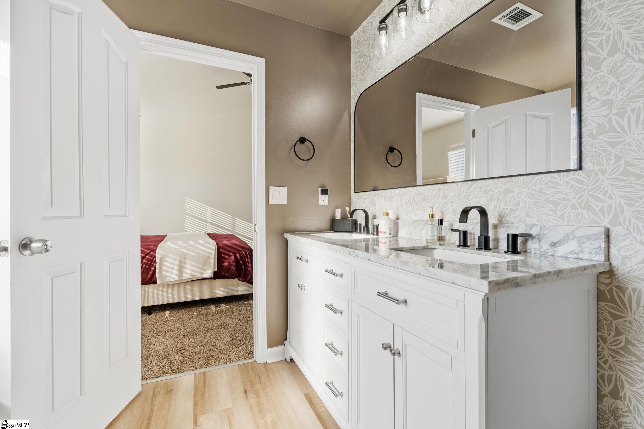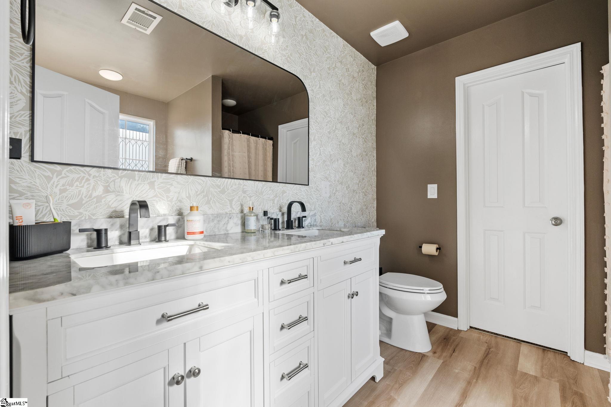 Beautifully updated and truly move-in ready, this Simpsonville home offers the upgrades buyers want without the renovation headaches. Major improvements completed since August 2025 include a brand-new water heater, newly installed privacy fence, and over 800 square feet of fresh sod, adding both functionality and immediate curb appeal. Inside, the entire home has been freshly painted from ceilings to trim, creating a clean, cohesive feel throughout. Two full bathrooms have been fully remodeled with brand new vanities, custom mirrors, new flooring, updated lighting, plumbing fixtures, hardware, near-silent fans, and refinished tubs and showers. The half bath has also been refreshed with new fixtures and paint. The kitchen has been tastefully updated with repainted cabinetry, repairs, and new hardware, while the laundry room has been completely remodeled with new flooring, shelving, custom paint, and modern lighting. Additional interior improvements include all new push-style outlets and switches, new door hardware throughout, custom accent wall loft paint, a new bedroom light and fan, plus professionally stretched and cleaned carpet. Key systems have been addressed for added confidence, including a recently serviced HVAC system and the newly installed water heater. The exterior has been fully refreshed with professional pressure washing of the home, driveway, and sidewalks, freshly painted exterior doors, new shutter paint, accent trim paint, pergola repairs and stain, and all-new landscaping with fresh bushes and mulch. Located in the desirable Simpsonville area just minutes from downtown Simpsonville and Fountain Inn, this home offers convenient access to shopping, dining, and everyday essentials while maintaining a quiet neighborhood setting. Well-maintained, thoughtfully updated, and ready for its next owner — this is a smart move in today’s market.