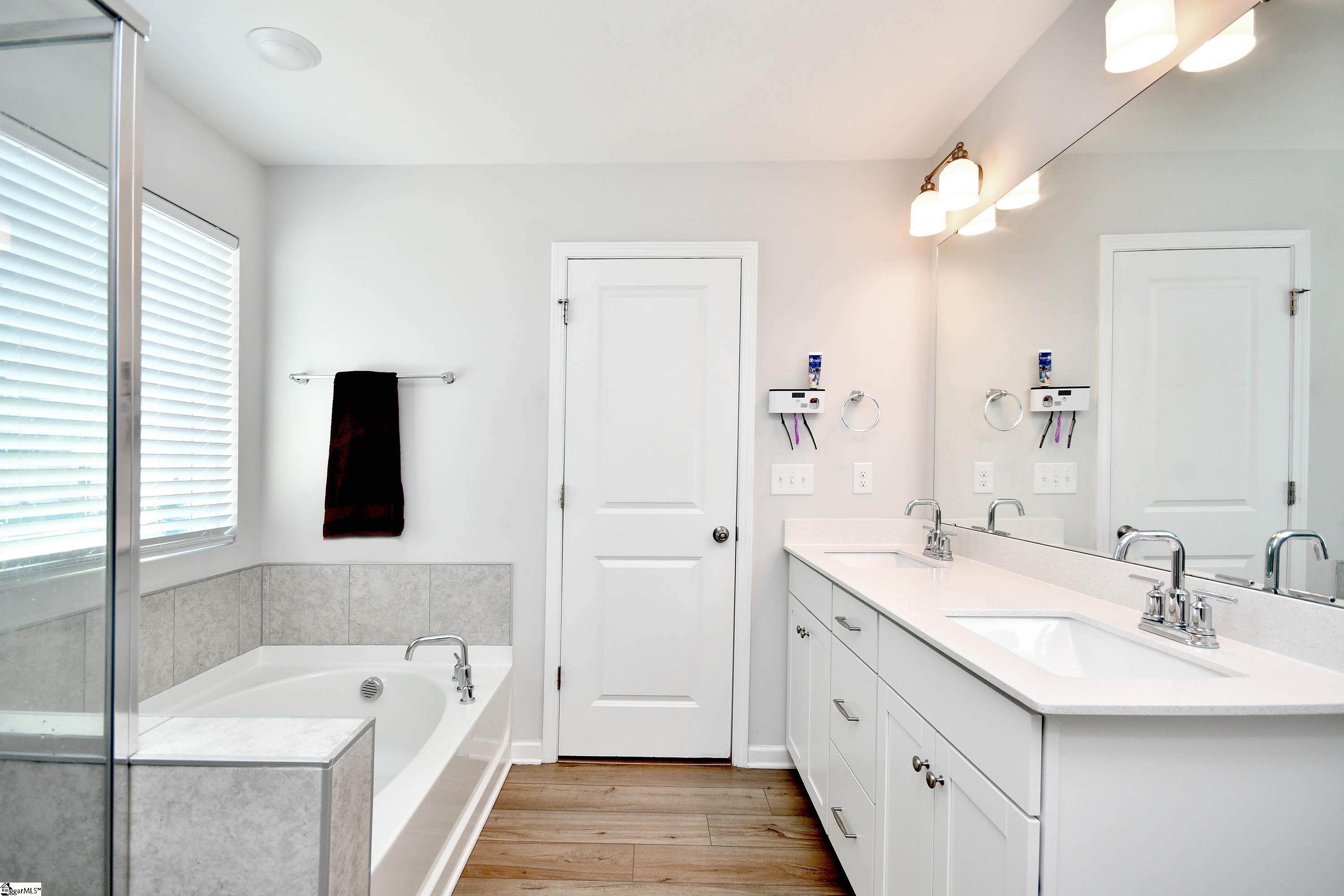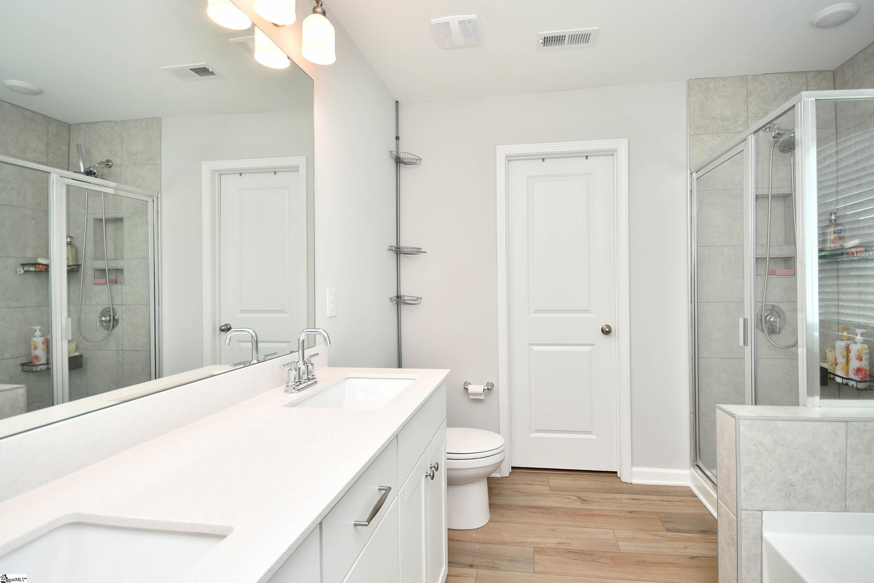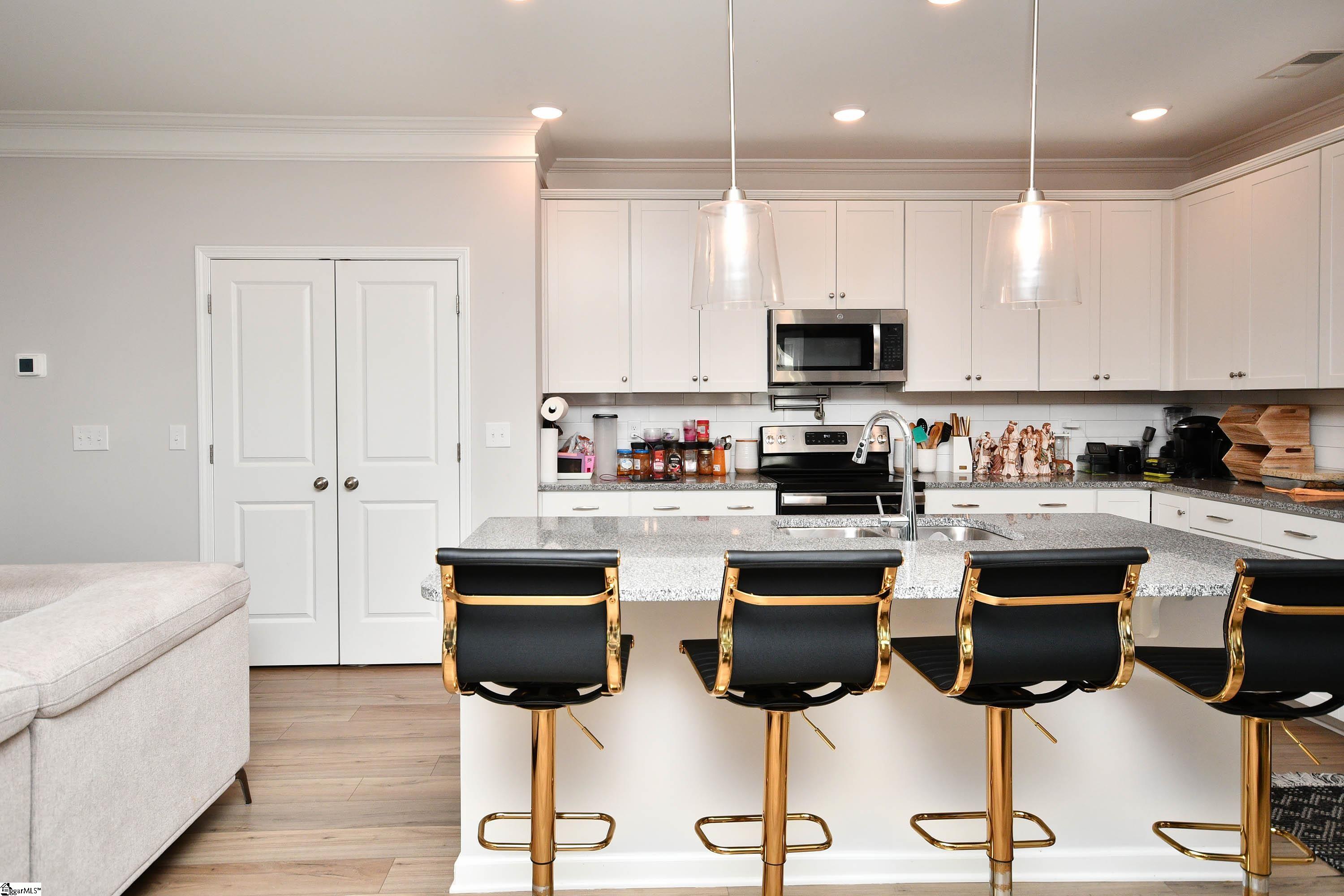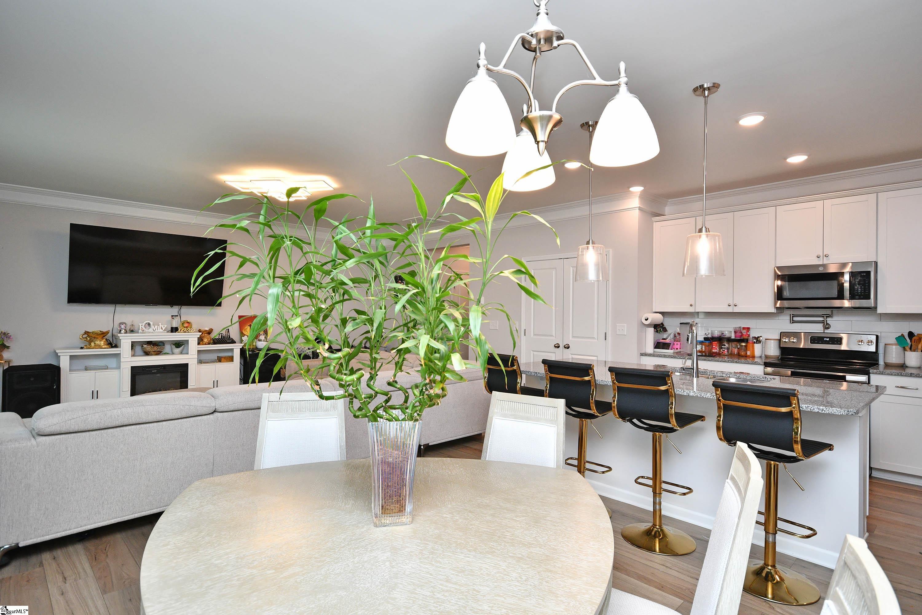 Welcome to this beautifully maintained 3-year-old home situated on a desirable corner lot! Featuring 3 bedrooms, 2.5 bathrooms, and a spacious open loft, this home offers both comfort and flexibility. The kitchen is a standout with upgraded cabinetry, granite countertops, tile backsplash, LED recessed lighting, pendant lighting over the island, stainless steel appliances, and the added convenience of a pot filler. Enhanced luxury vinyl plank flooring flows throughout the main living areas, complemented by upgraded trim, lighting, and plumbing fixtures. The primary suite offers a relaxing retreat with a tiled walk-in shower, separate garden tub, dual sinks, and quartz countertops. Step outside to enjoy the extra-large concrete patio—perfect for entertaining—as well as a side-entry electric fence that allows for easy backyard access and unloading. The garage is currently set up as a secondary kitchen with a gas cooktop and ample counter space, offering great potential for multi-use or hobby space. It can easily be converted back to its original use as a garage if desired. Freshly painted and move-in ready—don’t miss this opportunity to own a like-new home with thoughtful upgrades throughout!