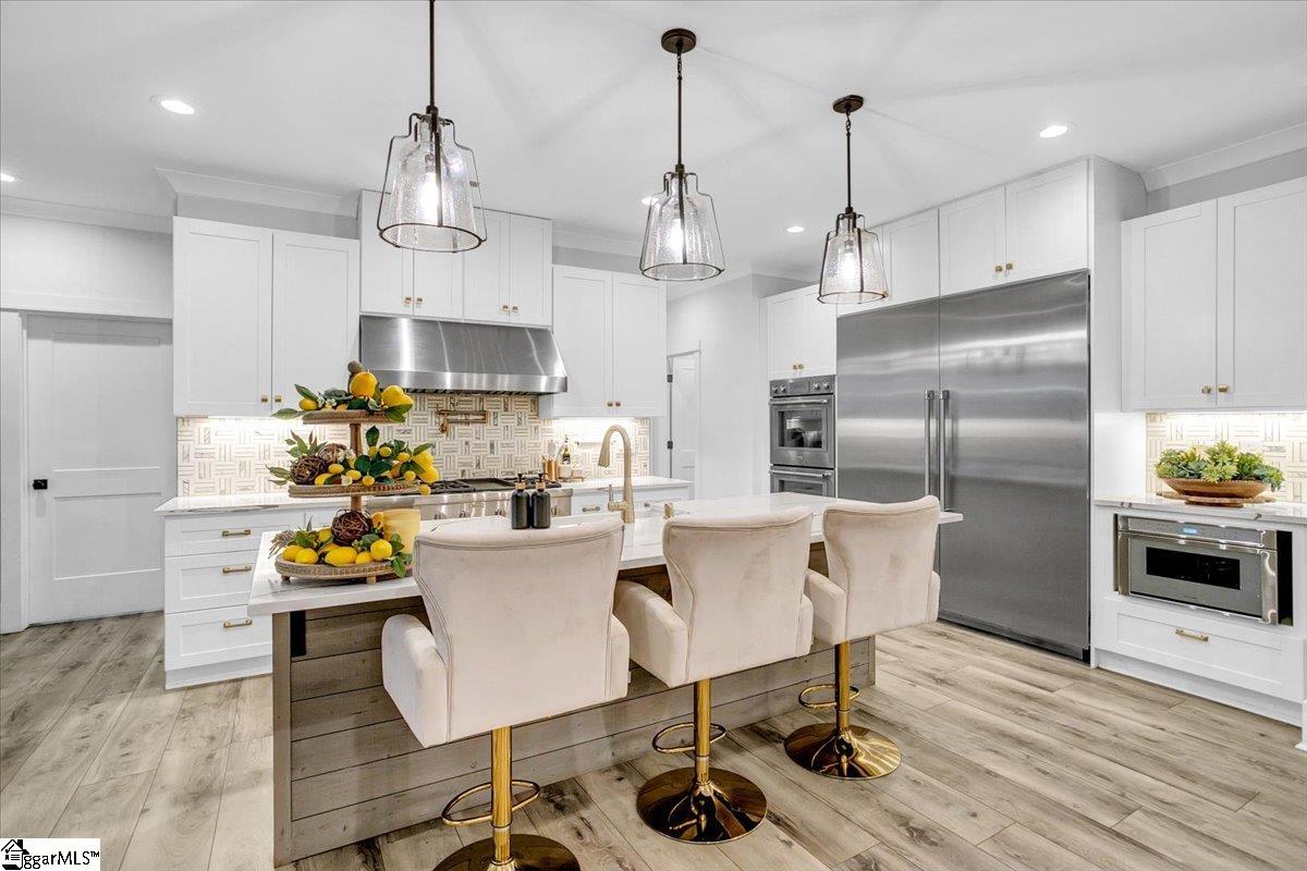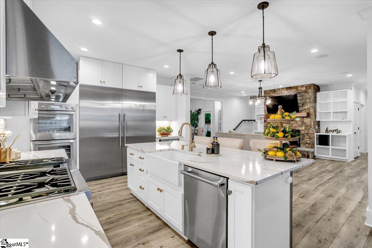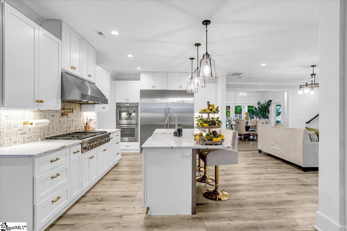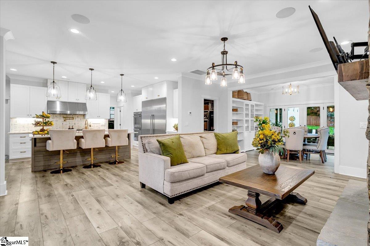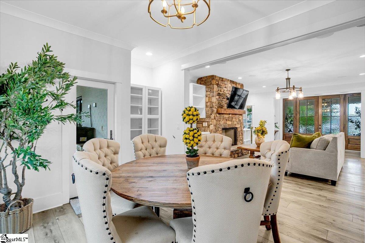 Exceptional Custom-Built Home in Prestigious Lakefront Community Welcome to a stunning blend of craftsmanship, luxury, and thoughtful design in the sought-after Stillwaters at Lake Robinson community, known for its picturesque views of Lake Robinson and a breathtaking mountain view backdrop. This exquisite custom brick home stands out with remarkable curb appeal, featuring a 74’ x 7’ wrap-around covered porch that sets a welcoming tone from the moment you arrive. Perfectly tailored for those who love to cook and entertain, the gourmet kitchen showcases Thermador wall ovens, a Thermador gas cooktop, elegant quartz countertops, designer tile backsplash, and statement lighting. A separate prep kitchen adds convenience and additional functionality — ideal for hosting or creating your own personal coffee bar. Extend your gatherings outdoors with a fully equipped outdoor kitchen on the covered patio and a cozy gas firepit on the adjoining open patio, surrounded by stamped concrete detailing. Step inside through double mahogany doors and be greeted by an open-concept layout filled with natural light and upscale finishes throughout. The spacious main level includes two bedrooms, one of which is a luxurious primary suite featuring private patio access, a spa-like bath with soaking tub and custom-tiled shower, and a walk-in closet with built-in shelving and ample storage. Additional highlights include a dedicated home office, a large walk-in laundry room with sink, bench, and built-in drop zone, plus a second entrance from the side driveway. Upstairs, you’ll find a theater room with surround sound, two more bedrooms, a second laundry room, and a beautifully tiled full bath. Multiple walk-in attics provide exceptional storage solutions. This property is built with energy efficiency in mind — including spray foam attic insulation, JELD-WEN windows and doors, and a gas tankless water heater. Outdoor enthusiasts and gardeners will appreciate the meticulously designed landscaping, expansive patio areas, and a 12’ x 12’ greenhouse/shed complete with electricity, a ceiling fan, built-in irrigation misters, and stamped concrete flooring. Rarely does a home of this quality and location become available. Don’t miss the opportunity to experience the lifestyle, luxury, and beauty this home has to provide in one of the Upstate’s most scenic communities.