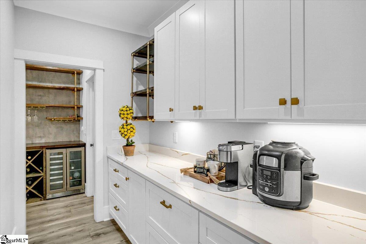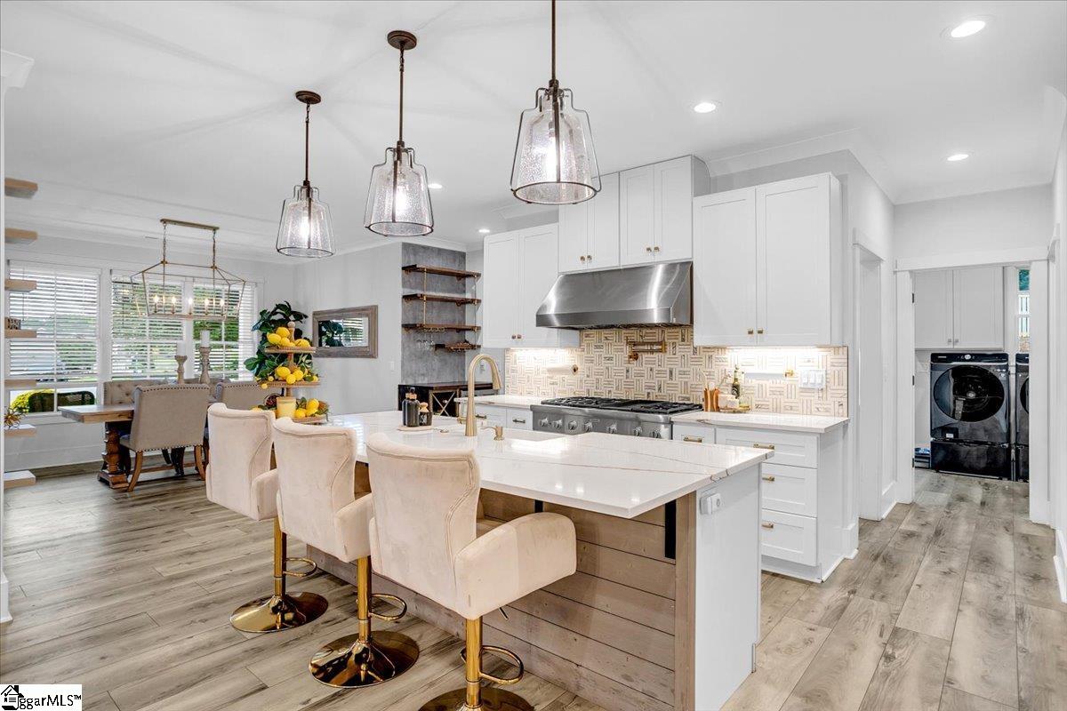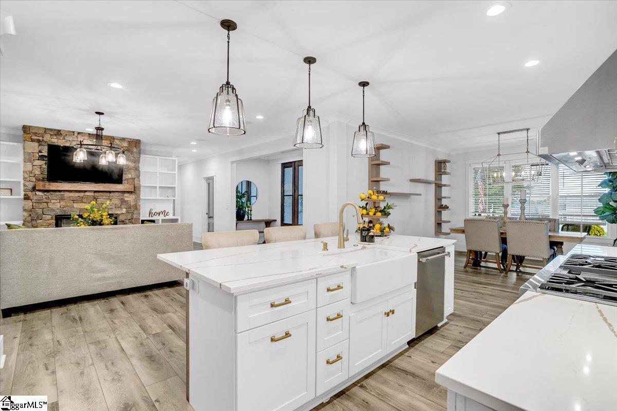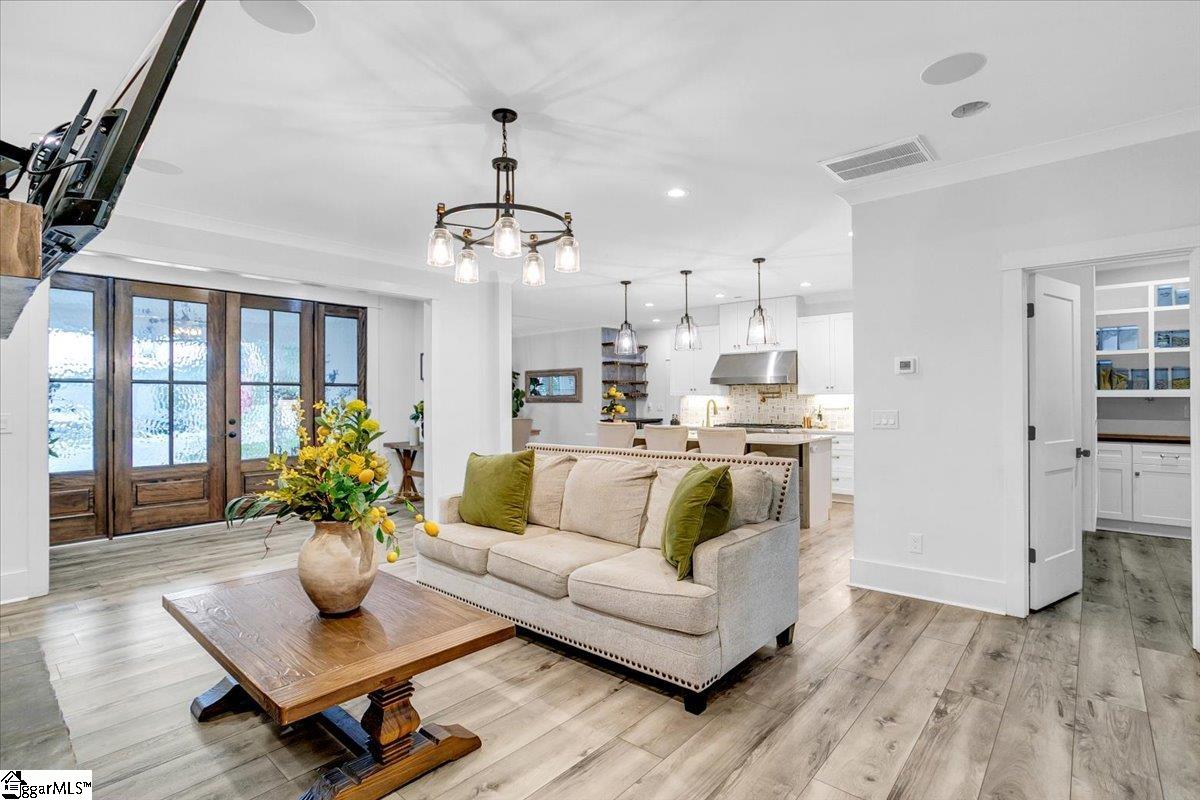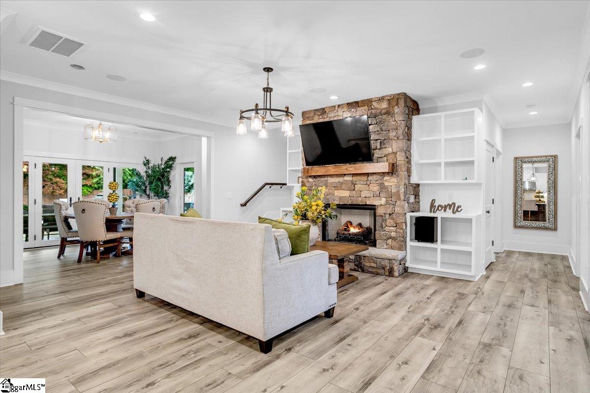 Exceptional Custom-Built Home in Prestigious Lakefront Community Welcome to a stunning blend of craftsmanship, luxury, and thoughtful design in the sought-after Stillwaters at Lake Robinson community, known for its picturesque views of Lake Robinson and a breathtaking mountain view backdrop. This exquisite custom brick home stands out with remarkable curb appeal, featuring a 74’ x 7’ wrap-around covered porch that sets a welcoming tone from the moment you arrive. Perfectly tailored for those who love to cook and entertain, the gourmet kitchen showcases Thermador wall ovens, a Thermador gas cooktop, elegant quartz countertops, designer tile backsplash, and statement lighting. A separate prep kitchen adds convenience and additional functionality — ideal for hosting or creating your own personal coffee bar. Extend your gatherings outdoors with a fully equipped outdoor kitchen on the covered patio and a cozy gas firepit on the adjoining open patio, surrounded by stamped concrete detailing. Step inside through double mahogany doors and be greeted by an open-concept layout filled with natural light and upscale finishes throughout. The spacious main level includes two bedrooms, one of which is a luxurious primary suite featuring private patio access, a spa-like bath with soaking tub and custom-tiled shower, and a walk-in closet with built-in shelving and ample storage. Additional highlights include a dedicated home office, a large walk-in laundry room with sink, bench, and built-in drop zone, plus a second entrance from the side driveway. Upstairs, you’ll find a theater room with surround sound, two more bedrooms, a second laundry room, and a beautifully tiled full bath. Multiple walk-in attics provide exceptional storage solutions. This property is built with energy efficiency in mind — including spray foam attic insulation, JELD-WEN windows and doors, and a gas tankless water heater. Outdoor enthusiasts and gardeners will appreciate the meticulously designed landscaping, expansive patio areas, and a 12’ x 12’ greenhouse/shed complete with electricity, a ceiling fan, built-in irrigation misters, and stamped concrete flooring. Rarely does a home of this quality and location become available. Don’t miss the opportunity to experience the lifestyle, luxury, and beauty this home has to provide in one of the Upstate’s most scenic communities.