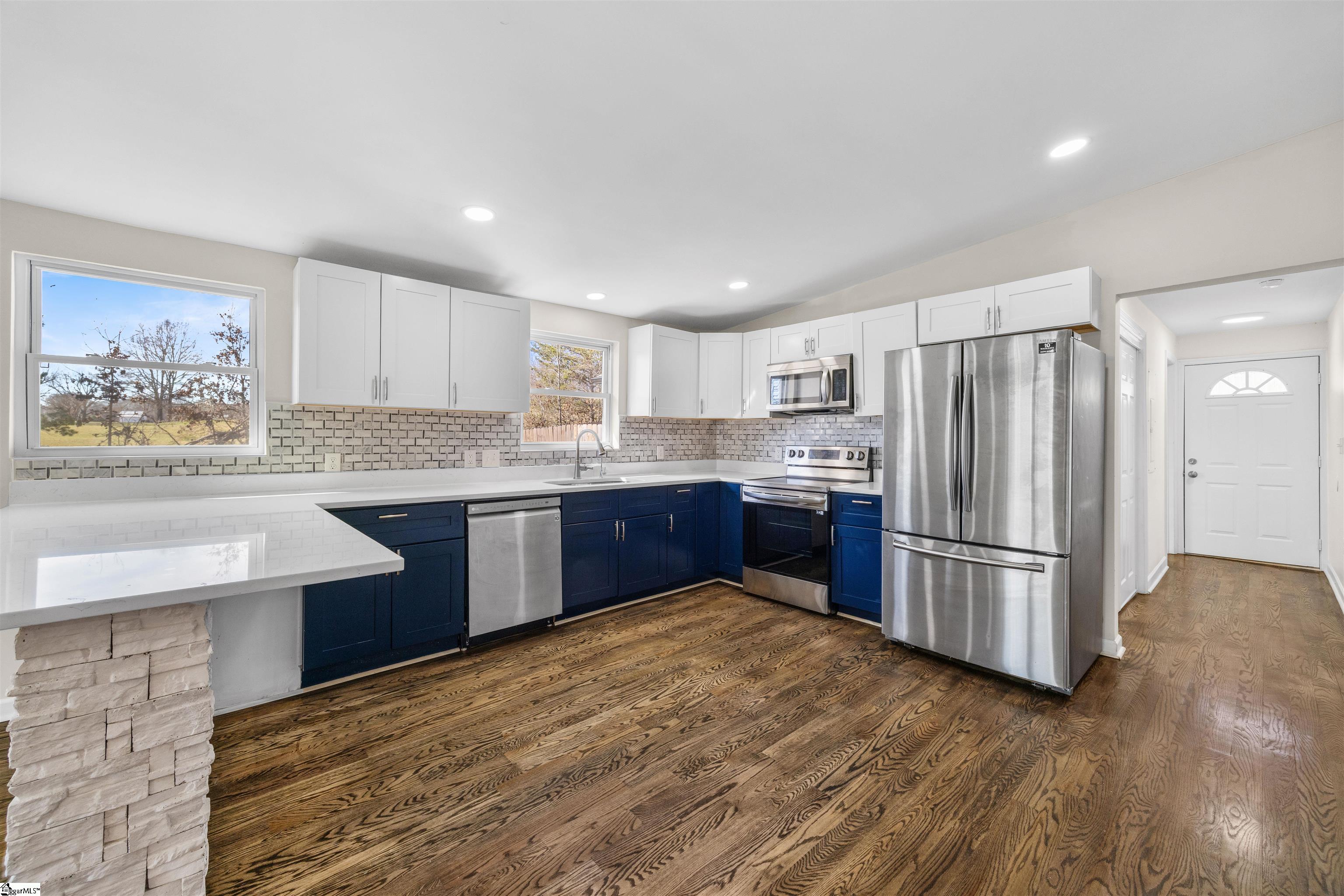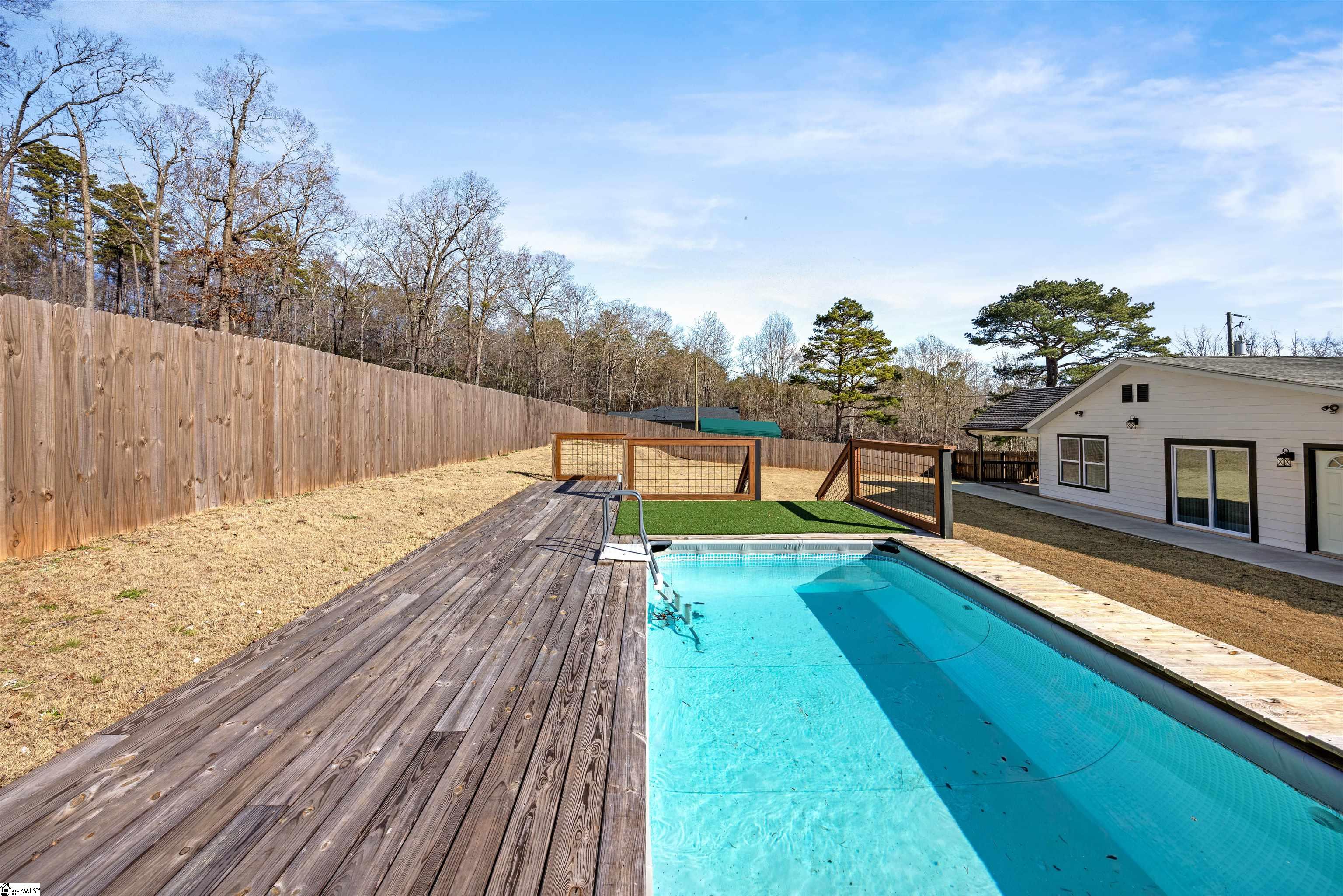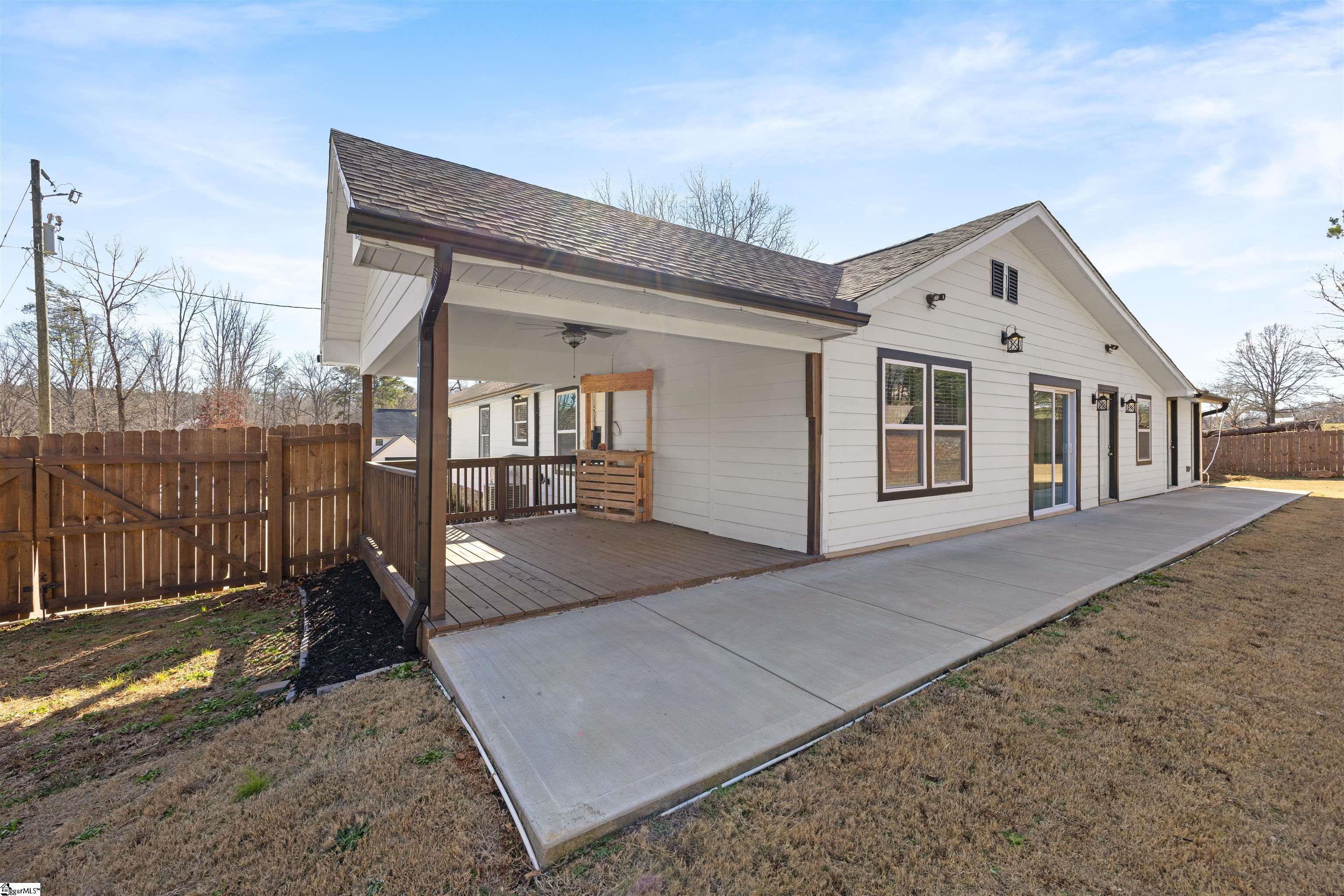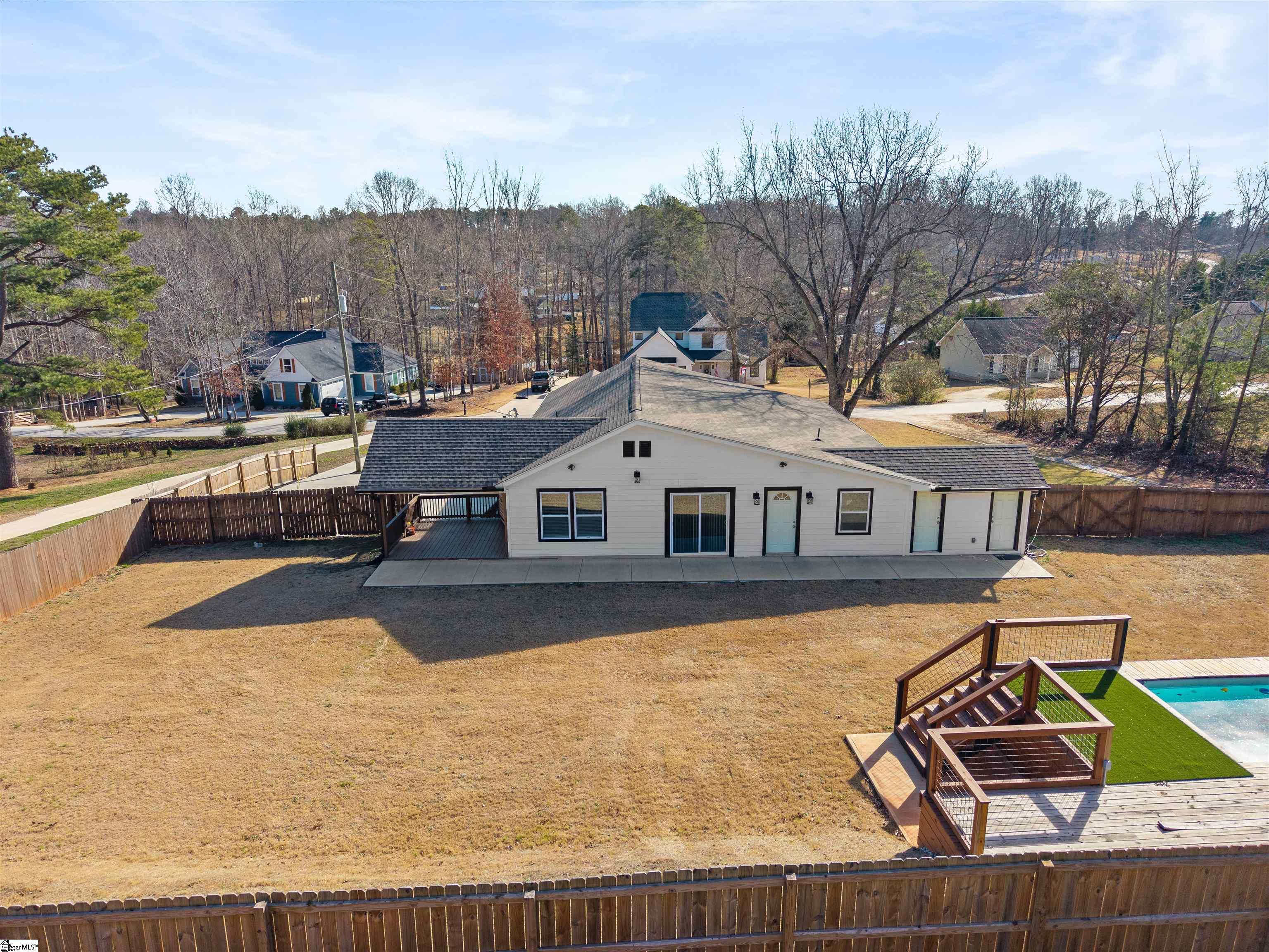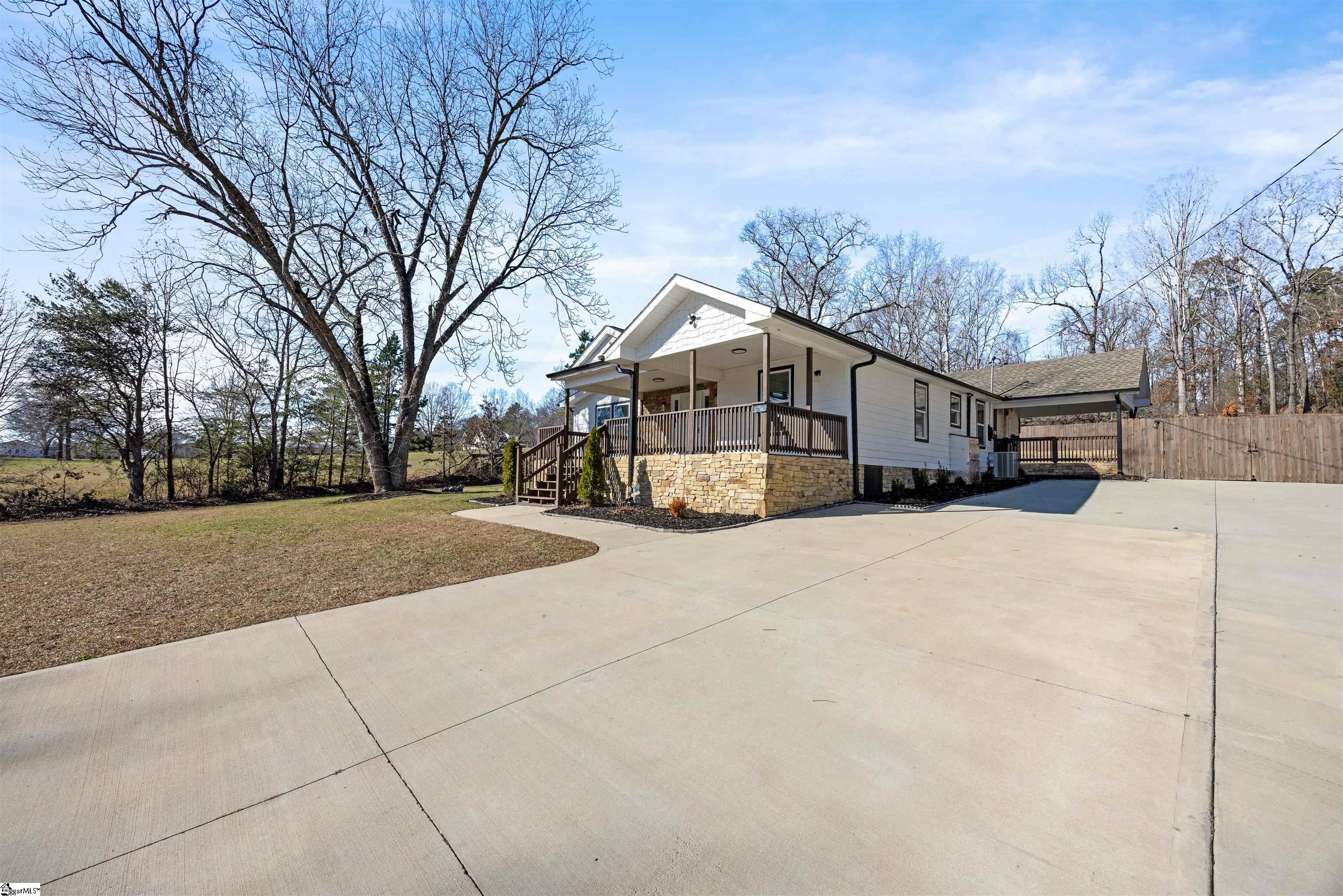 Welcome to this beautifully remodeled 3-bedroom, 2-bath home in Greer, perfectly situated on a half acre lot just 5 minutes from Lake Robinson and 10 minutes from downtown Greer. This charming bungalow offers the perfect mix of modern updates and peaceful outdoor living, with the added benefit that the land has already been subdivided, offering flexibility and future potential. As you arrive, you’ll notice the newly paved driveway and inviting outdoor spaces, including a large covered front porch and a vaulted covered side porch, ideal for relaxing or entertaining. The backyard features an above-ground pool and plenty of space to enjoy the outdoors. Inside, the home features an open-concept living and dining area that flows into a fully renovated kitchen with brand-new appliances. The layout includes two bedrooms and a hall bath with double sinks, along with a flex space perfect for a home office. The spacious primary suite offers a walk-in closet, dual vanities, a shower, and private access to the covered side porch. With thoughtful upgrades, multiple outdoor living areas, and a functional layout, this move-in ready home is a must-see. Schedule your showing today!