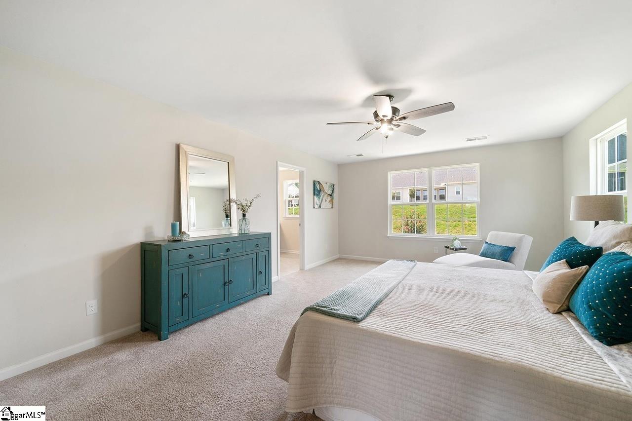 Welcome to this beautifully maintained, move-in ready 3-bedroom, 2.5-bath home located in the highly desirable Riverstone community on Greenville’s Eastside. Built in 2020, this spacious ~2,500+ SF two-story home offers a modern open-concept design, flexible living spaces, and quality finishes throughout—perfect for today’s lifestyle. Upstairs loft can be a 4th bedroom. Step inside to a bright and inviting main level featuring 9-foot ceilings, a large open living area, and seamless flow into the kitchen and dining spaces—ideal for both everyday living and entertaining. The well-appointed kitchen is equipped with granite countertops, gas cooktop, double wall ovens, built-in microwave, dishwasher, and a pantry closet, providing both style and functionality for any home chef. Upstairs, you’ll find a generous primary suite (approx. 14’ x 20’) complete with a walk-in closet and private bath featuring dual vanities and a spacious shower. Two additional bedrooms offer comfortable accommodations, along with a versatile loft/flex space—perfect for a media room, playroom, or second living area. A dedicated home office/study and convenient upstairs laundry room add to the home’s thoughtful layout. Additional highlights include: • Attached 2-car garage • Central heating & air • Ceiling fans and modern finishes throughout • Ample storage including attic access with pull-down stairs Situated on a manageable lot in a quiet cul-de-sac, this home is part of an amenity-rich community offering pool, clubhouse, and walking trails, enhancing both lifestyle and long-term value. Conveniently located just minutes from Pelham Road, I-85, shopping, dining, and top-rated schools, this property offers the perfect balance of comfort, convenience, and community. Don’t miss this opportunity to own a newer home in one of Greenville’s most sought-after areas. Schedule your private showing today.