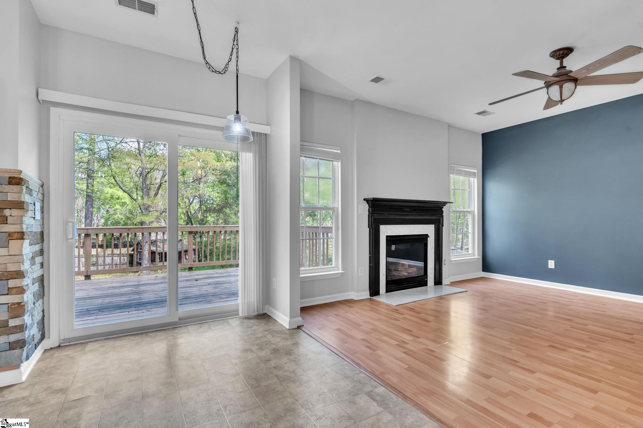 Welcome to this well-maintained 4-bedroom home tucked into a quiet cul-de-sac in the heart of Simpsonville, offering the space, privacy, and layout today’s buyers are looking for. With approximately 2,000 square feet, this home features a functional and inviting floor plan with a spacious living room centered around a fireplace and an easy flow into the kitchen and dining area. The kitchen offers ample cabinetry, stainless steel appliances, and direct access to the back deck, making it ideal for both everyday living and entertaining. Upstairs, the oversized primary suite features vaulted ceilings, abundant natural light, and a private en-suite bath. Three additional bedrooms provide flexibility for guests, a home office, or growing households. Recent improvements include brand new windows, fresh interior paint, and a new water heater, with additional opportunity for buyers to make future updates their own. Step outside to a fully fenced backyard with mature trees, offering a rare sense of privacy along with a spacious deck and fire pit area perfect for relaxing or hosting. Located in an established neighborhood just minutes from shopping, dining, and major commuter routes, this home combines convenience with a quiet, tucked-away setting.