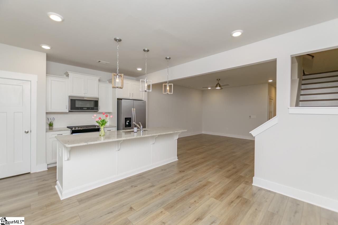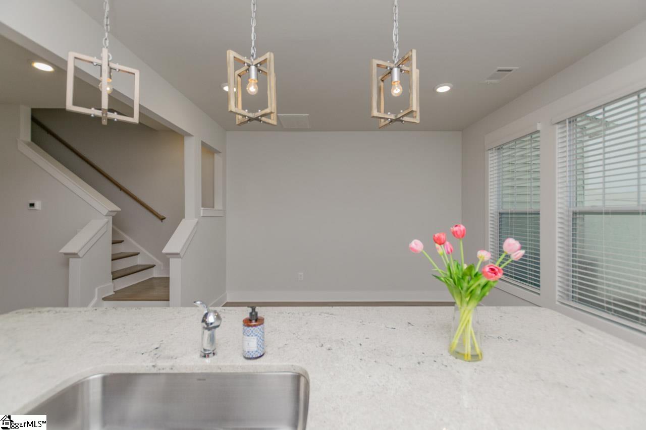 Live effortlessly in this low-maintenance Craftsman townhome just minutes from Furman University, Travelers Rest (5 minutes), and vibrant downtown Greenville (15 minutes). Enjoy scenic Paris Mountain views from the front door and bedrooms, blending peaceful surroundings with unbeatable convenience. Designed for easy living, the open-concept layout features 9’ ceilings, a spacious kitchen with quartz counters, a large center island, stainless appliances with a convection/ air fryer oven. The private primary suite offers a relaxing retreat with dual sink and a tiled shower, while a covered front porch and serene patio create inviting outdoor spaces. Added perks like a deep garage, outdoor storage, and lawn maintenance make everyday living simple. Lock-and-leave convenience meets lifestyle and location—perfect for enjoying everything Greenville has to offer.