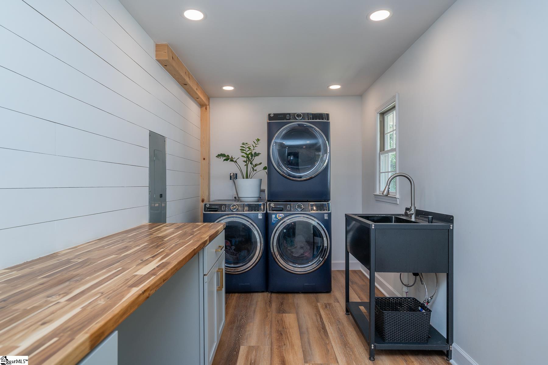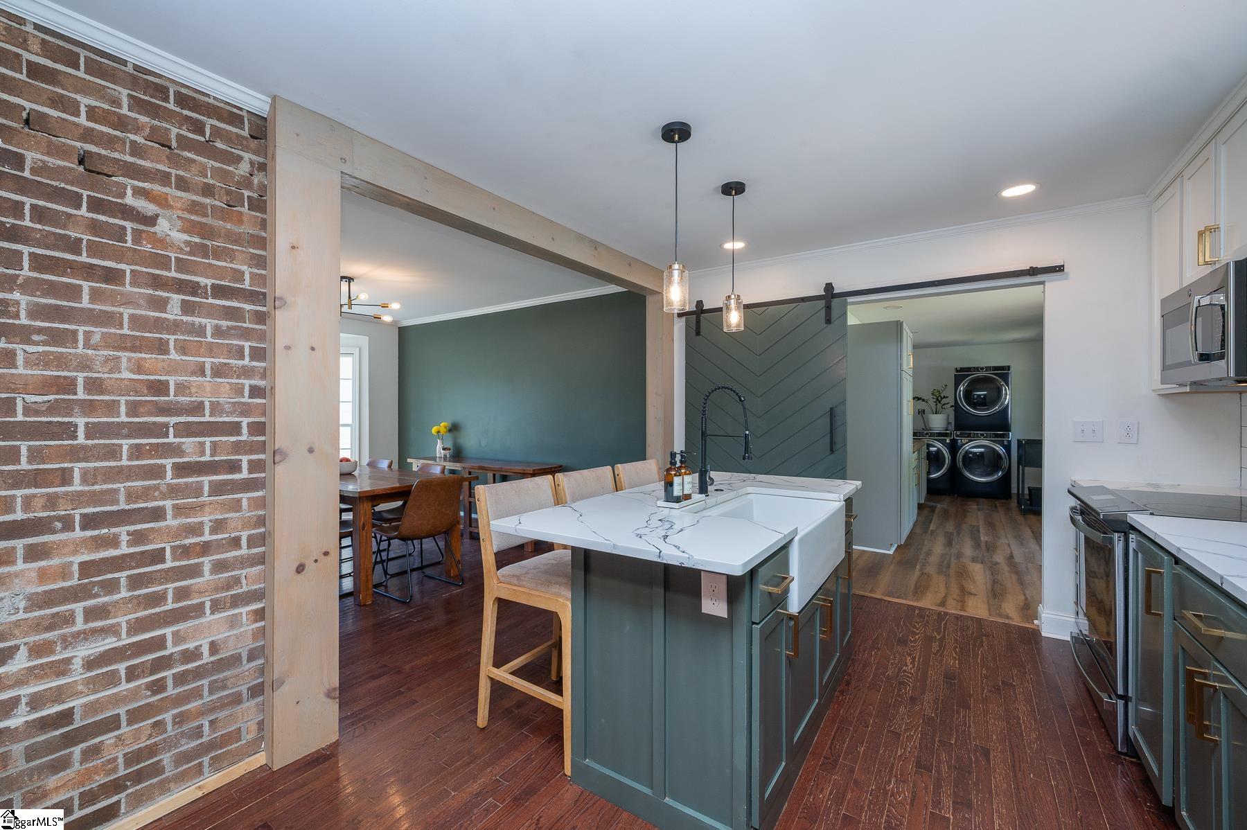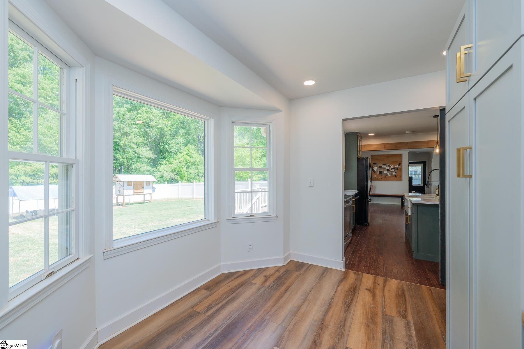 Beautiful home situated on over an acre of flat property, conveniently located just minutes from Travelers Rest, Greenville, and Greer. As you arrive, you’ll immediately notice the expansive front yard and large driveway leading to the attached two-car garage, complete with epoxy floors and its own separate AC unit—perfect for projects year-round. Across the driveway, an additional two-car garage/shop offers storage space above with potential for a future studio or man cave. A long sidewalk leads to the inviting covered front porch with a swing—perfect for relaxing on warm summer evenings while enjoying beautiful mountain views, you’ll love the spacious living room featuring an exposed brick fireplace, detailed trim, and warm, welcoming finishes. The updated kitchen offers stainless steel appliances, a farmhouse sink, quartz countertops, and a well-positioned bar—perfect for entertaining family and friends. Just off the kitchen, you’ll find a generously sized dining room and a large laundry room with ample storage, folding space/desk, and a utility sink. The primary suite is conveniently located on the main level and features a full bath with double sinks, a jetted tub, separate shower, and walk-in closet. Upstairs includes two additional bedrooms, a full bath, and a bonus room that can serve as walk-in storage or a private workspace. Step outside from the living room onto a spacious deck—ideal for grilling and entertaining—overlooking the fenced backyard, perfect for kids or pets. With a one-acre lot, mature neighborhood setting, four-car garage capacity, multiple workshop/storage options, and a fenced yard, this home truly checks all the boxes. Come see it today and make it yours!