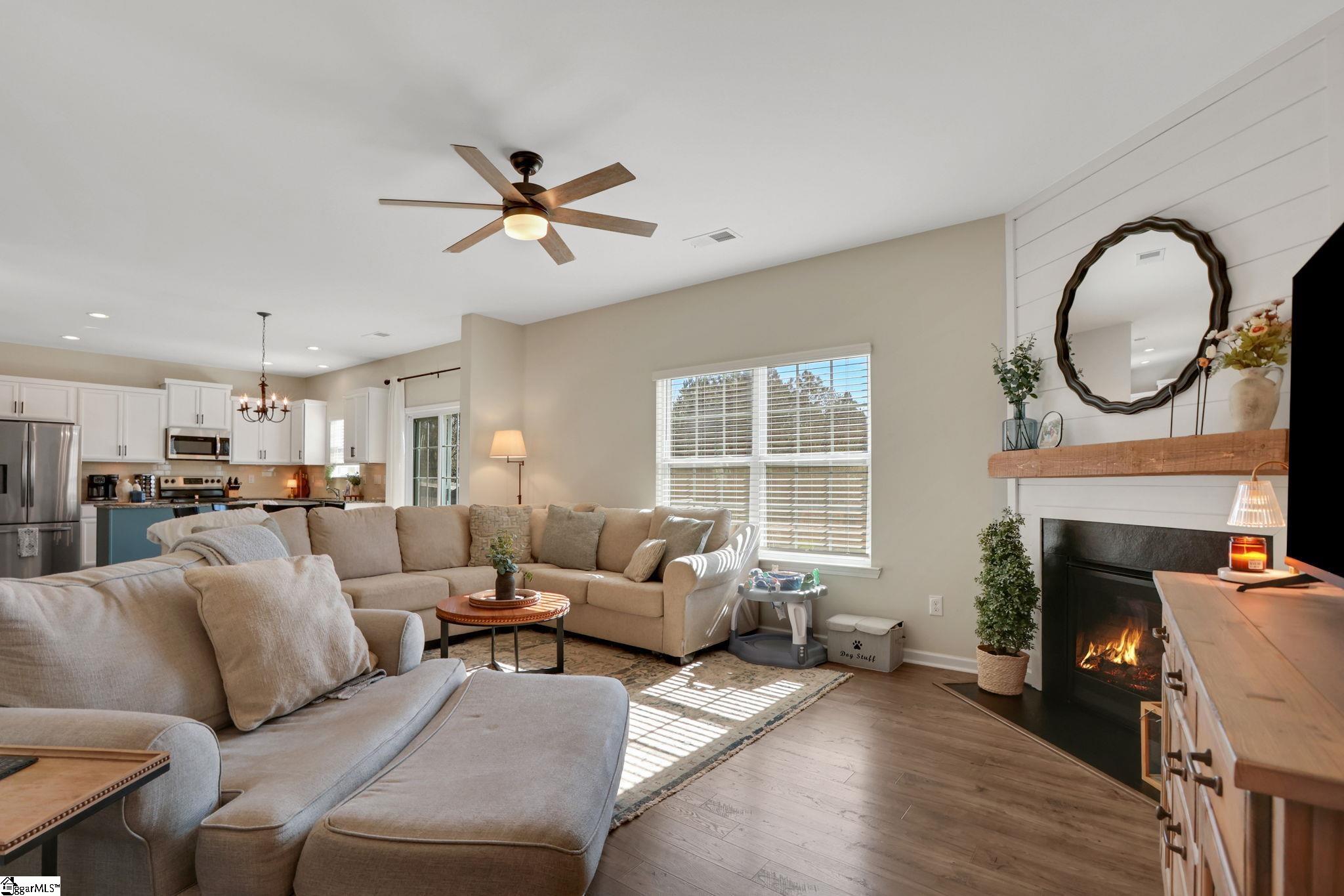 Welcome home to this beautiful 3 bedroom, 2.5 bath floor plan with a versatile loft, located in desirable Gulliver Oaks. Ideally situated near downtown Fountain Inn, this home offers easy access to shopping, dining, and I-385. The main level features a formal dining room and an open-concept layout perfect for everyday living and entertaining. The kitchen has white cabinets, granite countertops, stainless steel appliances, and all appliances convey including the refrigerator, washer, and dryer. The spacious great room overlooks the backyard and features a shiplap fireplace with gas logs. The primary suite has been completely renovated and includes new LVP flooring, a double-sink vanity, and an oversized walk-in shower. Two additional guest bedrooms share a hall bath, while the loft provides the perfect space for a home office, playroom, or flex area. The main level has LVP flooring throughout, some light fixtures have been upgraded, and there is a fully fenced backyard complete with a storage shed. The loft area with a closet can easily be transformed into a 4th bedroom. With its ideal price point, size, and location, this home truly has everything you’re looking for. Sellers are motivated.
