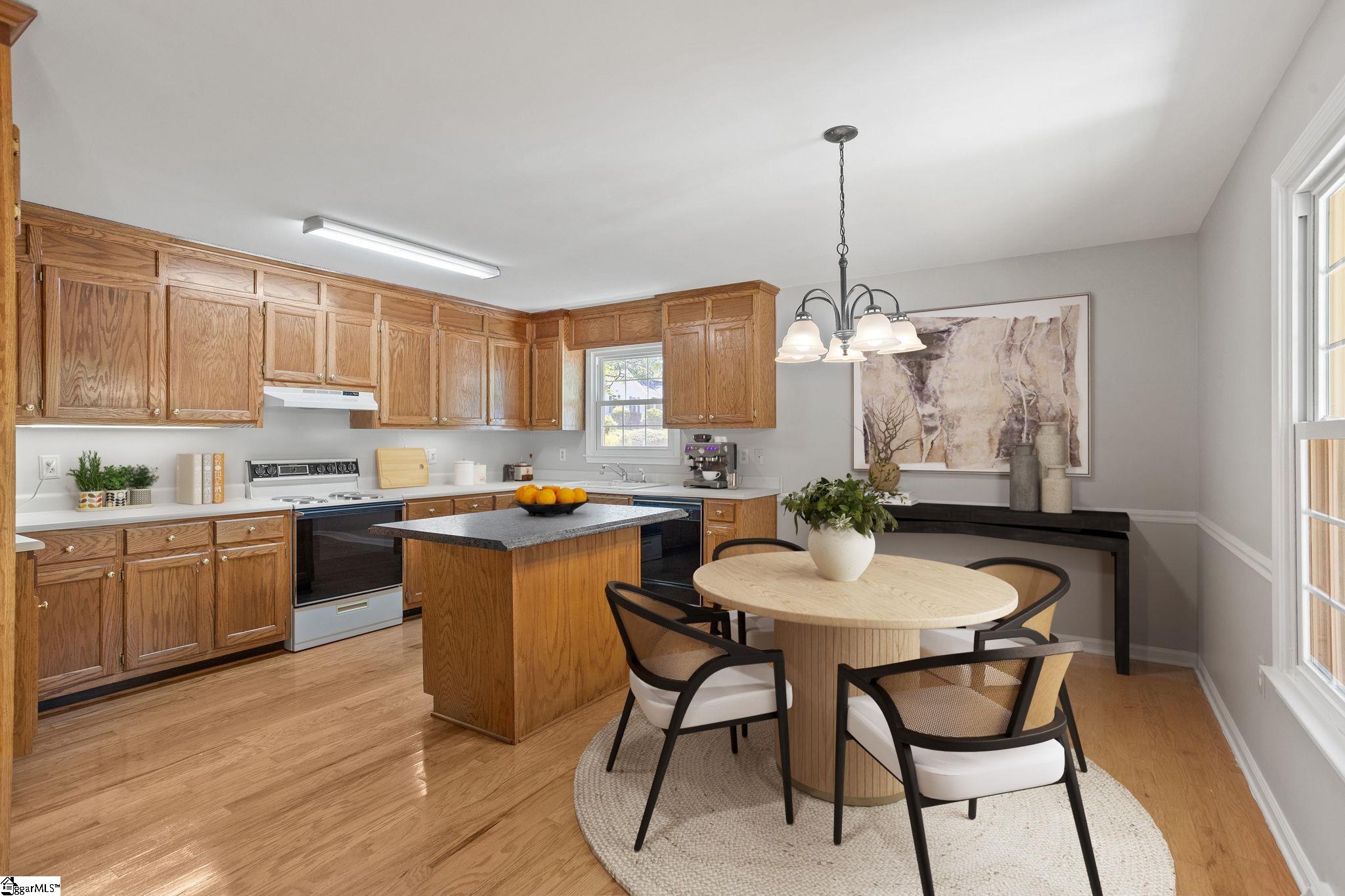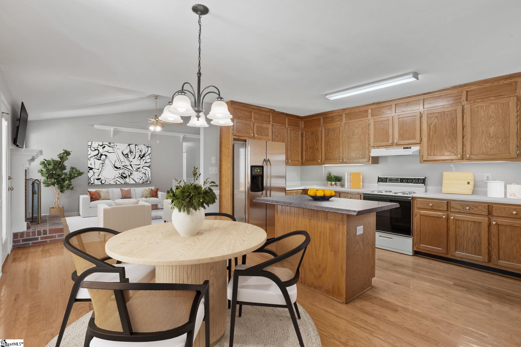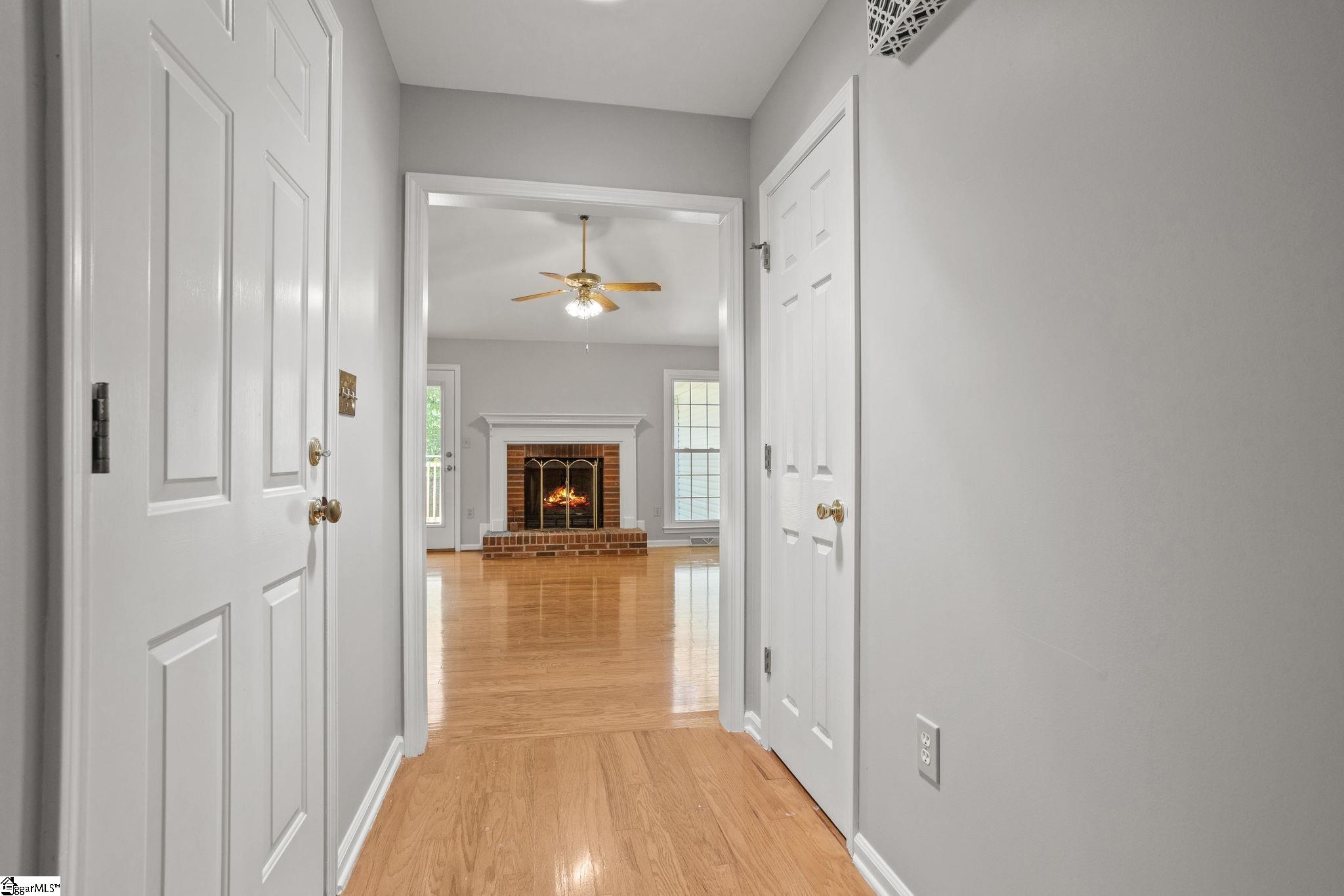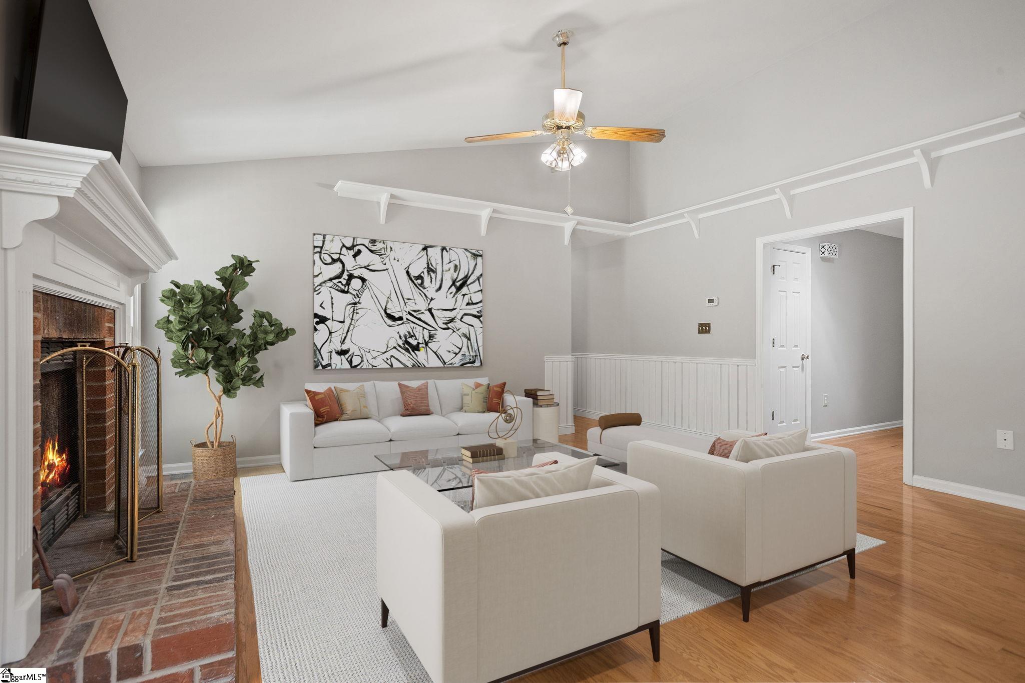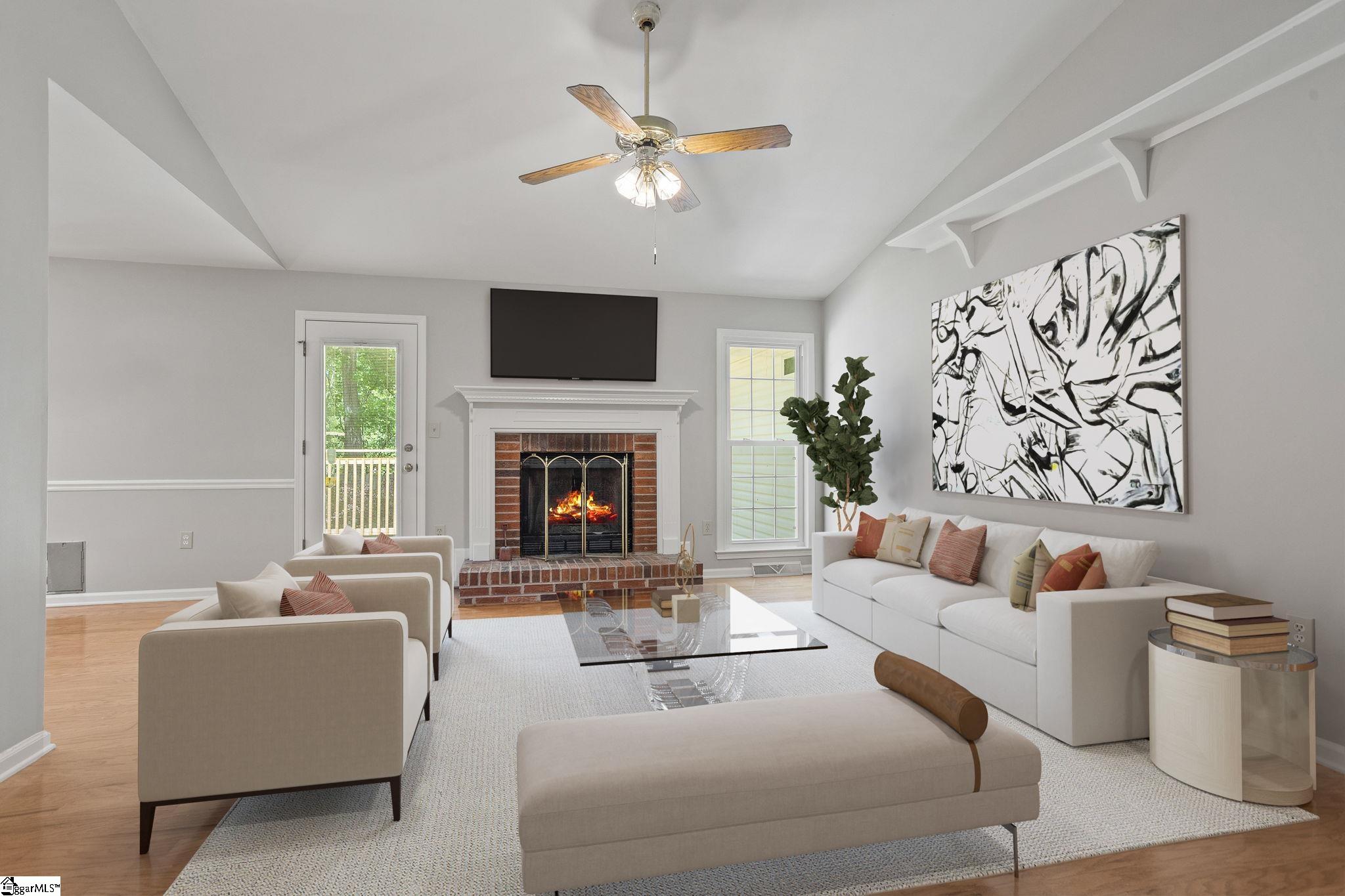 Great opportunity for a 3 bedroom, 2 bath ranch in the conveniently located Ambergate subdivision of Simpsonville! Just minutes from downtown Simpsonville, 16 miles to downtown Greenville, and with easy access to I 385, shopping, dining, and everyday conveniences. Inside, the bright great room features vaulted ceilings and a brick gas log fireplace with hardwood flooring throughout the main living areas. The open layout connects the living room, dining area, and kitchen making it ideal for everyday living and entertaining. The home features NEW interior paint throughout, brand NEW carpet in the secondary bedrooms, and a brand NEW deck just off the great room perfect for outdoor entertaining. The fully fenced backyard with privacy fence offers plenty of space to enjoy. The home has also been pre inspected, helping remove any guesswork.