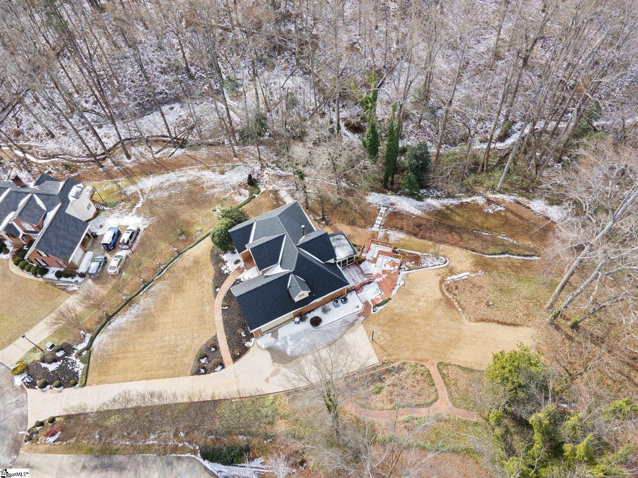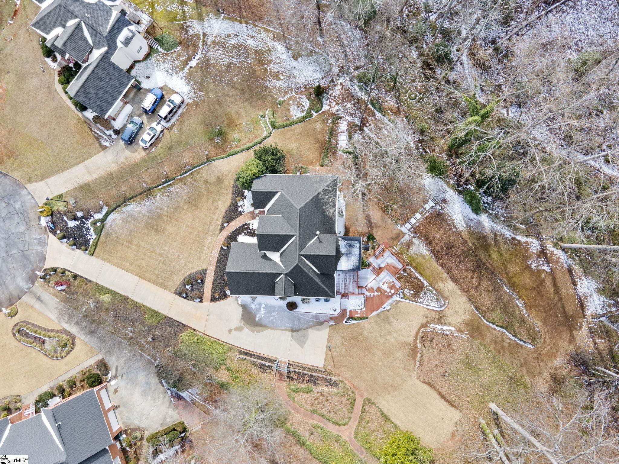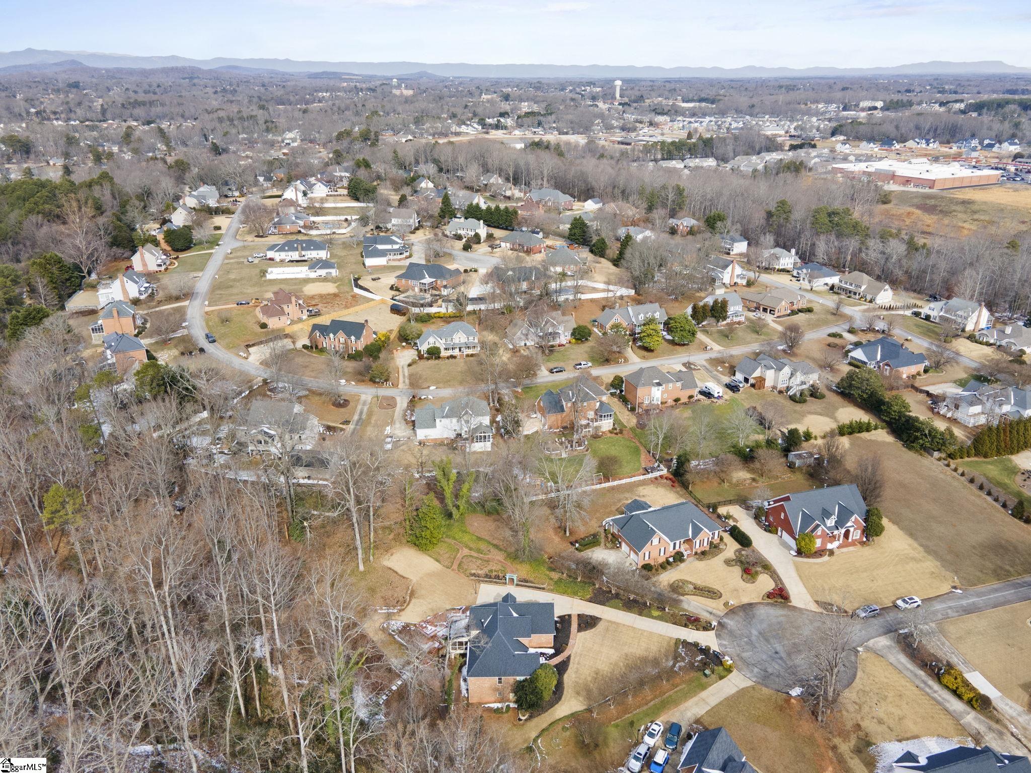 All-brick home tucked away at the end of a quiet cul-de-sac on a rare 1-acre lot in the Glen Laurel community. This well-maintained property offers privacy, mature landscaping, and multiple outdoor living spaces including a screened porch and multi-level decks. Inside, the main level features hardwood floors, fresh interior paint in select areas, and an open kitchen with granite countertops, center island with prep sink, and ample cabinet space. The kitchen flows into a comfortable keeping room with a double-sided fireplace shared with the formal living area, ideal for everyday living and entertaining. A formal dining room with butler’s pantry adds classic function and charm. The primary bedroom is on the main level with a spacious en-suite bath offering a jetted tub, separate shower, and large walk-in closet. Additional bedrooms are generously sized, most with walk-in closets. The fully finished basement expands the living space significantly and includes a kitchenette, full bathroom, den, media room, and a flexible bedroom space (closet can be added if desired). Ideal for guests, multigenerational living, or recreation. Located just minutes from Easley, shopping, dining, Ingles, and Calhoun Memorial Highway, with quick access to I-85 and an easy drive to Greenville. Glen Laurel offers neighborhood pool and tennis courts with low HOA fees. A solid home with space, privacy, and a layout that works.