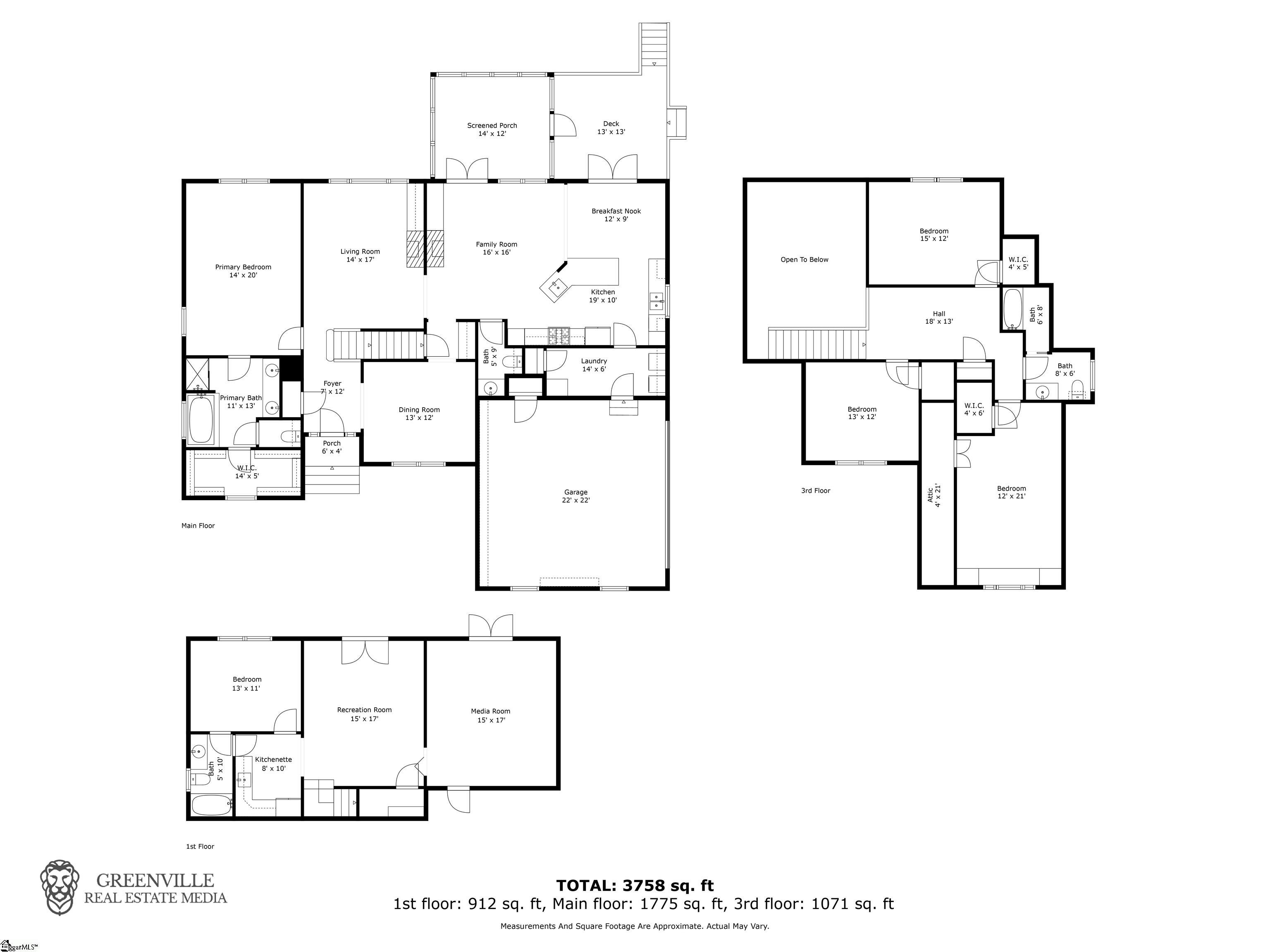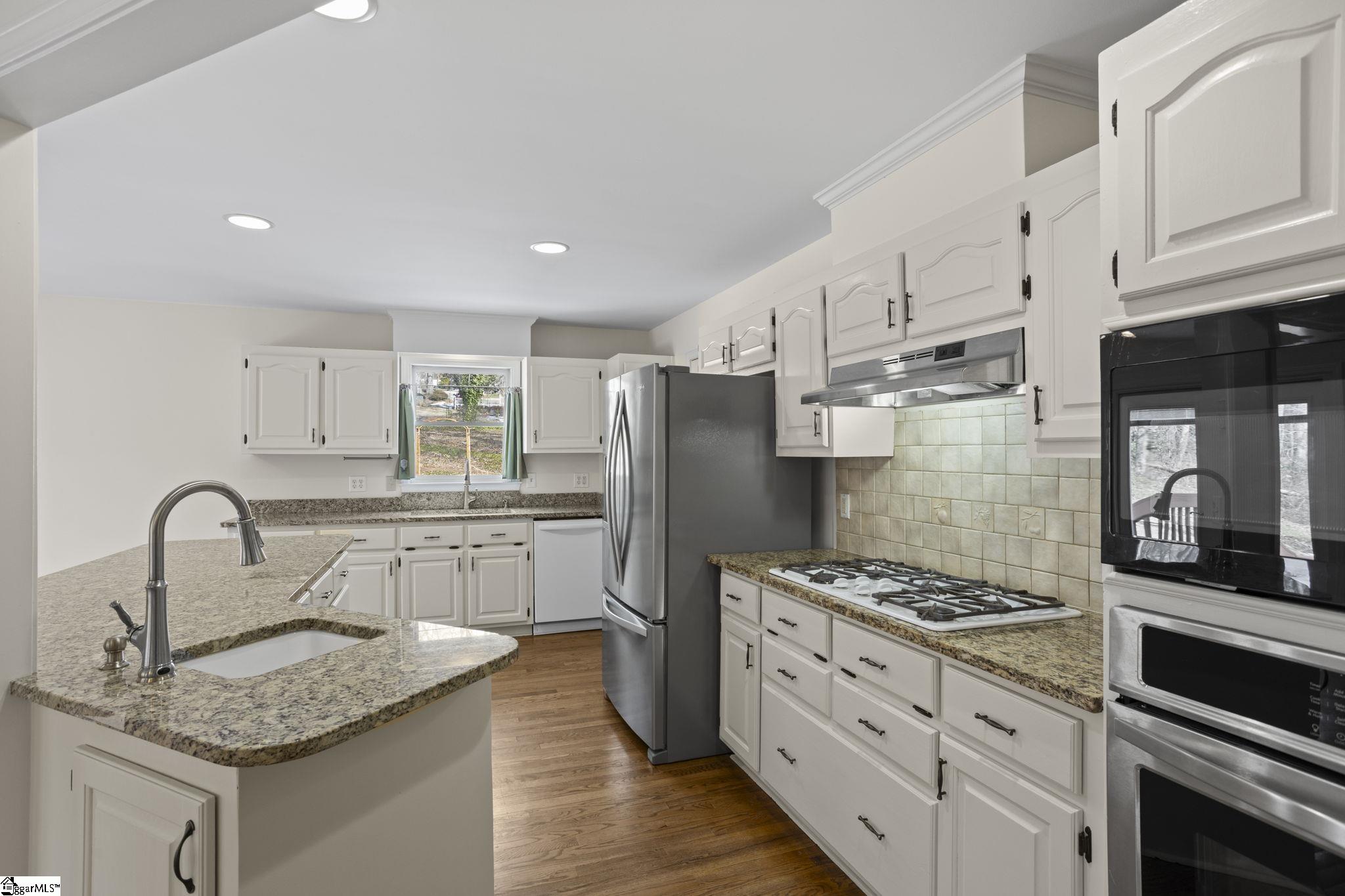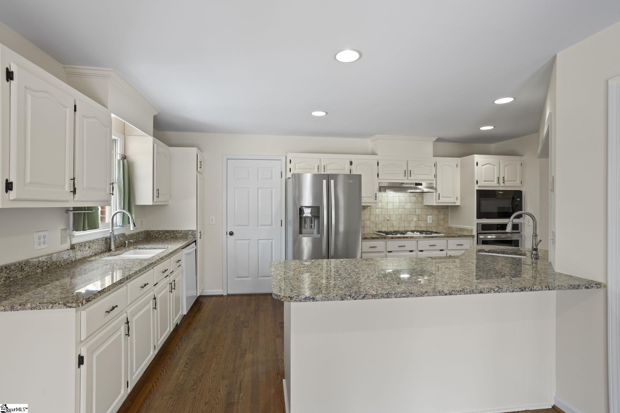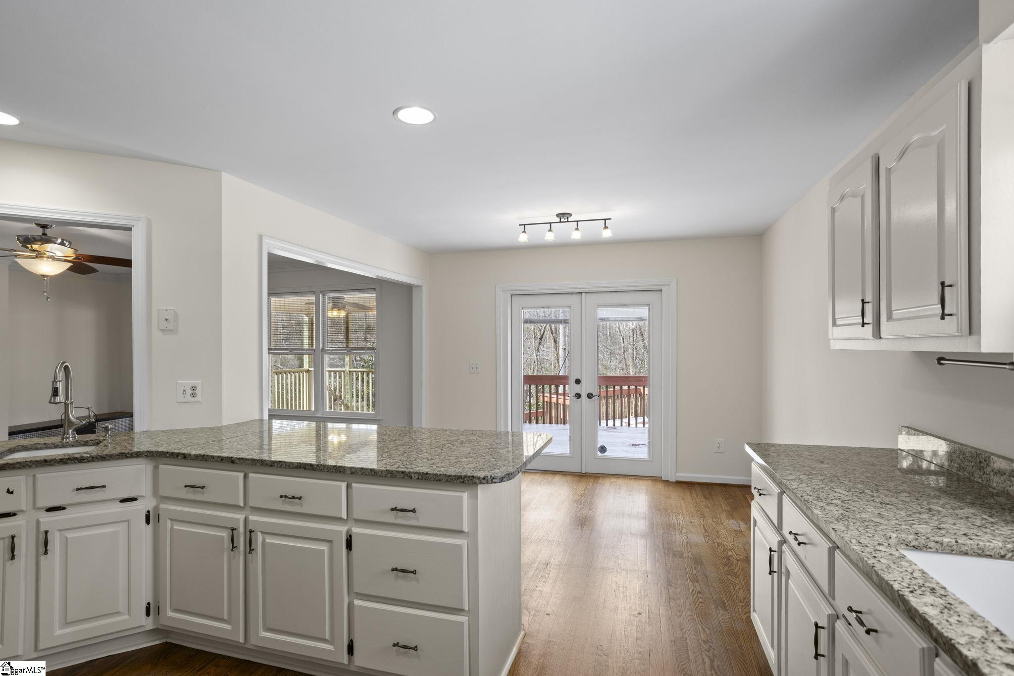 All-brick home tucked away at the end of a quiet cul-de-sac on a rare 1-acre lot in the Glen Laurel community. This well-maintained property offers privacy, mature landscaping, and multiple outdoor living spaces including a screened porch and multi-level decks. Inside, the main level features hardwood floors, fresh interior paint in select areas, and an open kitchen with granite countertops, center island with prep sink, and ample cabinet space. The kitchen flows into a comfortable keeping room with a double-sided fireplace shared with the formal living area, ideal for everyday living and entertaining. A formal dining room with butler’s pantry adds classic function and charm. The primary bedroom is on the main level with a spacious en-suite bath offering a jetted tub, separate shower, and large walk-in closet. Additional bedrooms are generously sized, most with walk-in closets. The fully finished basement expands the living space significantly and includes a kitchenette, full bathroom, den, media room, and a flexible bedroom space (closet can be added if desired). Ideal for guests, multigenerational living, or recreation. Located just minutes from Easley, shopping, dining, Ingles, and Calhoun Memorial Highway, with quick access to I-85 and an easy drive to Greenville. Glen Laurel offers neighborhood pool and tennis courts with low HOA fees. A solid home with space, privacy, and a layout that works.