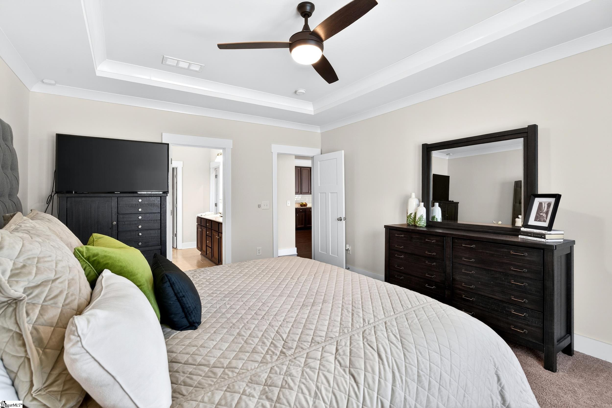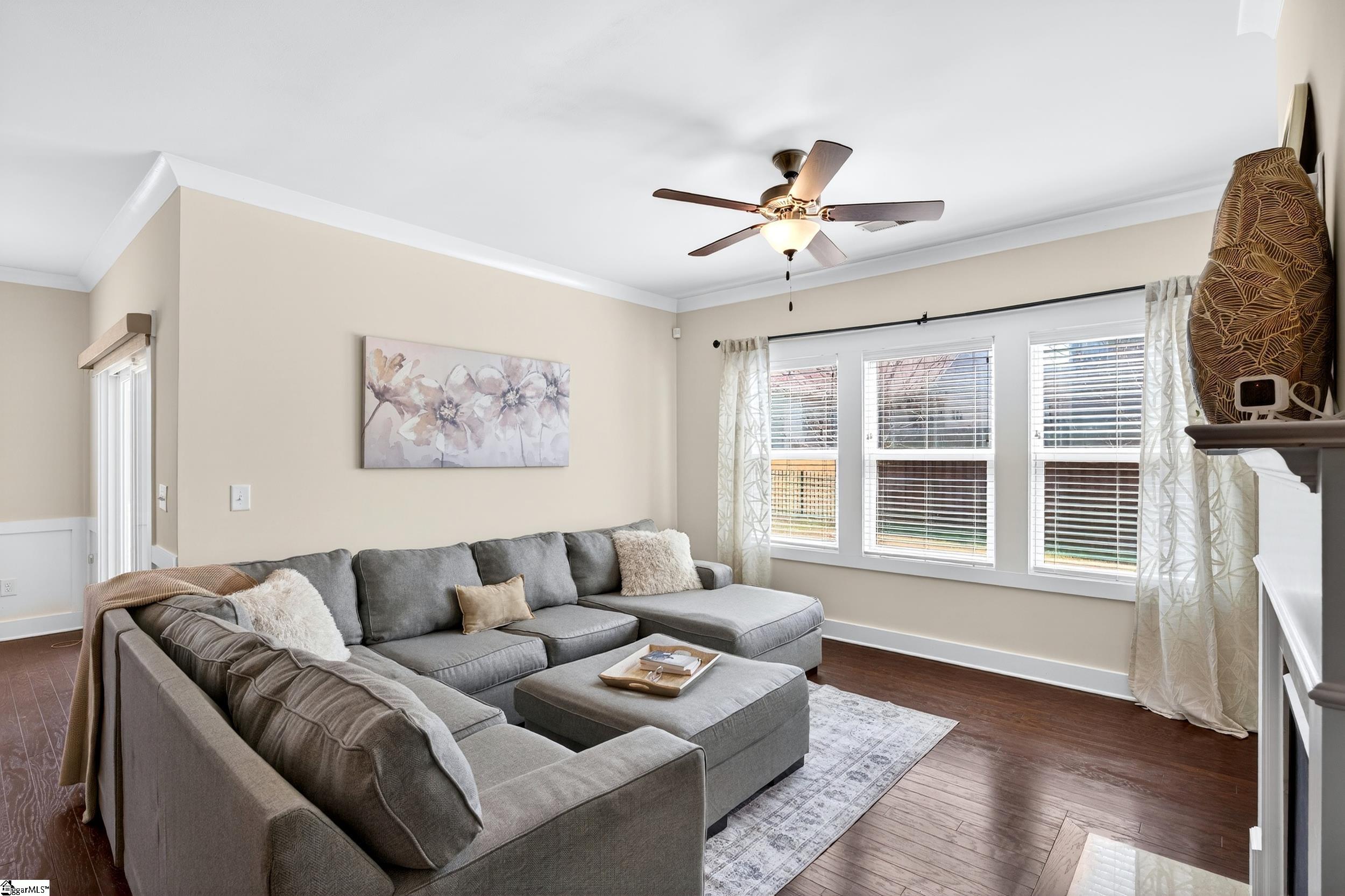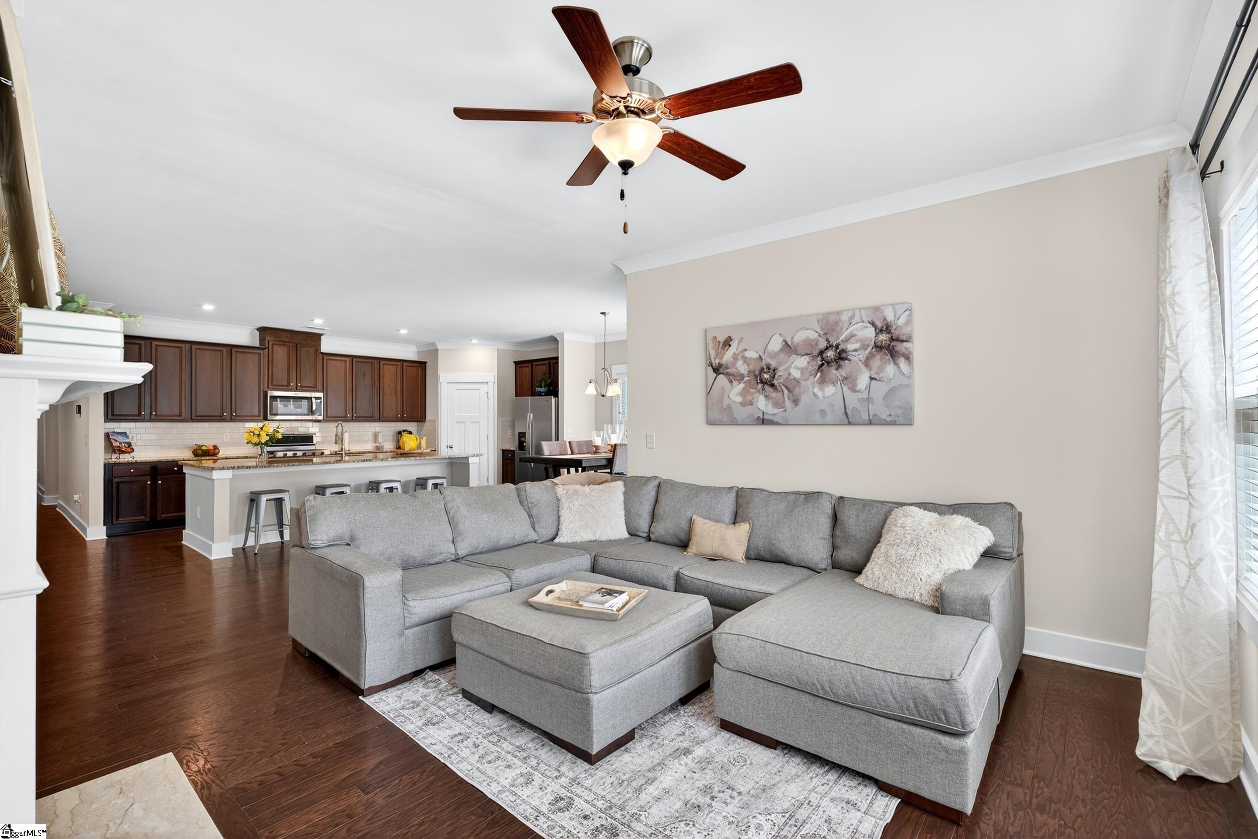 Welcome to 209 Bank Swallow Way in the sought-after Lost River subdivision! This energy-efficient ranch home with foam insulation offers an open-concept floorplan featuring wood flooring, crown molding, 9-ft ceilings, abundant natural light, and a cozy fireplace. The split-bedroom layout provides privacy, with a spacious primary suite showcasing a trey ceiling, large walk-in closet, and ensuite with dual vanities, garden tub, and separate tiled shower. The kitchen includes stainless steel appliances, recessed lighting, a walk-in pantry, and a large granite island, with an eat-in area leading to a covered patio and private, tree-lined backyard. Additional highlights include a spacious laundry room and inviting rocking chair front porch. Enjoy resort-style community amenities including a junior Olympic pool, tennis/pickleball courts, playground, pavilion, and walking trails, plus year-round neighborhood events.
