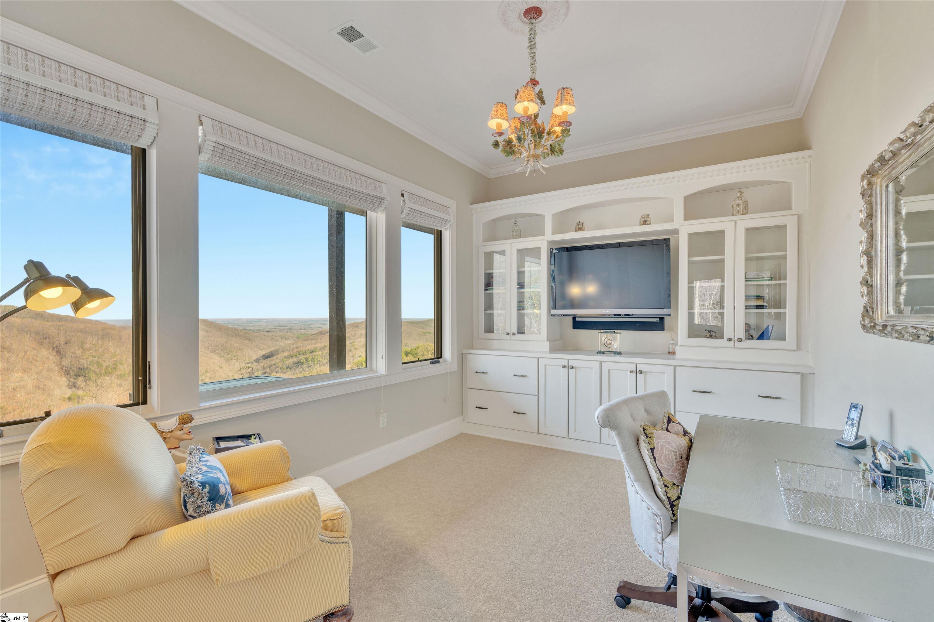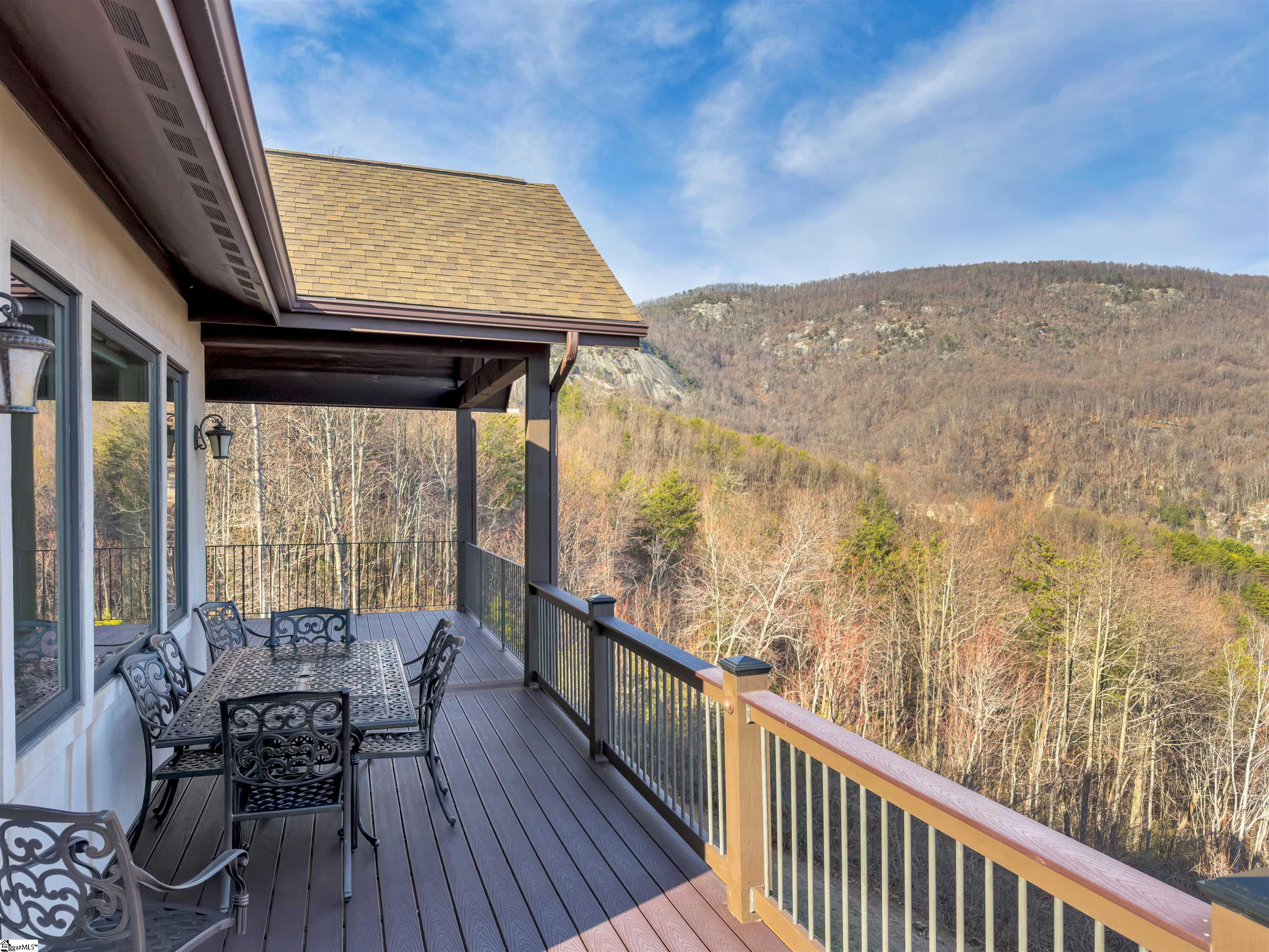 A unique and precious find, 209 Craggy Rock Lane is a European inspired mountain villa created as a luxurious retreat to embrace and complement its gorgeous natural setting and capture stunning mountain views. This gem is located on 15+ private wooded acres with some of the most unique and unobstructed views in Greenville County. Here peaceful luxury living is at its best with professionally landscaped gardens and custom exterior lighting enhancing the home, driveway, courtyard, patios, and the personal putting green. The home is situated to capture views throughout and is surrounded by its private acres which slope away from the house to protect both long- and short-range panoramic views of varying elevations. — This 4 Bedroom 3.5 Bath beauty is located in the foothills of the Blue Ridge Mountains in the gated, golf and fitness community of Cliffs at Glassy Mountain where club members golf and play tennis year-round as winters are mild, southern summers are comfortable, and clear rural skies sparkle with bright stars and spectacular sunrises and sunsets. Enter the home from the courtyard with ample parking to the stone Portico with custom filigree iron, glass, and wood doors into the Foyer with soaring ceiling. The Foyer opens to a breathtaking Living Room with beamed vaulted ceiling, stone fireplace, built-ins, and glass doors leading to the covered deck framing dynamic views throughout the seasons. Ideal for entertaining, the floor plan flows comfortably from the Living Room to Dining and into the fully equipped Kitchen with sweeping views, ample granite counters, custom cabinets, breakfast bar, pantry, and access to the Grilling Deck. The main level private Primary Suite has stunning views, a trey ceiling, California closet, and sumptuous En-Suite with soaking tub and an oversized shower. The Laundry, Powder Room, and access to the 2 Bay oversized garage are also located on this level. The terrace level has a split floor plan with 3 Bedrooms, (2 are currently used as offices), 2 full Baths, a central Rec Room with access to the covered patio and a wet bar with a full refrigerator. Two unfinished storage areas are also found on this level. Convenient to the east gate of Cliffs at Glassy, this home is an easy commute to GSP international Airport and Travelers Rest, Landrum, and Greenville, SC as well as Tryon, Hendersonville and Asheville, NC. A Club Membership with access to all 7 Cliffs Clubs is available as a separate purchase.