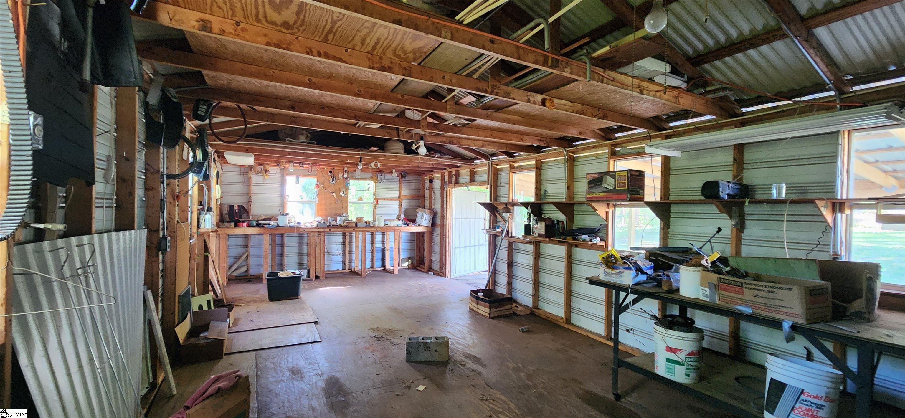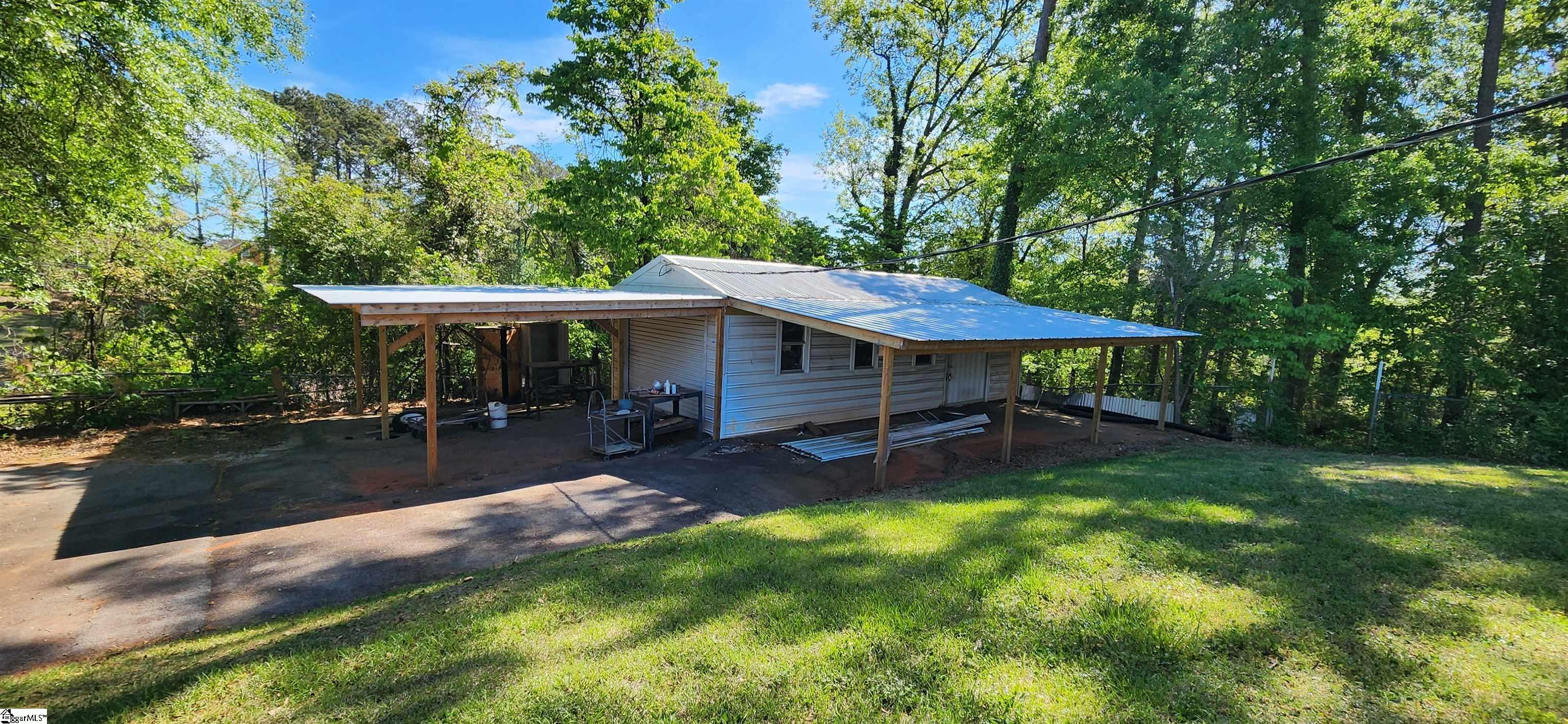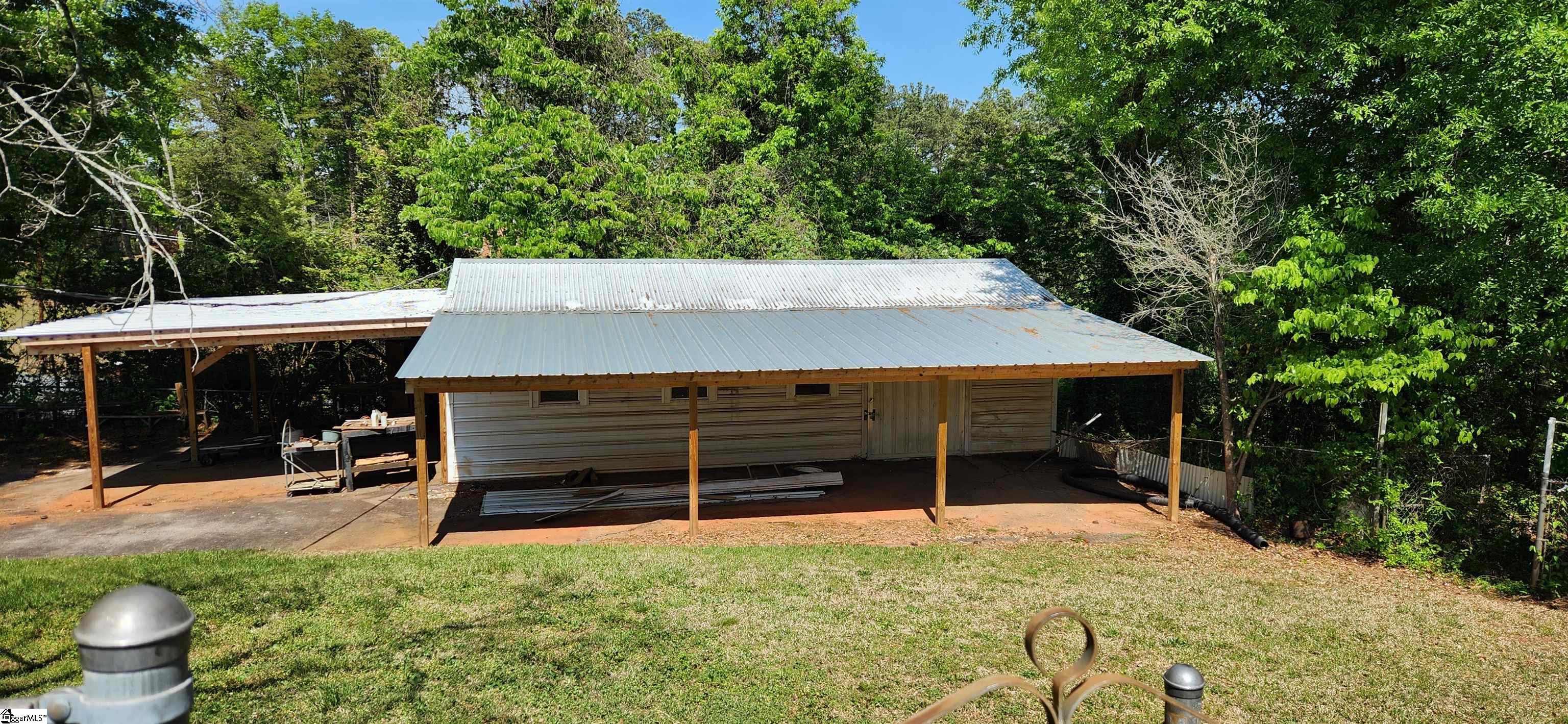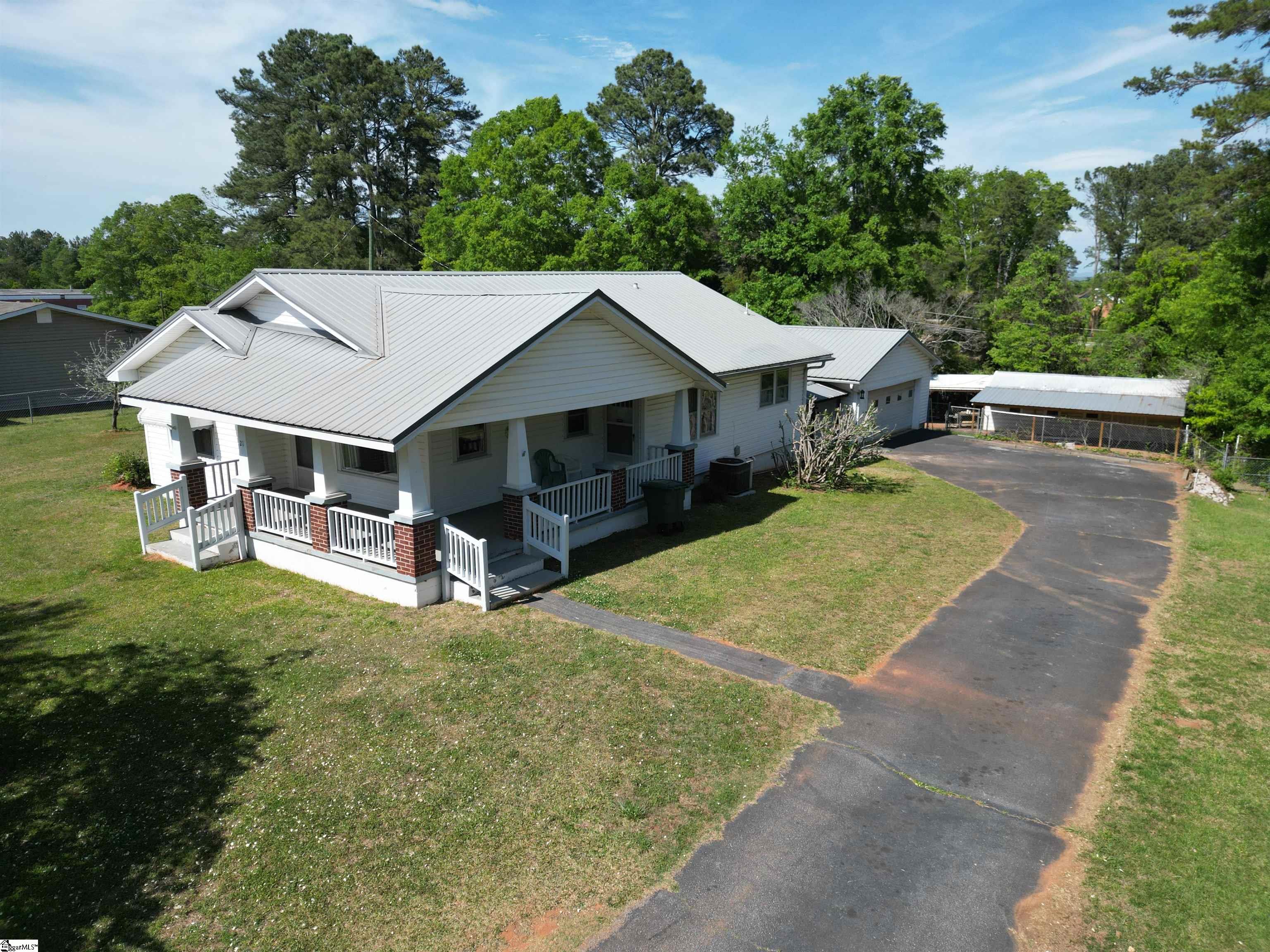 This charming, classic home tucked away on a small street close to Seneca’s commercial corridor holds a lot of history and a lot of possibilities. From a spacious yard with multiple fenced areas, mature flowering bushes and trees, and numerous outbuildings, the options are almost endless. The detached garage has multiple entry and exit points, perfect for parking cars and keeping yard equipment. At the back of the yard sits a separate workshop, with 2 covered porches and plenty of room to work inside. A paved breezeway from the detached garage leads to the walk-in crawlspace with ample storage space below the house. At the front of the house is a covered porch wrapping from the living room entrance to the kitchen entrance. The front opens into an inviting living room with a gas fireplace and built-in shelving. Beyond the living room to the right lies the kitchen and eating area, with a laundry room leading to the backyard. The three bedrooms are situated at the left side of the house. The primary bedroom features an en-suite bathroom with a walk-in shower and tub. The second bathroom sits in the hall by the bedrooms for ease of access. The wooded surroundings of Jantzen Court give the feeling of a cozy small neighborhood, but the home is less than a minute from highway 123 and has immediate access to Seneca amenities such as shopping, groceries, and entertainment. The drive to Clemson is less than 20 minutes, traffic permitting.