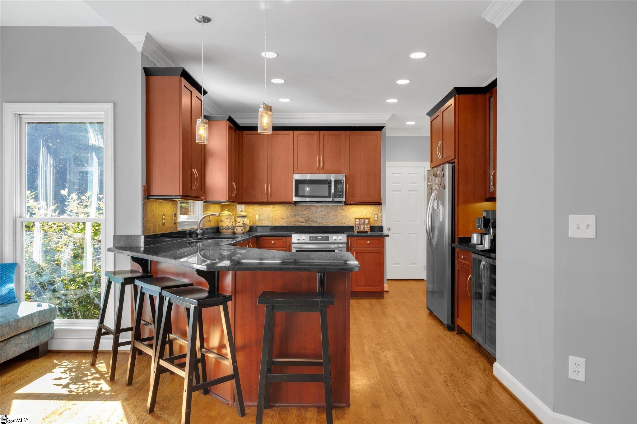 Priced Below Appraisal Value!!! Beautifully maintained home in the sought-after Neely Farm community! This house sits on a picturesque lot with mature landscaping in a charming garden, both offering privacy and curb appeal. It features four bedrooms plus a large bonus room, a valuable distinction in this Neighborhood. Recent upgrades include a three year-old roof, brand new HVAC, new range and microwave. House has been freshly painted throughout. Inside, you will find real hardwood floors on both levels, generous natural light, and thoughtful details, such as custom shelving in the walk-in closet that remains with the home. Storage is abundant with a floor attic, a spacious high crawl space with shelving and additional storage under the porch. Step outside to your own backyard retreat: a tile screening porch and wood deck overlooking a brick patio, irrigated yard, a small pond and beautiful hardwood trees, perfect for relaxing and entertaining. This home is also energy efficient, featuring added attic insulation, an attic tent, dual flush toilets, stainless steel dishwasher with a split load capability, tankless water heater, smart, thermostats, and LED lighting throughout. A rare combination of updates, efficiency, and outdoor living! This beautiful and unique home in Neely Farm, one of the most desirable communities in the Upstate where residents enjoy exceptional amenities, and convenient access to restaurants, shopping and top rated schools, is ready for its new owner.