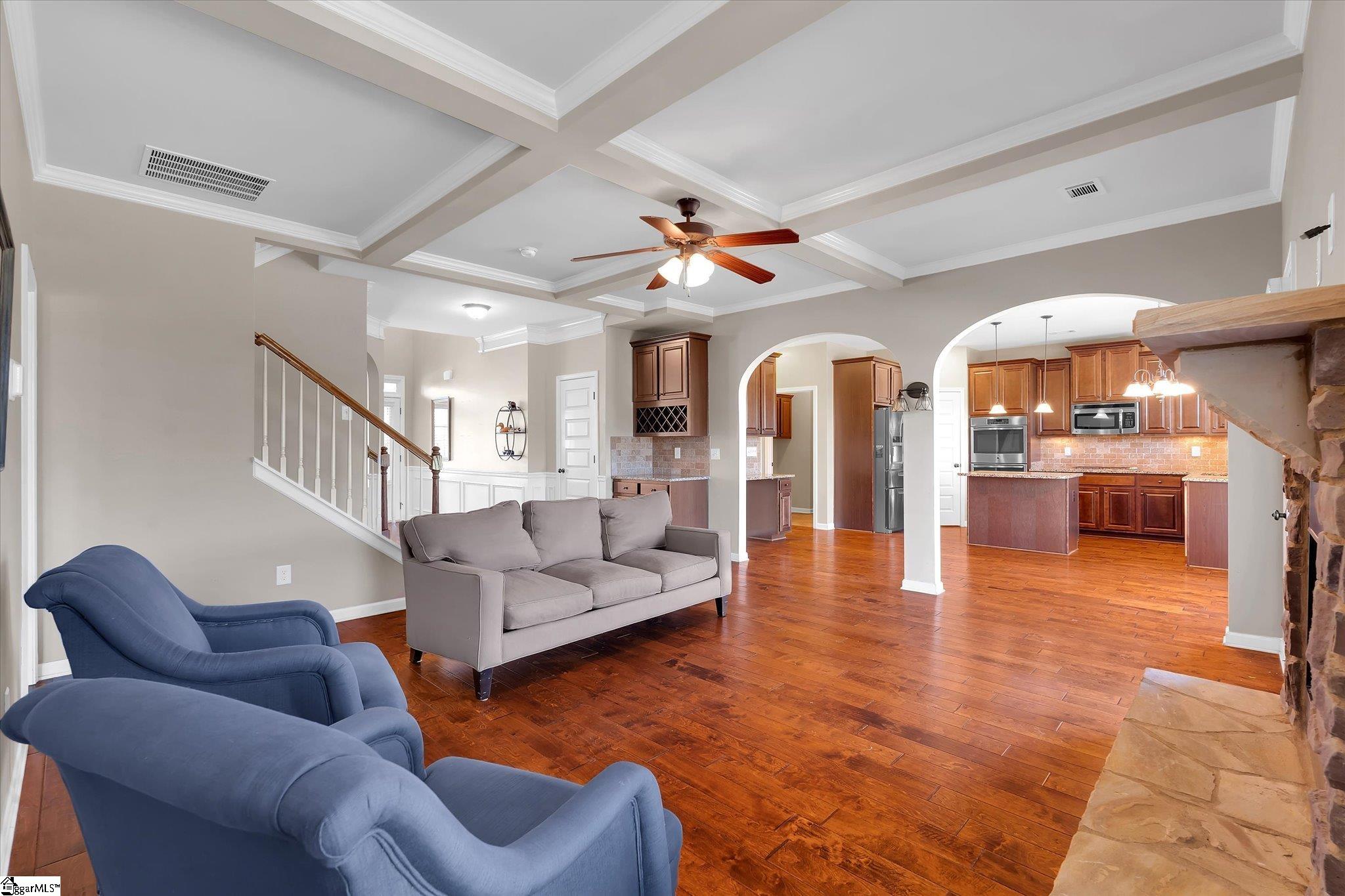 Welcome Home! This Craftsman style 4-bedroom/3 1/2 bath home is located in the Wimberly Farms community. Conveniently located is an understatement. Walking distance to JB Red Owens Park, Easley Recreation and Athletic fields. Convenient to shopping, and restaurants. The exterior has partial brick veneer, stone, and hardboard siding that makes the home attractive. The attached 2-car garage has side/rear entry. The driveway was enlarged to accommodate multiple cars easily. This home is meticulously maintained. There are multiple HVAC units. Inside has cathedral ceilings, granite countertops, wood, ceramic tile, and carpeted flooring. The kitchen is large in size and includes a butler pantry. The great room offers a lifetime of enjoyment for family and friends. Relax by the wood burning fireplace which is already equipped for an easy gas conversion if you prefer. The primary bedroom is on the main level with a full bath and sitting room. Remaining bedrooms are on upper level and large in size. This is a great home, in a great location, at a great price! Schedule your private showing today!