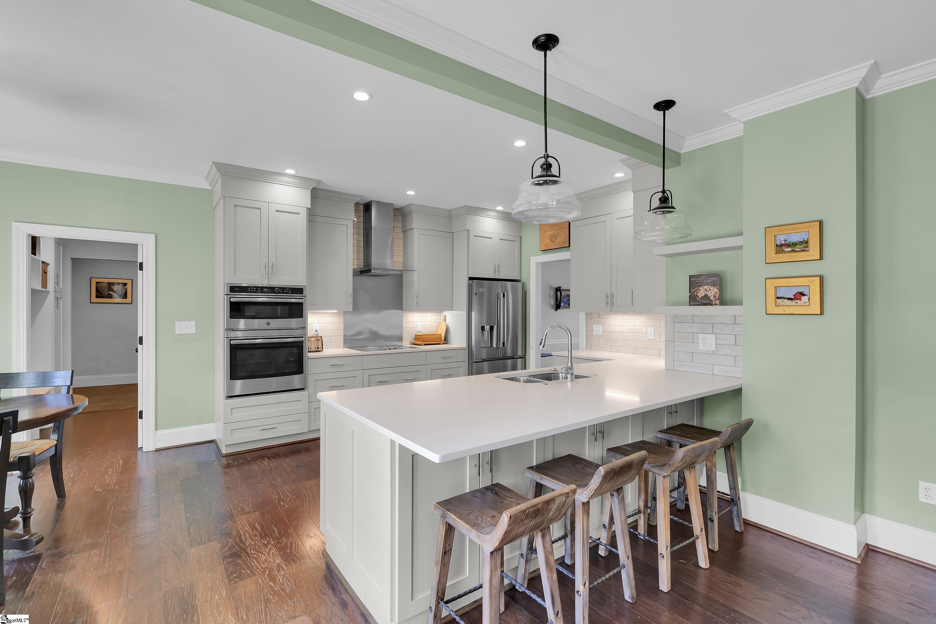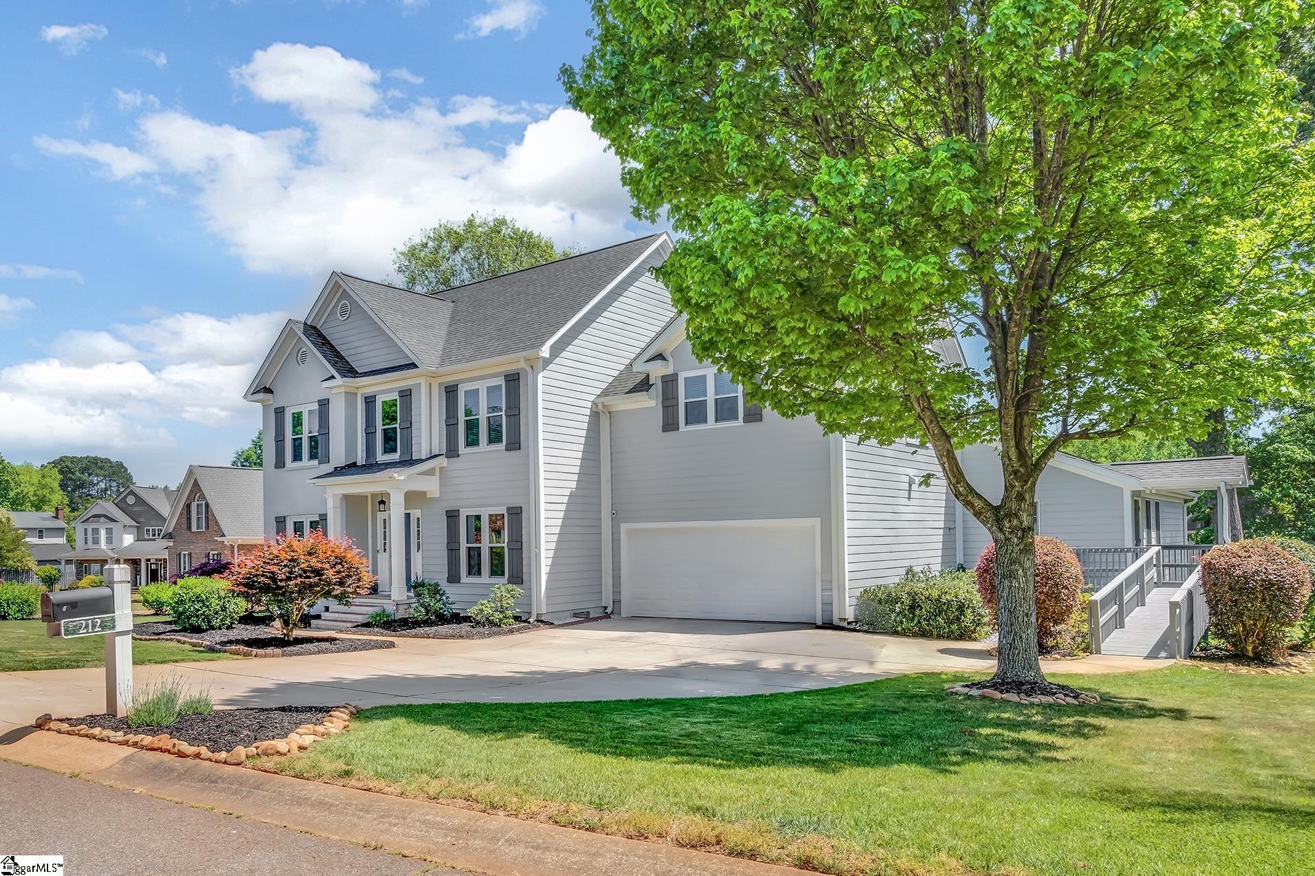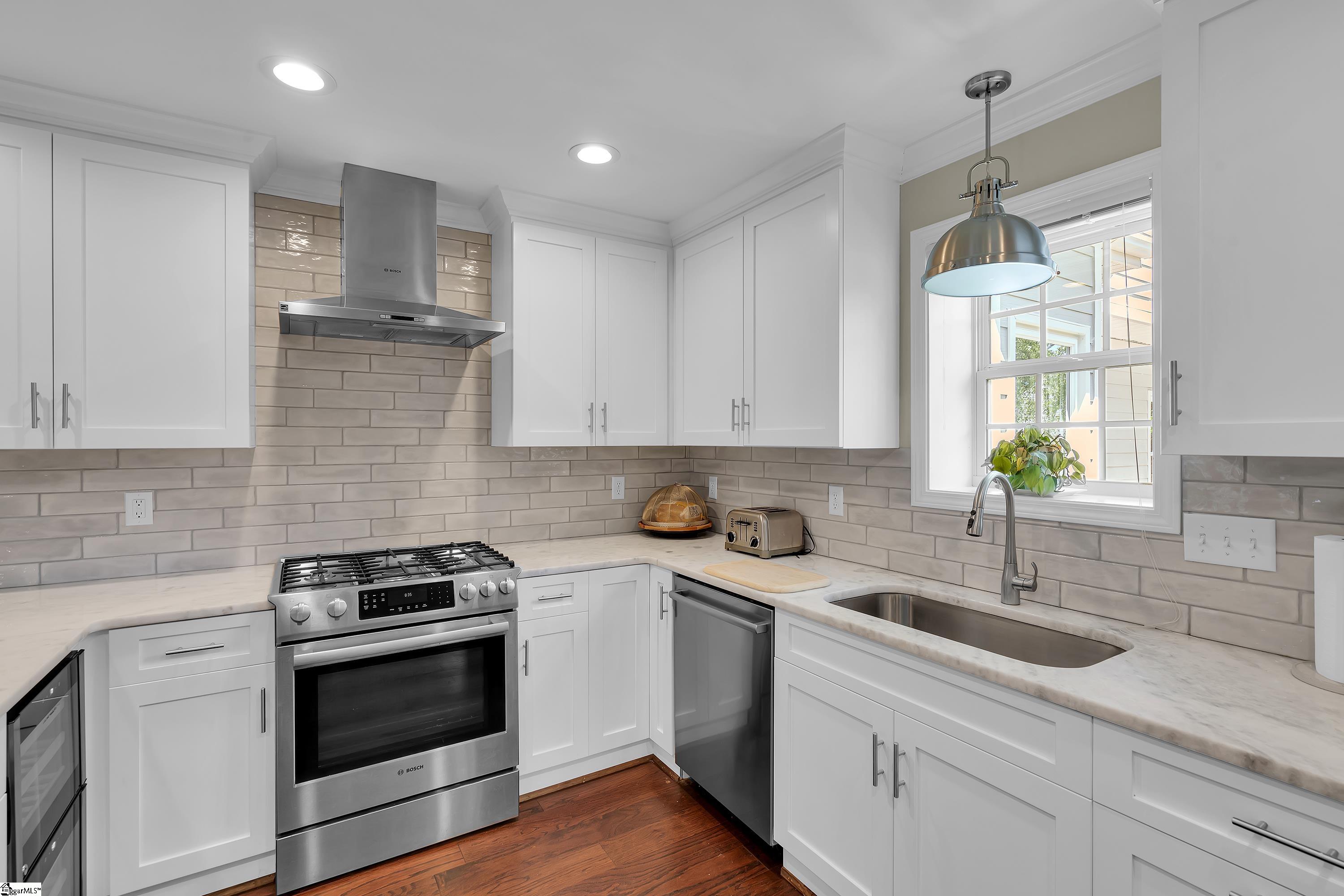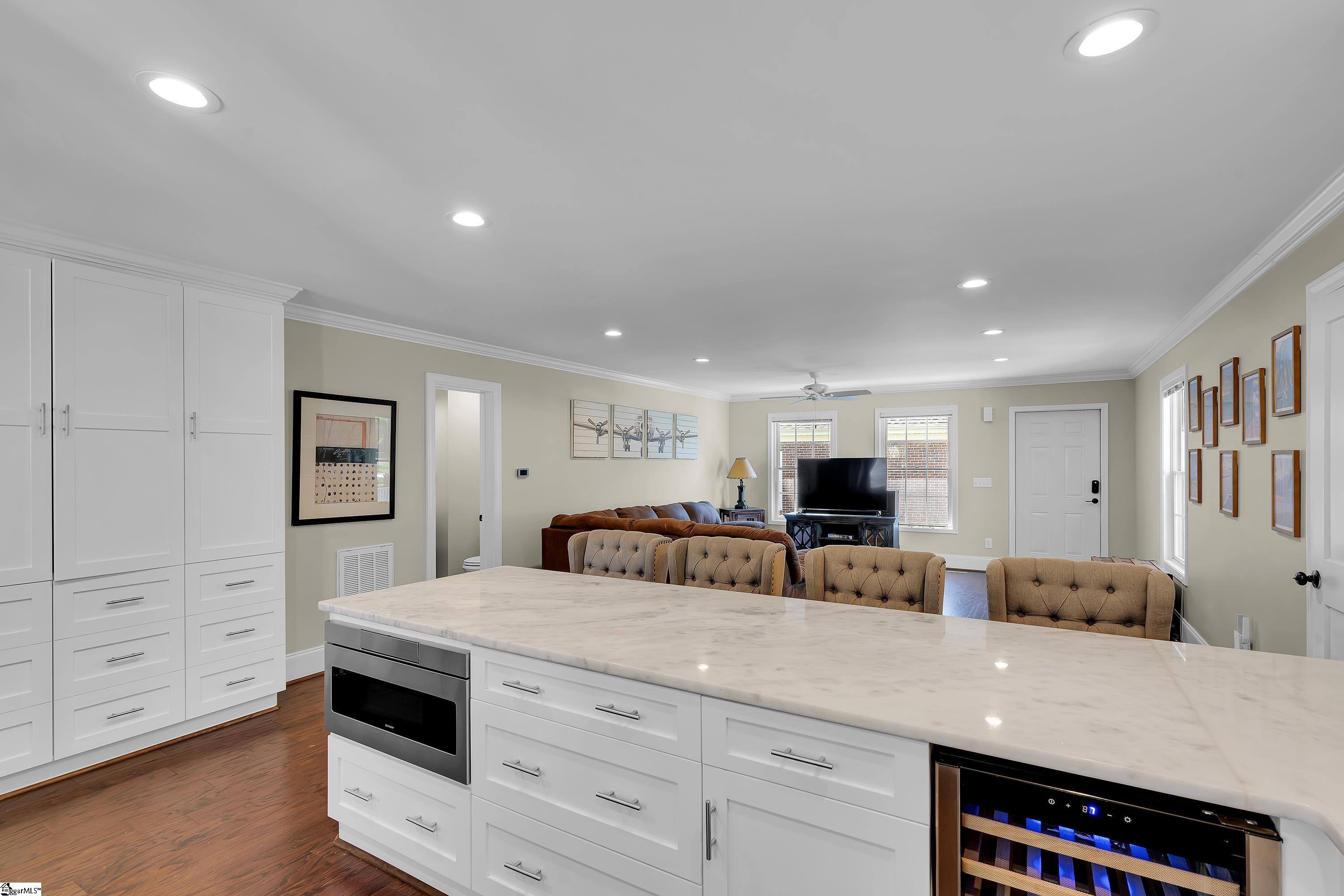 Unique opportunity! This thoughtfully renovated home offers a rare combination of space, flexibility, luxury, and everyday livability, highlighted by a true secondary living suite (part of main level) that functions as a fully independent residence. Renovated in recent years, the property features two stunning kitchens, 2 laundry rooms, and beautifully updated baths, all finished with a cohesive, modern aesthetic. Both living areas have been carefully designed to feel connected yet private, with separate entrances and a seamless flow that allows each side to function independently without sacrificing the overall integrity of the home. The kitchens are a standout, offering full-size layouts with quality finishes and thoughtful design, while the bathrooms reflect the same level of attention to detail and refinement. The secondary suite includes its own kitchen, living area, bedroom, bath, and wine refrigerator, providing exceptional flexibility for extended family, guests, or private living arrangements. The main living areas are equally well-appointed, featuring a gas fireplace, dedicated office space, and custom built-in shelving and storage throughout. Recessed lighting, updated systems including multi-zoned HVAC, on-demand hot water, and a one-year-old roof and windows reflect the level of care and investment in the home. A mudroom adds everyday convenience, while thoughtful design creates an easy transition from interior living spaces to the expansive rear deck. Outdoor living is a true highlight, with a large deck designed for entertaining, a fire pit area, and a fully fenced backyard that offers both privacy and usability. A gated deck provides added peace of mind for pets or children, while an in-ground multi-zone sprinkler system helps maintain the grounds with ease. Set within a walkable neighborhood near Green Charter Elementary with no HOA, the property also offers optional access to a nearby pool and tennis facilities for an annual fee. Conveniently located near Pelham Road shopping, major highways, GSP Airport, and just a short drive to downtown Greenville, this home delivers a unique blend of flexibility, thoughtful design, and livability that is near impossible to find.